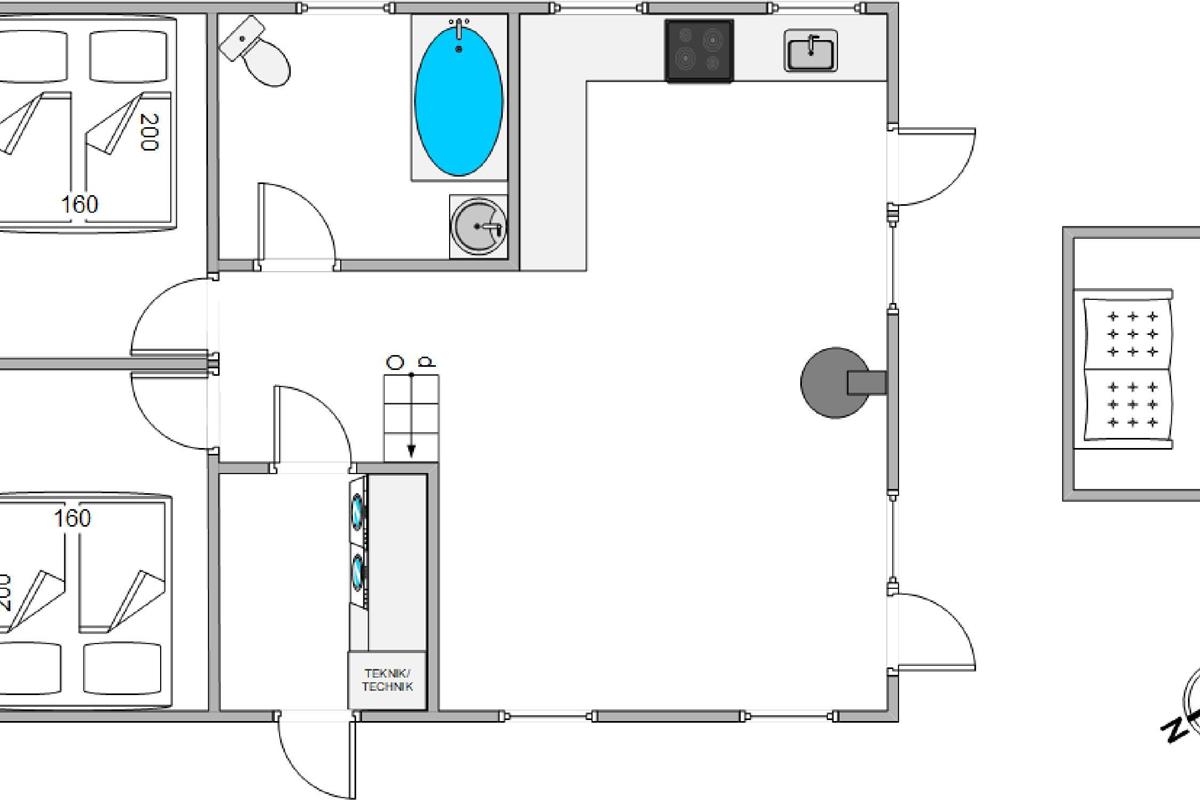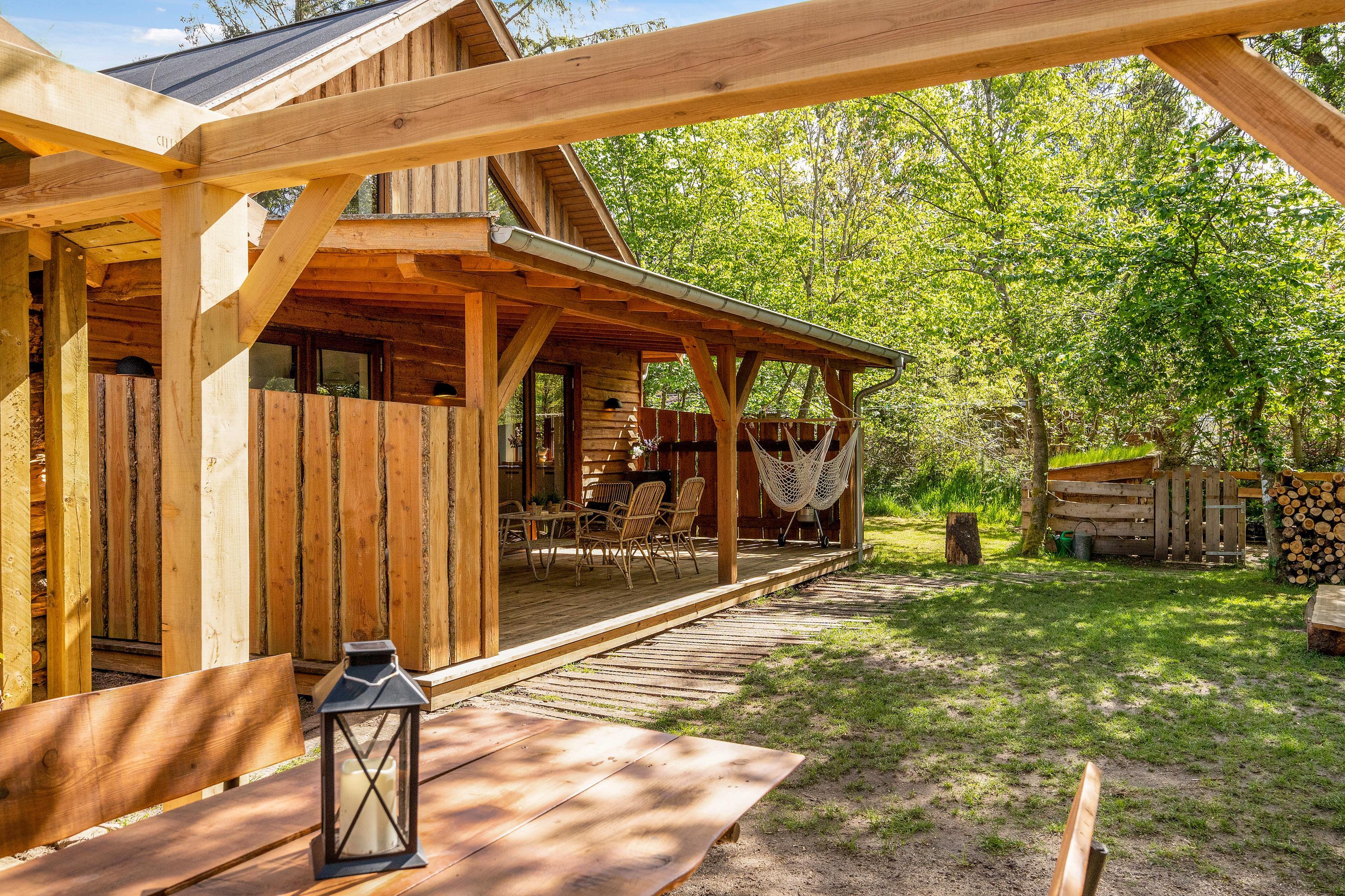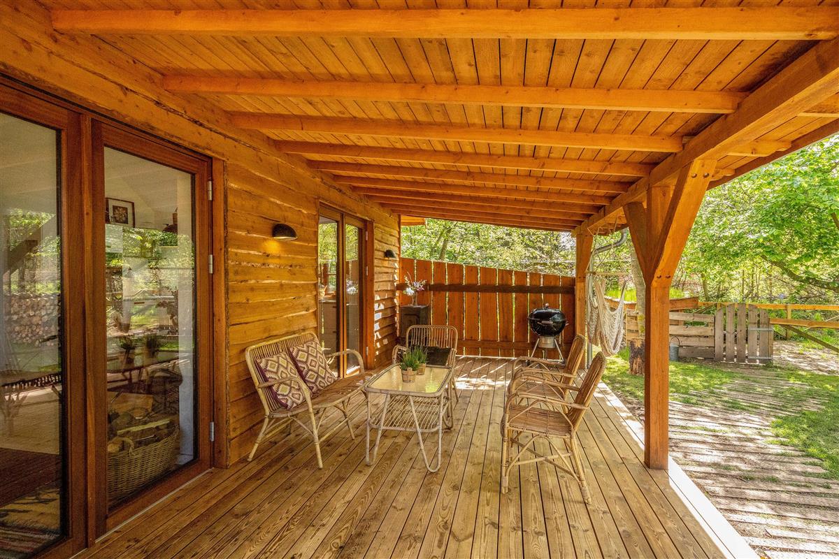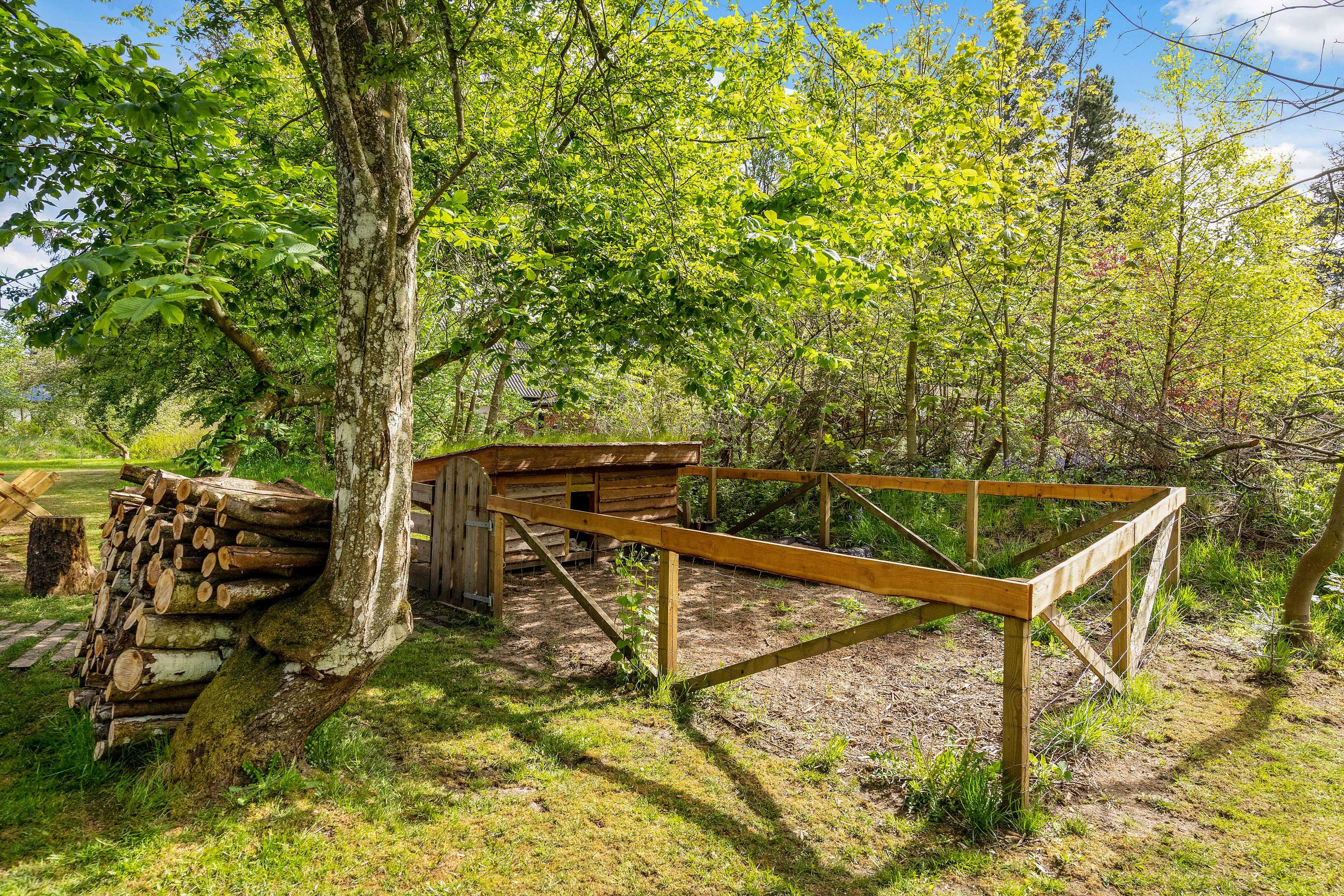 Then this unique holiday home in Houstrup is definitely worth a closer look. This spacious wooden house accommodates up to 5 people and 2 dogs. Located right next to the forest, it offers a fantastic outdoor area with beautiful terraces, your own fire pit, and a secure, fenced dog exercise area.