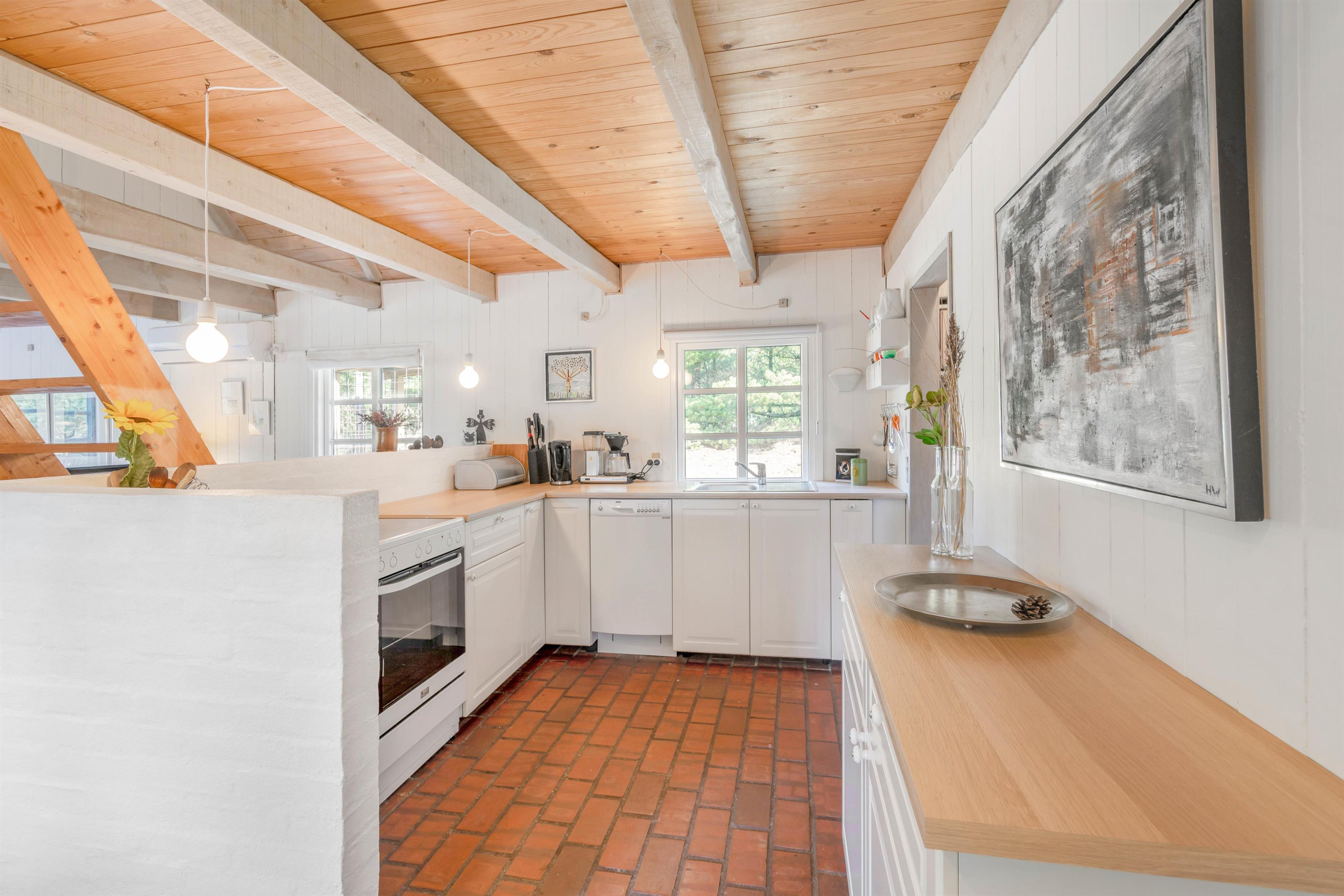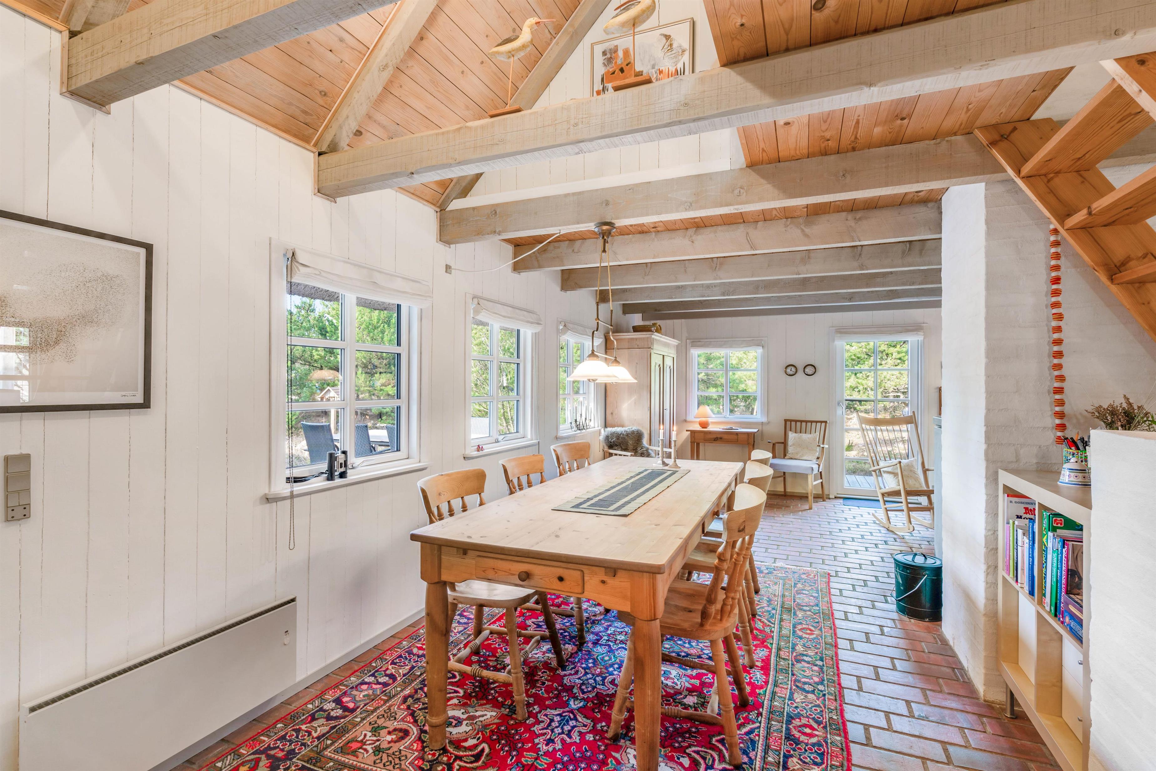 The holiday home is located in immediate proximity to Blåbjerg Plantation, known for its diverse walking and cycling trails. Here you can enjoy both short walks and extended tours through the beautiful countryside. Houstrup itself is surrounded by extensive plantations that invite exploration. The North Sea is just a few minutes away by car or, for the more energetic, by bicycle.