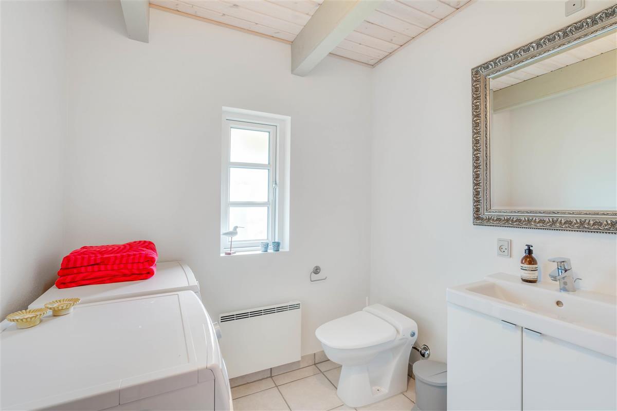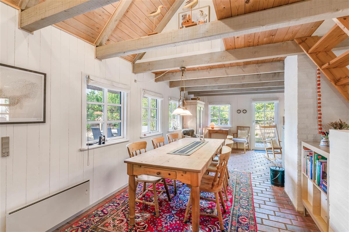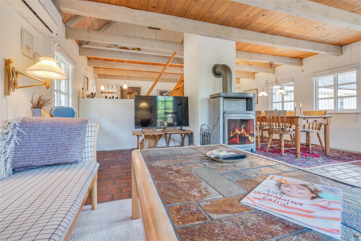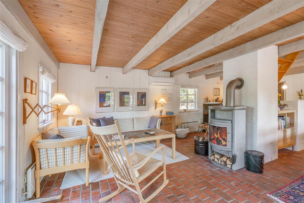 This charming holiday home provides ample space for relaxation across two floors, creating a wonderful holiday feel. There are four bedrooms, each fitted with a comfortable double bed – perfect for restful nights or afternoon naps. Two bedrooms are located on the first floor, where late risers can continue dreaming whilst early birds enjoy their coffee. Two bathrooms with underfloor heating ensure stress-free morning routines. The interior cleverly combines antique furniture with modern accents, creating a typically Danish, cosy atmosphere that perfectly embodies the concept of 'hygge'.