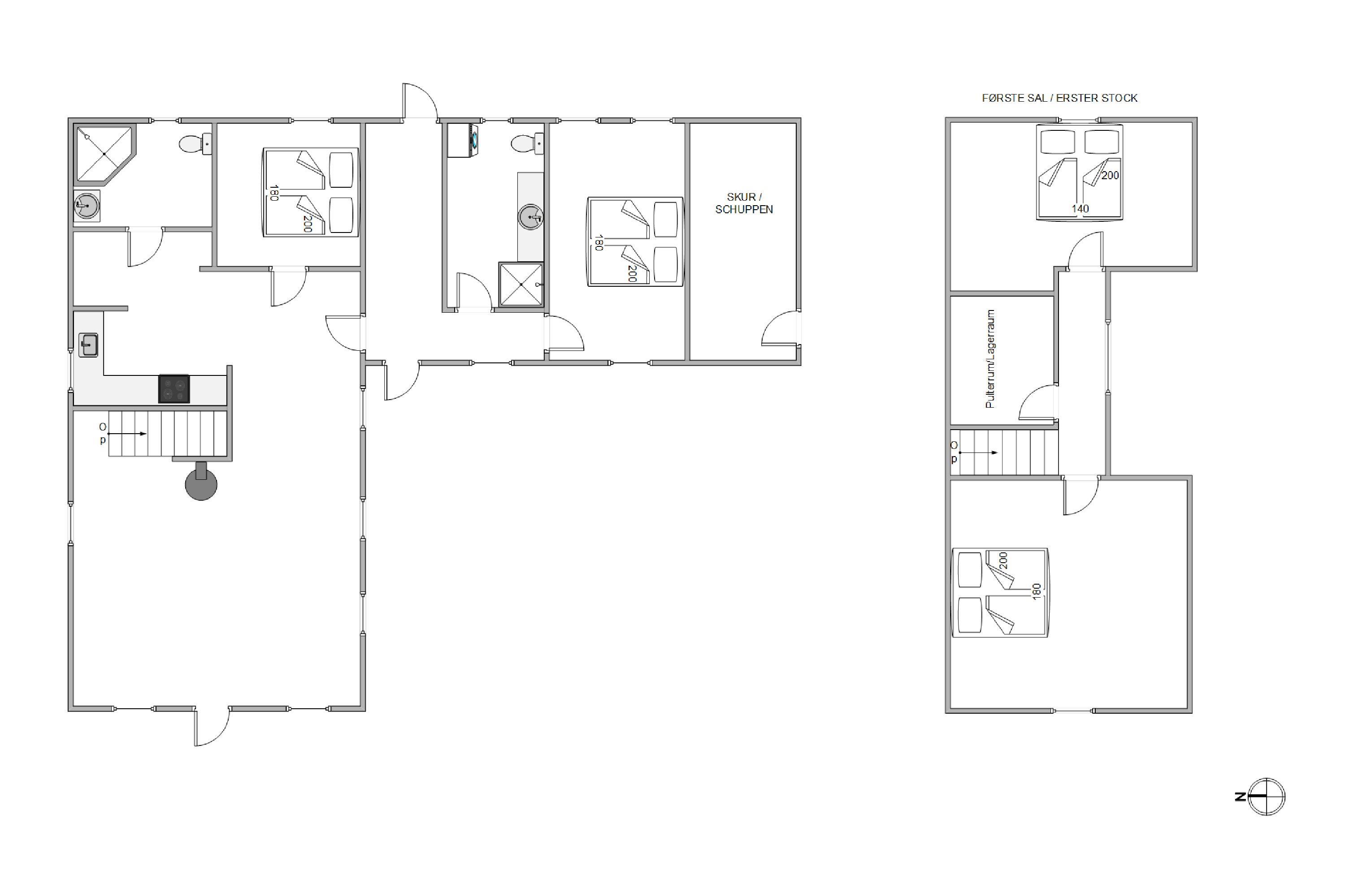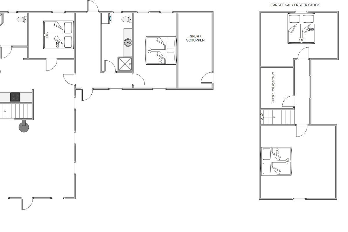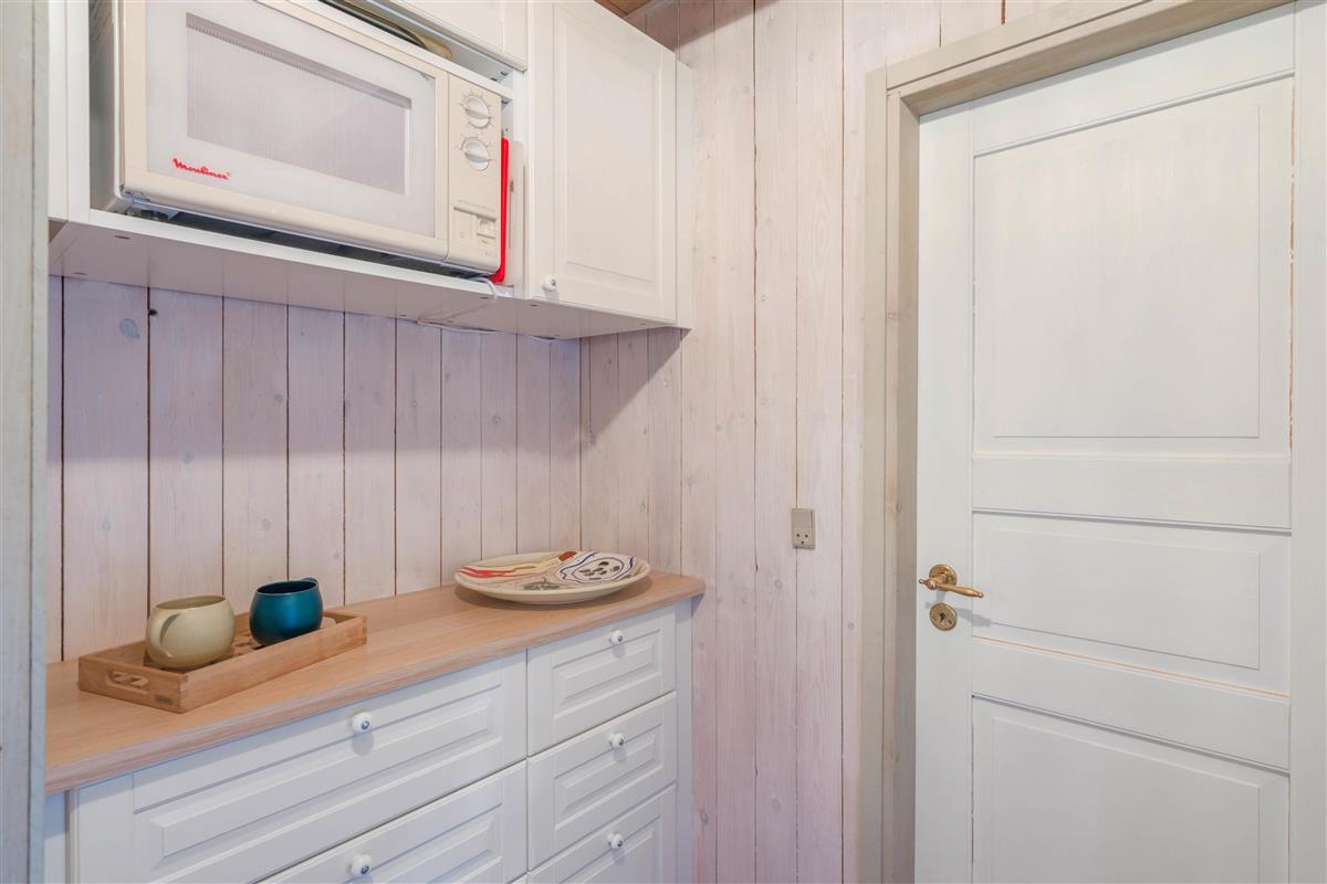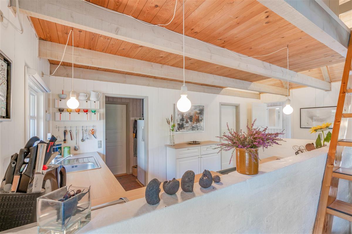This charming holiday home provides ample space for relaxation across two floors, creating a wonderful holiday feel. There are four bedrooms, each fitted with a comfortable double bed – perfect for restful nights or afternoon naps. Two bedrooms are located on the first floor, where late risers can continue dreaming whilst early birds enjoy their coffee. Two bathrooms with underfloor heating ensure stress-free morning routines. The interior cleverly combines antique furniture with modern accents, creating a typically Danish, cosy atmosphere that perfectly embodies the concept of 'hygge'.