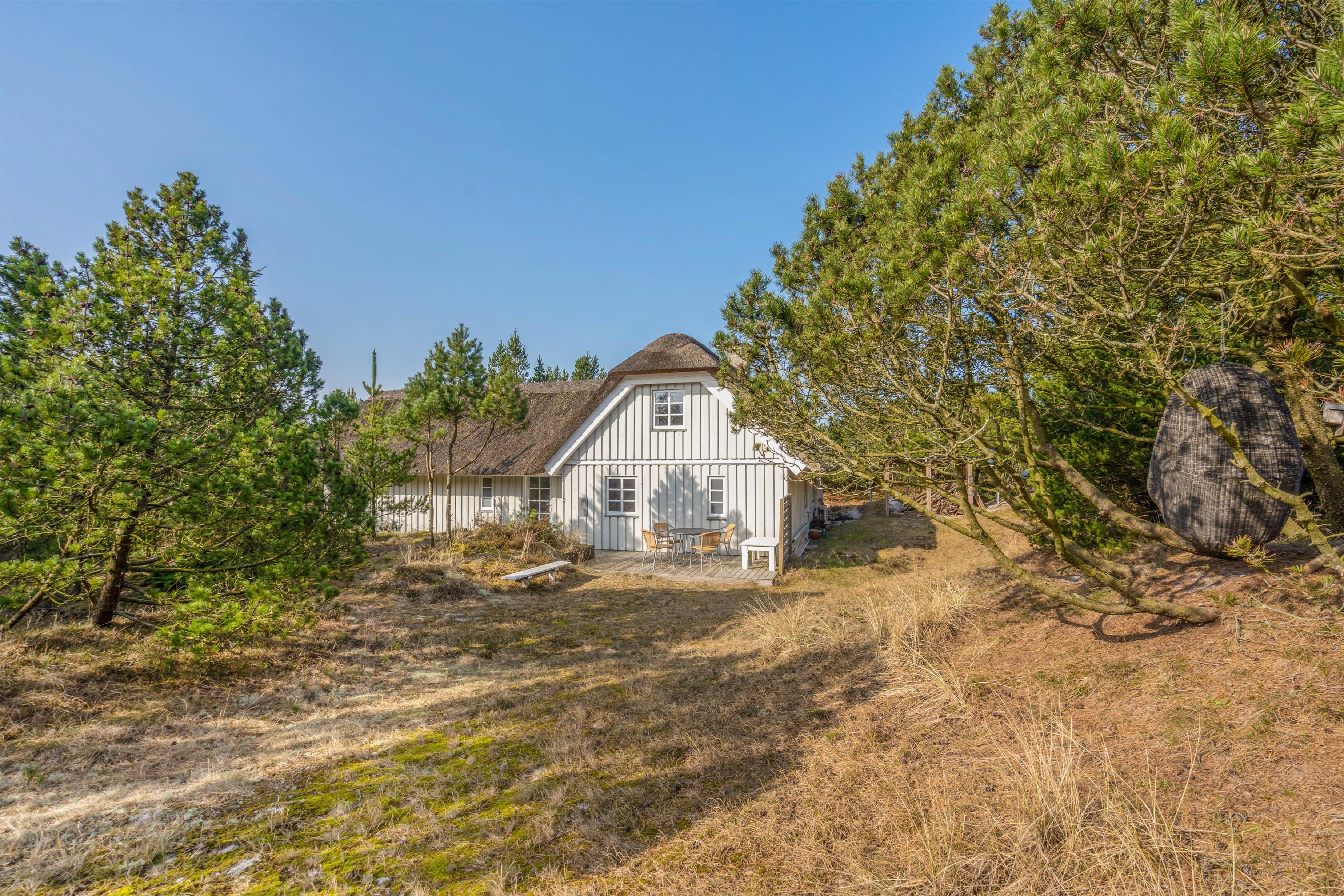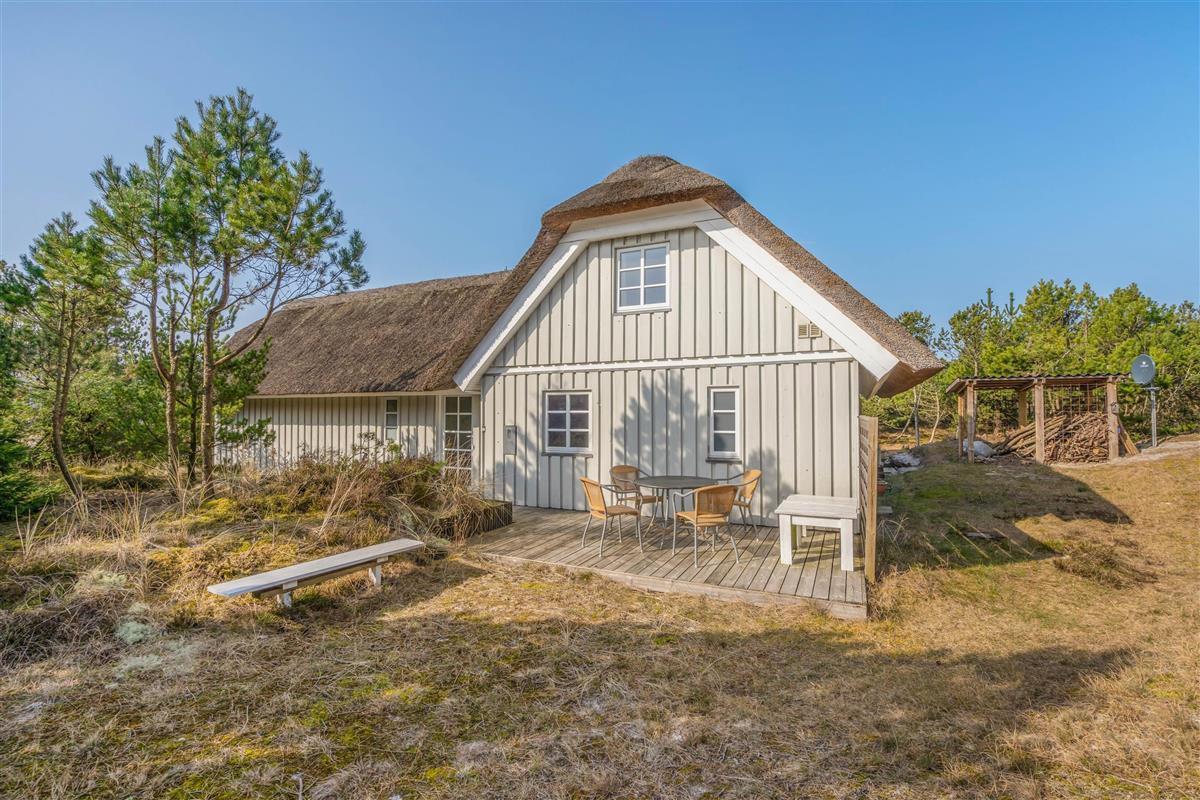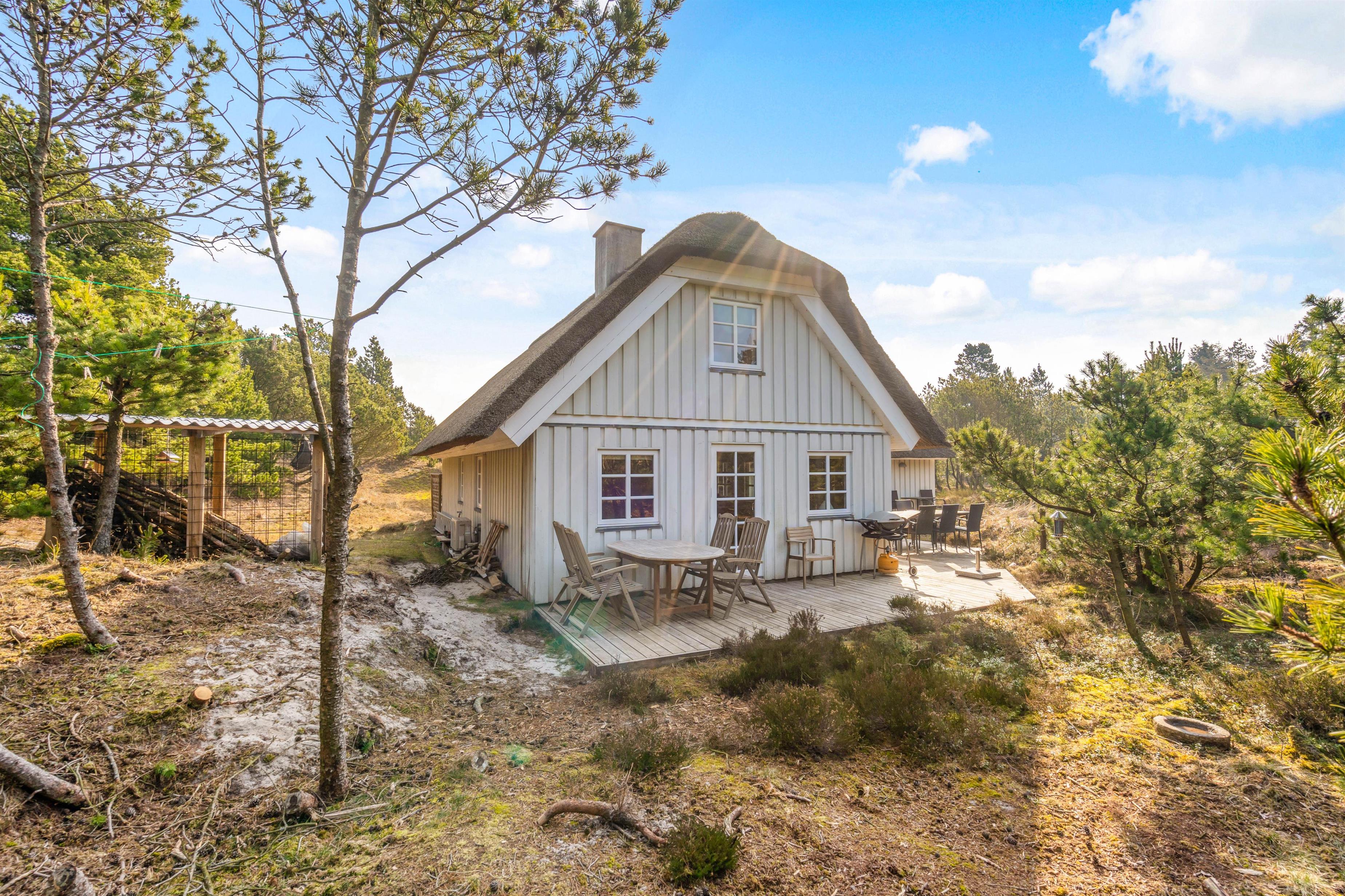 This charming thatched holiday home in Houstrup, located at Jeppesvej 21, offers 130 square metres of space for up to 8 people. Lovingly renovated in 2021, its furnishings create an elegant beach hotel atmosphere. The peaceful location, practically next to an extensive plantation, is ideal for relaxing walks and exploring the beautiful natural surroundings – a perfect base for your restful stay.