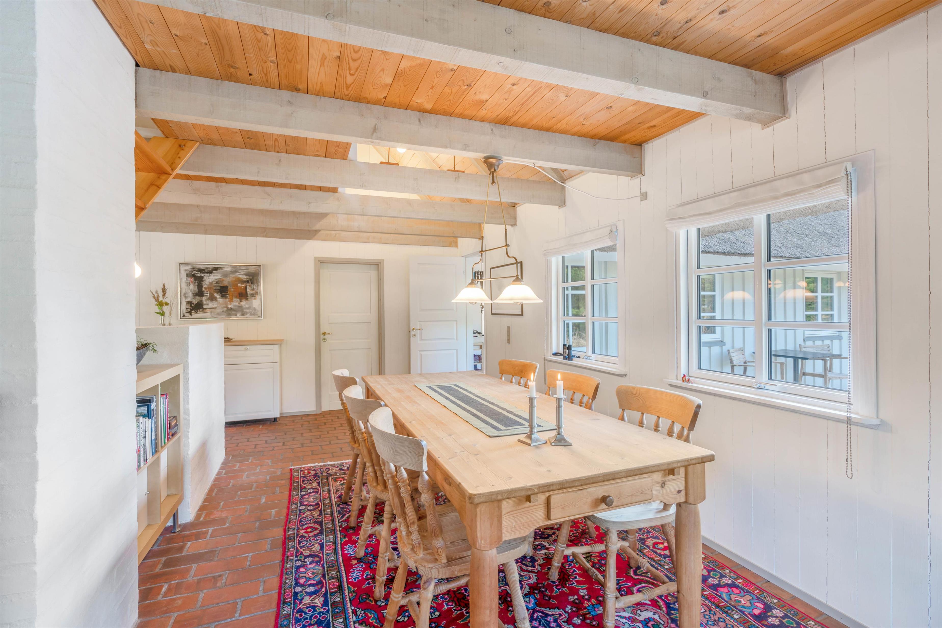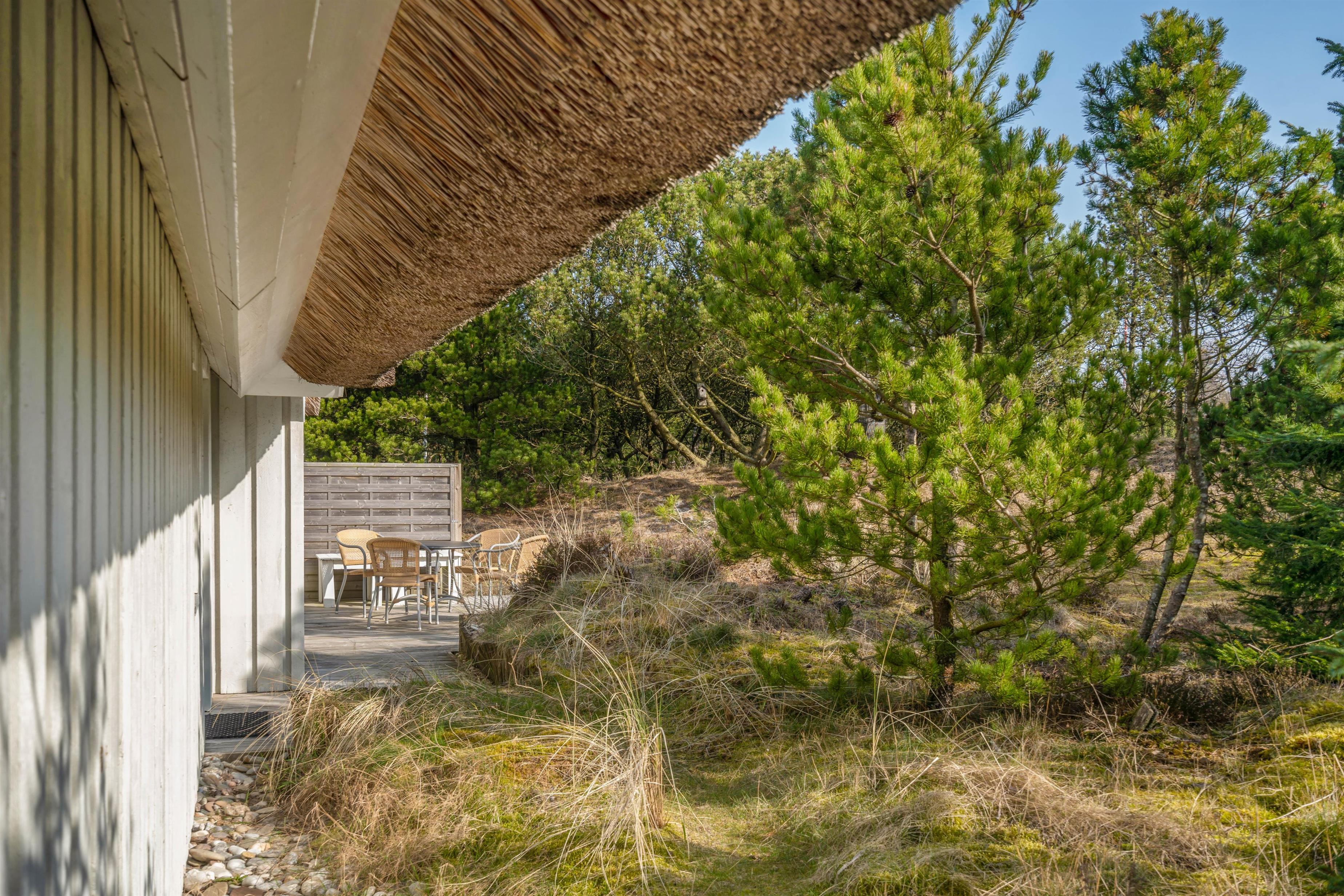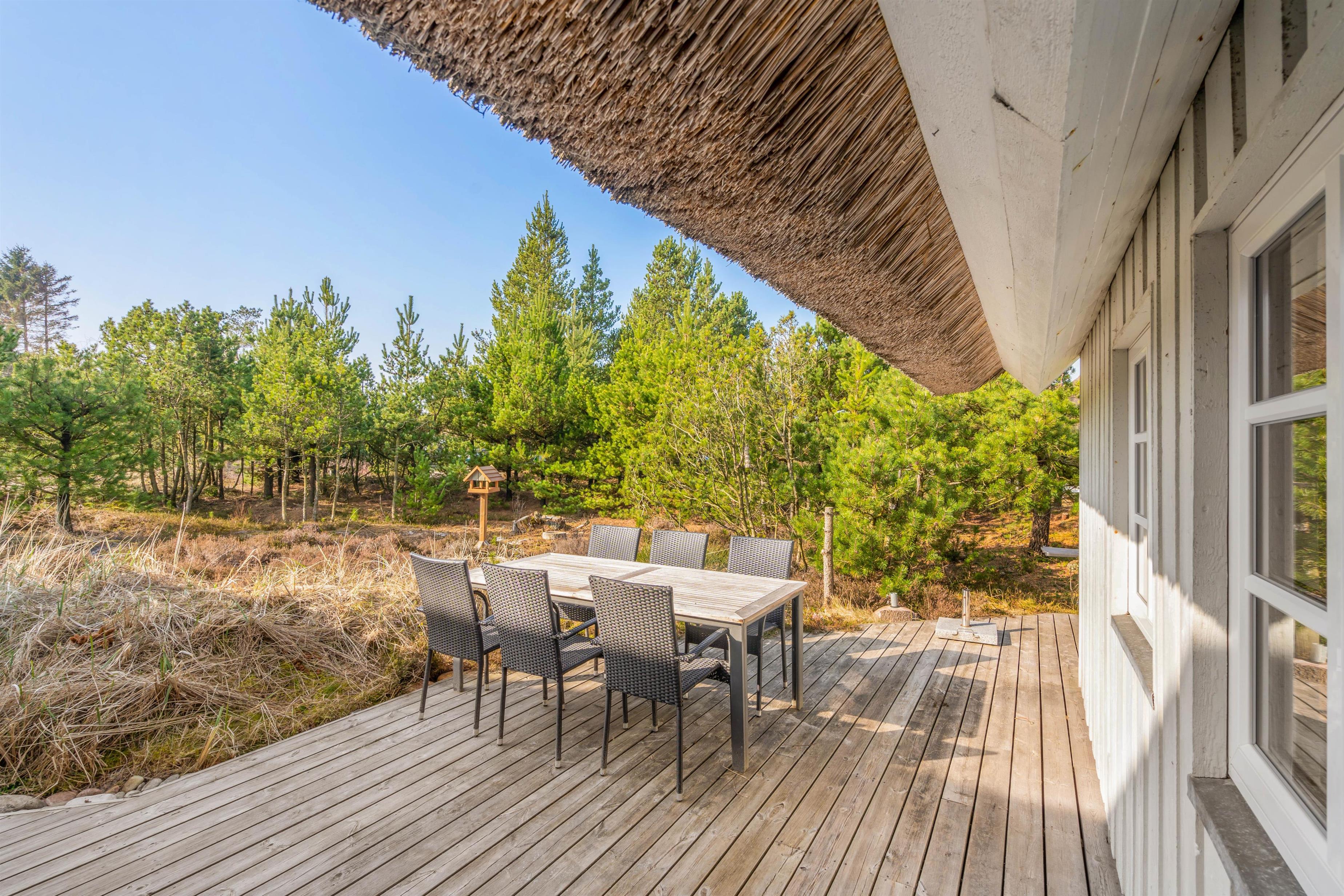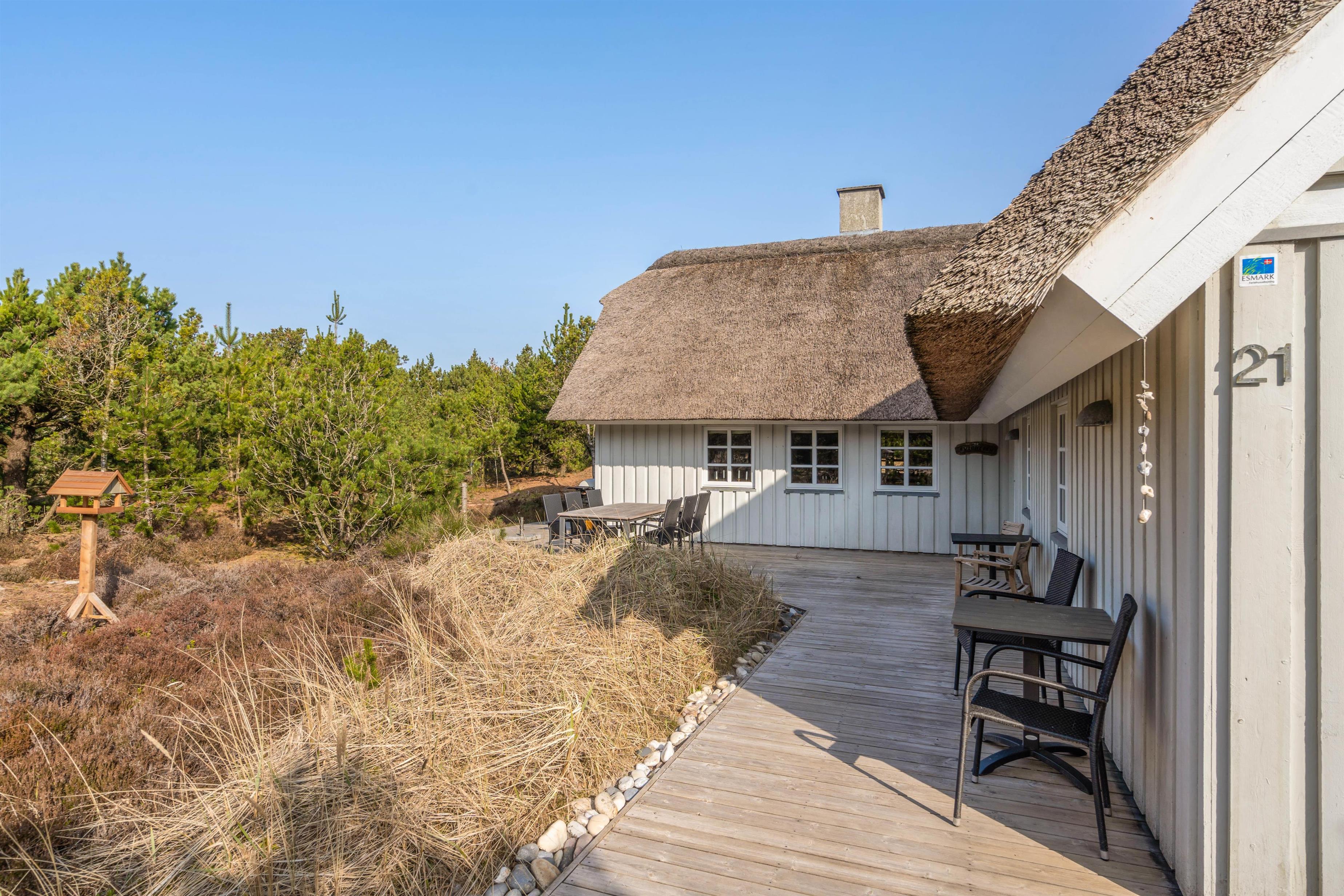 This charming thatched holiday home in Houstrup, located at Jeppesvej 21, offers 130 square metres of space for up to 8 people. Lovingly renovated in 2021, its furnishings create an elegant beach hotel atmosphere. The peaceful location, practically next to an extensive plantation, is ideal for relaxing walks and exploring the beautiful natural surroundings – a perfect base for your restful stay.