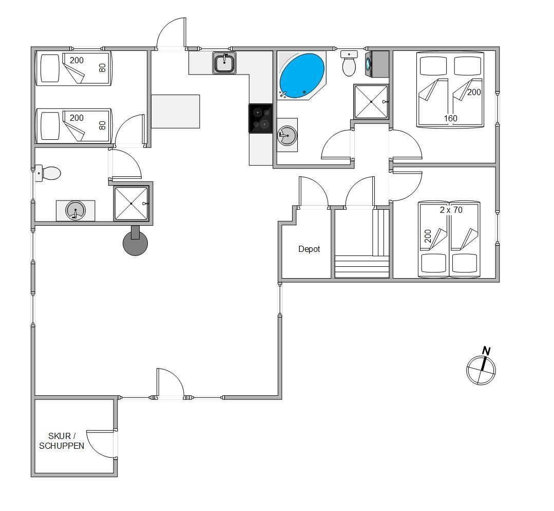 Located at Søndervang 47 in Houstrup, on a mature plot of over 1,000 square metres, this holiday home was renovated in 2019. A whirlpool, dishwasher, and washing machine are just some of the amenities available to you.