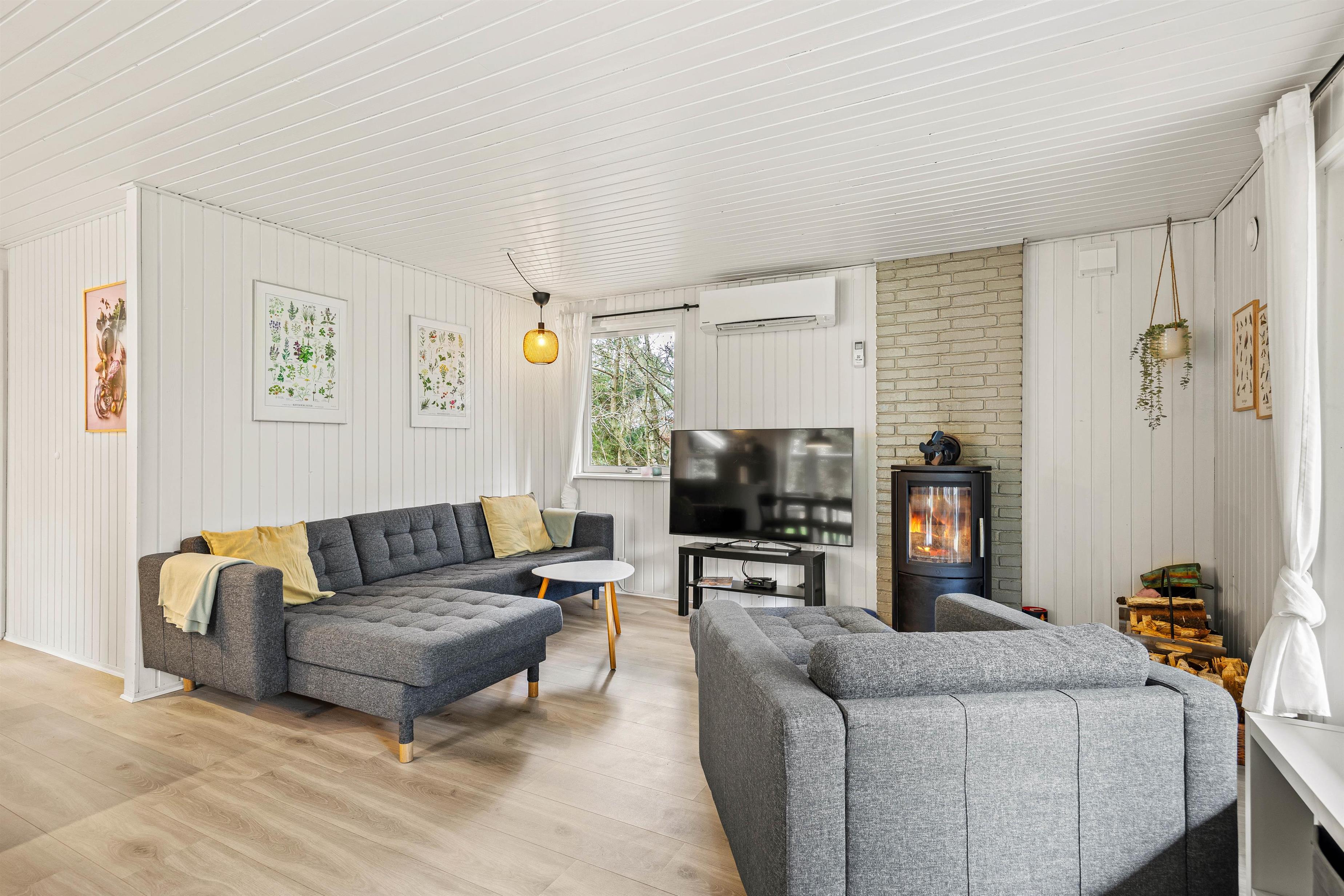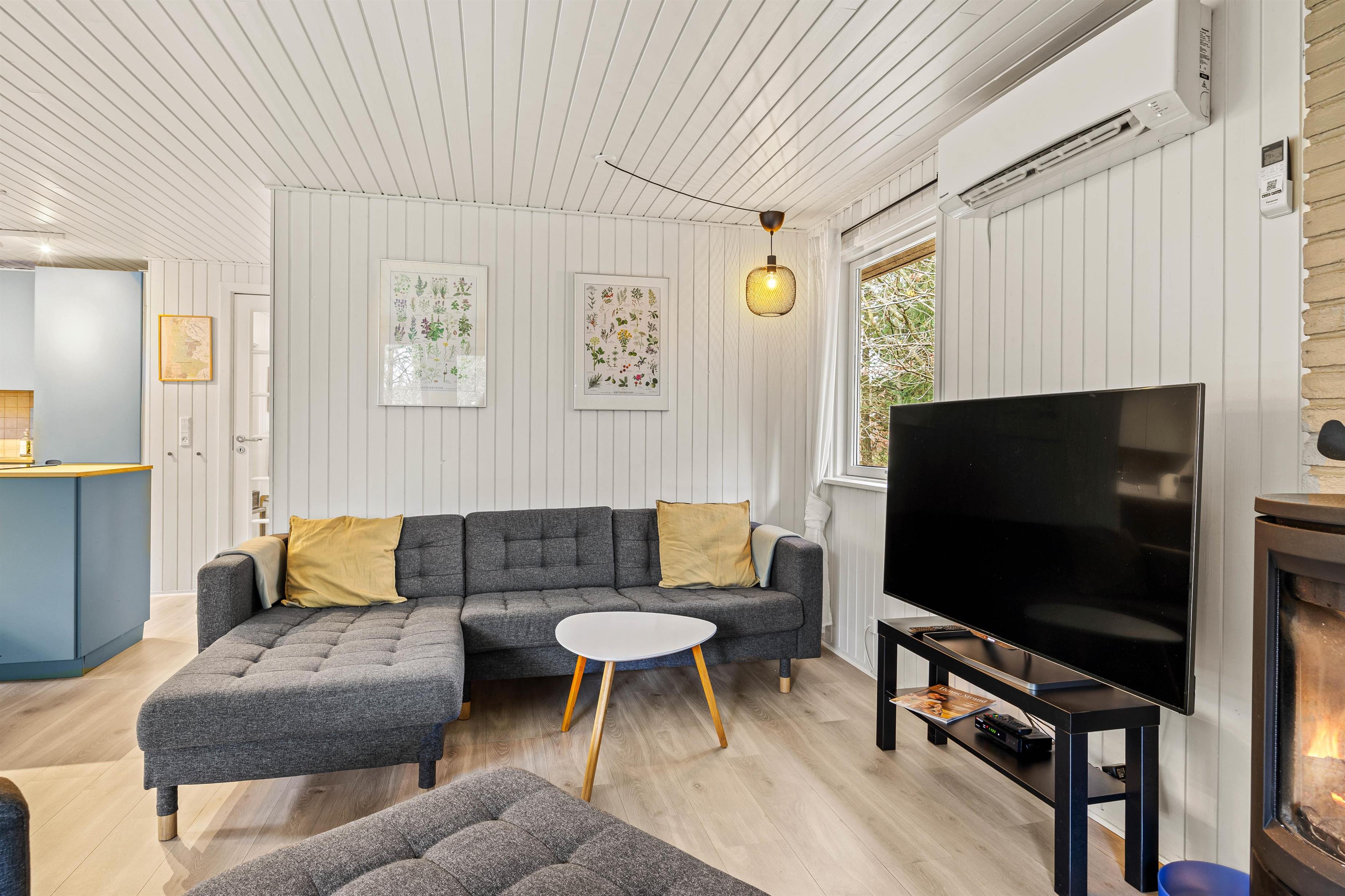 Der Innenbereich eures Ferienhauses im Engvejen 35 vereint den besten skandinavischen Charme mit all den modernen Annehmlichkeiten, die ihr euch wünschen könnt. Der gemütliche Wohnbereich mit Kaminofen ist der perfekte Ort, um nach einem erlebnisreichen Tag die Füße hochzulegen, ob beim Schmökern in einem Buch oder beim Filmabend via Google Chromecast.