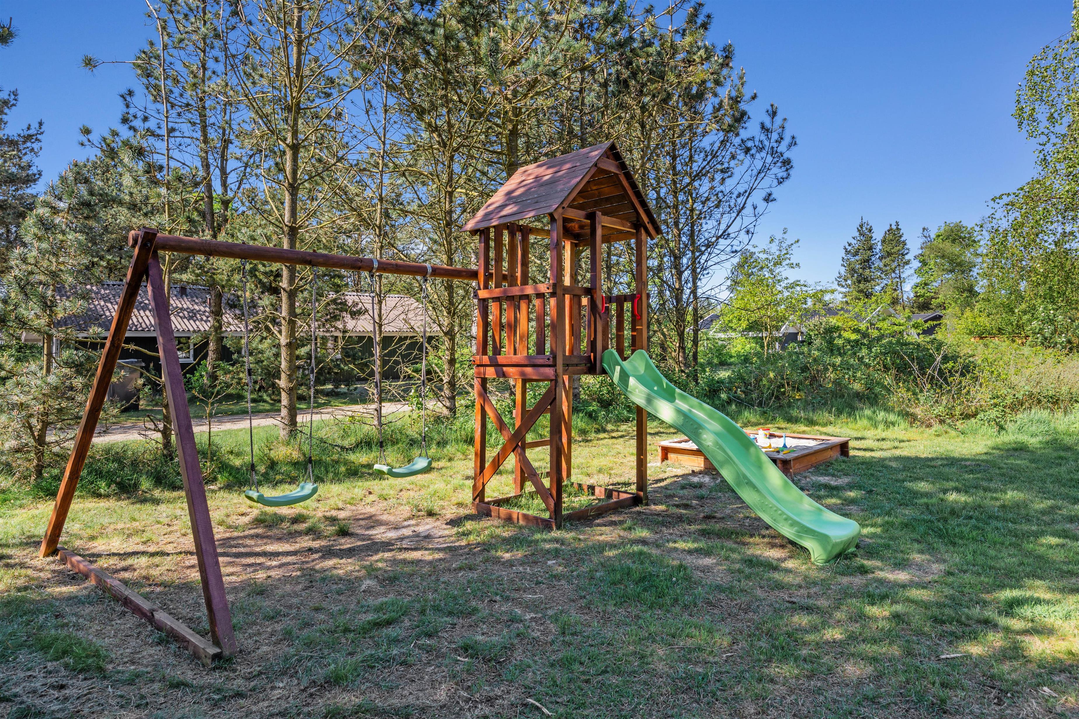 The holiday home sits on approximately 1,351 square metres of natural grounds, offering plenty of space for children. The sandpit invites little ones to build magnificent sandcastles or bake the best sand cakes. The swing set also provides countless hours of fun and entertainment.