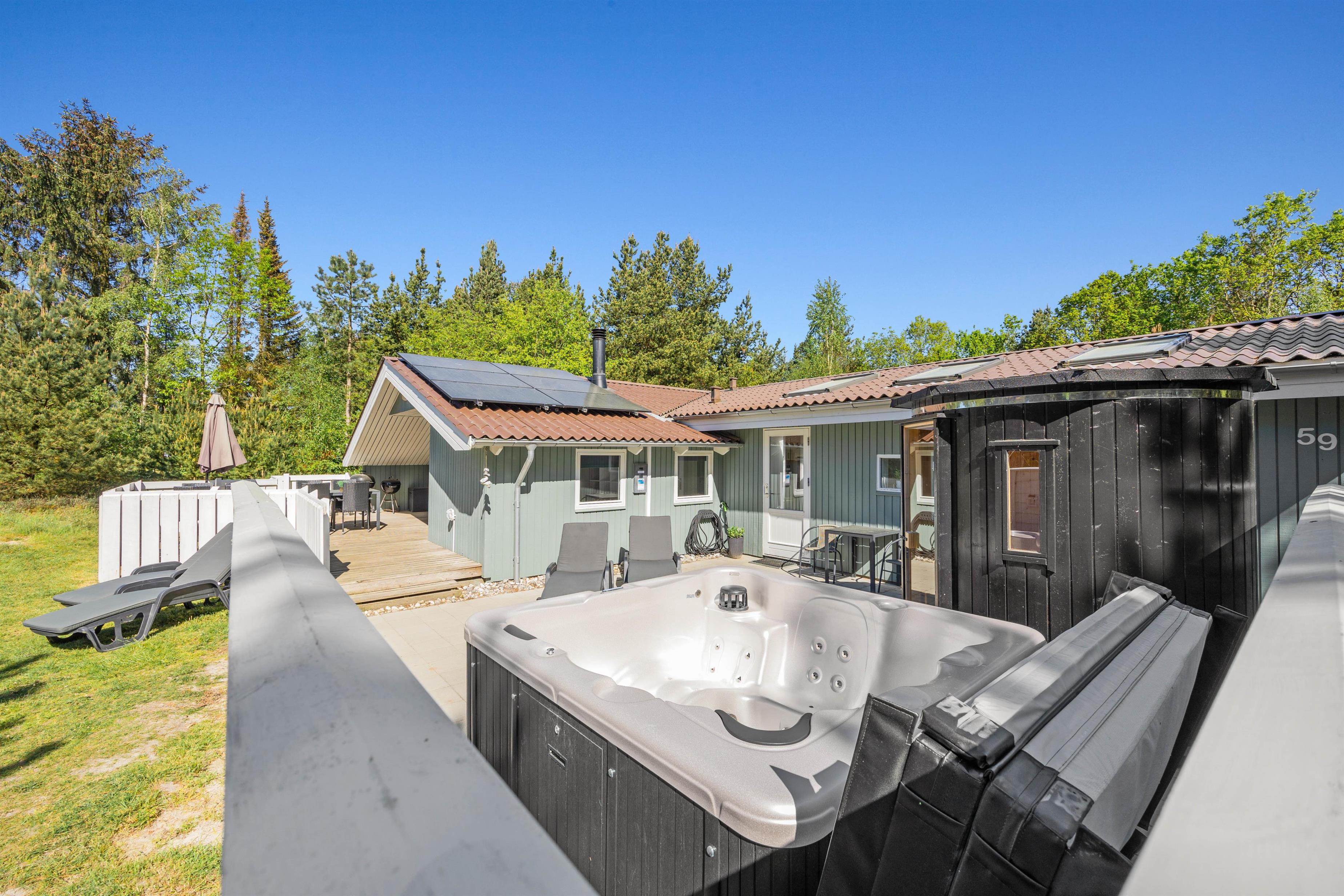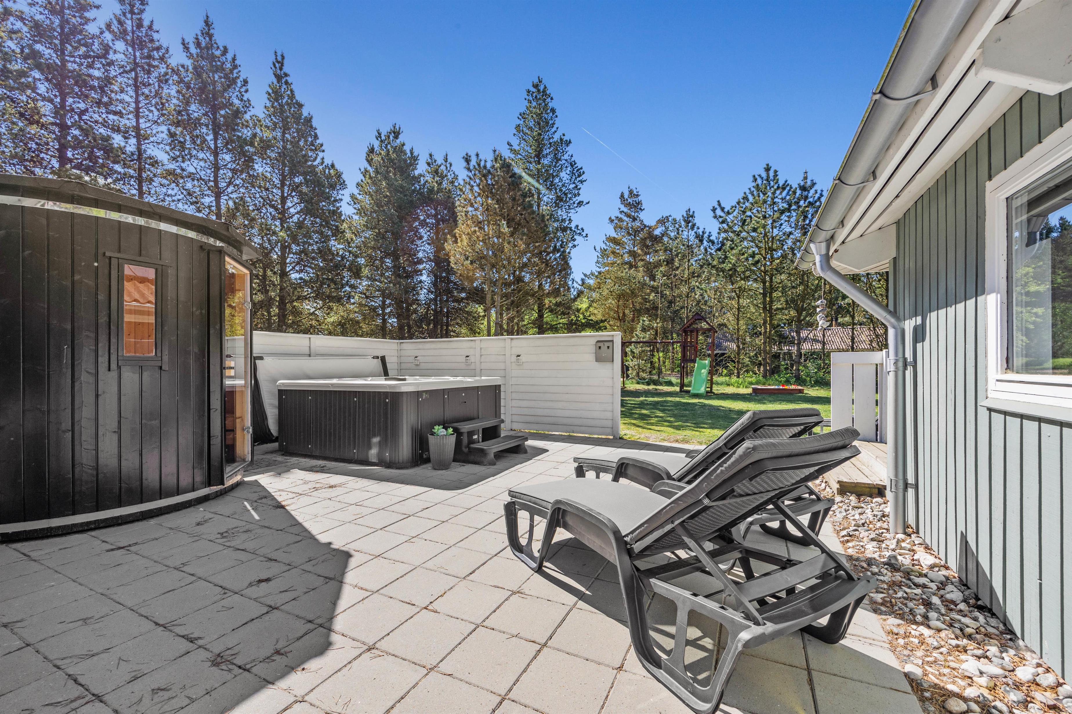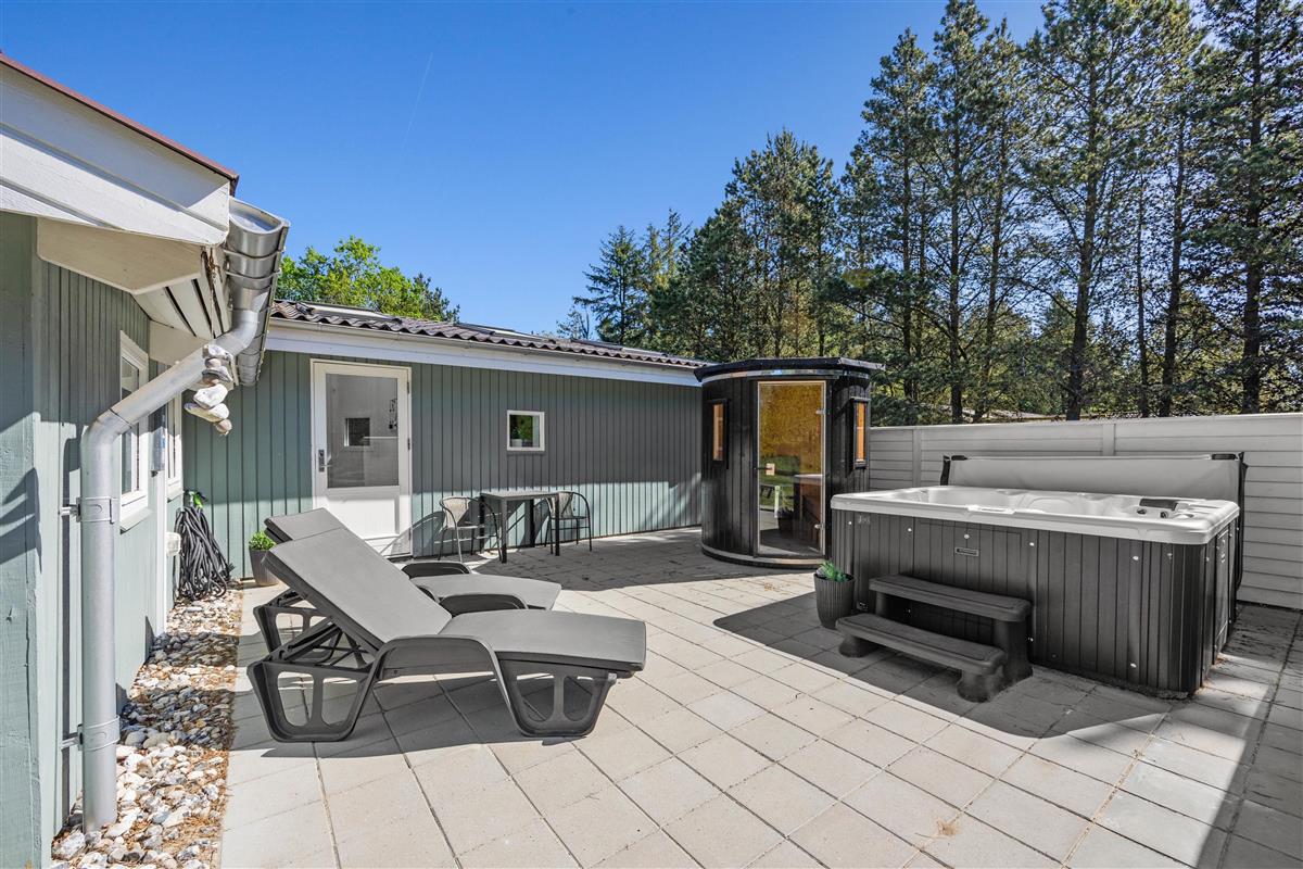 While the children and dogs enjoy the large grounds, you can relax on one of the terraces. Sun lovers can use the open terrace with loungers for sunbathing. Those preferring shade or shelter from the wind can settle in the screened area. Here you can end the day with a pleasant barbecue evening. After an exciting day, the outdoor hot tub and sauna provide relaxing moments under the open sky.