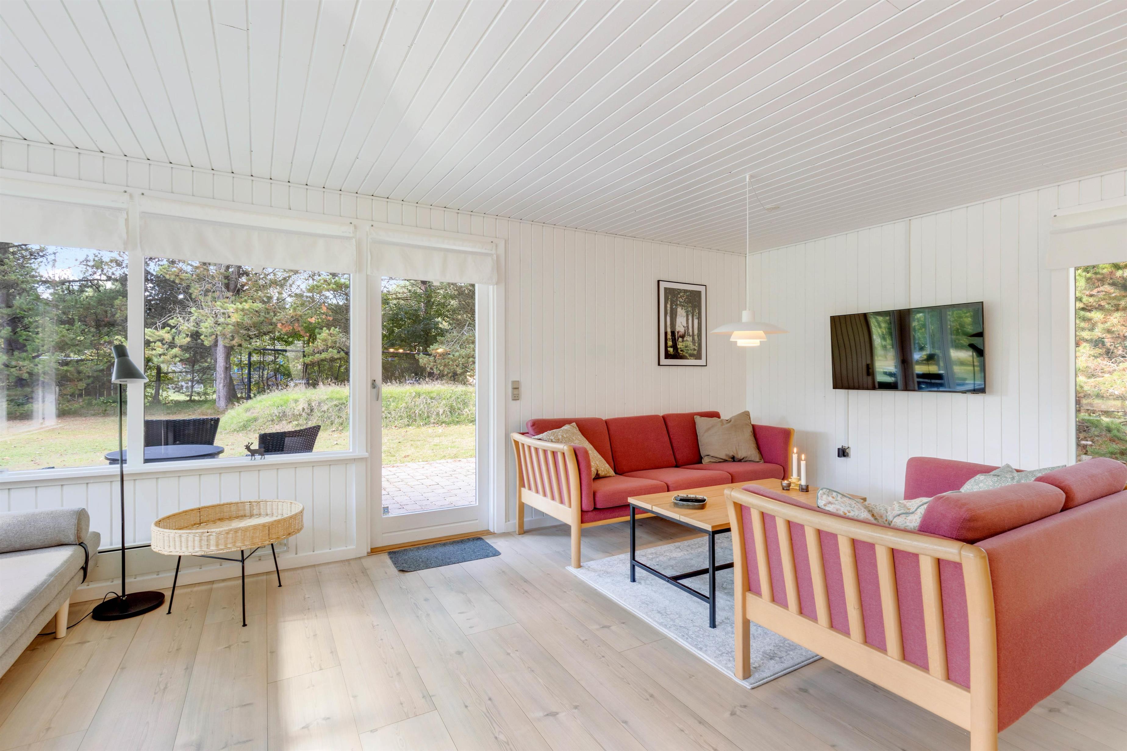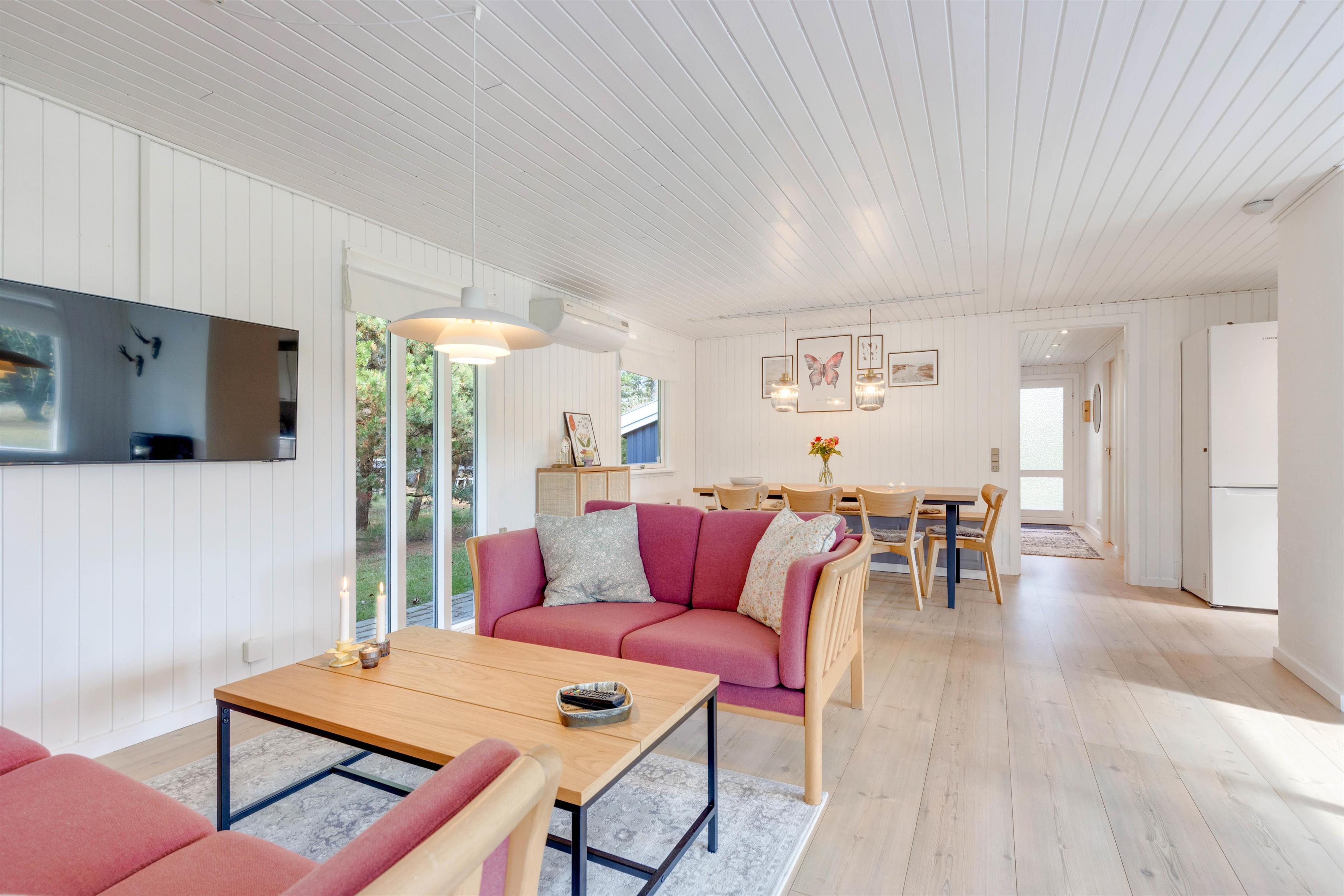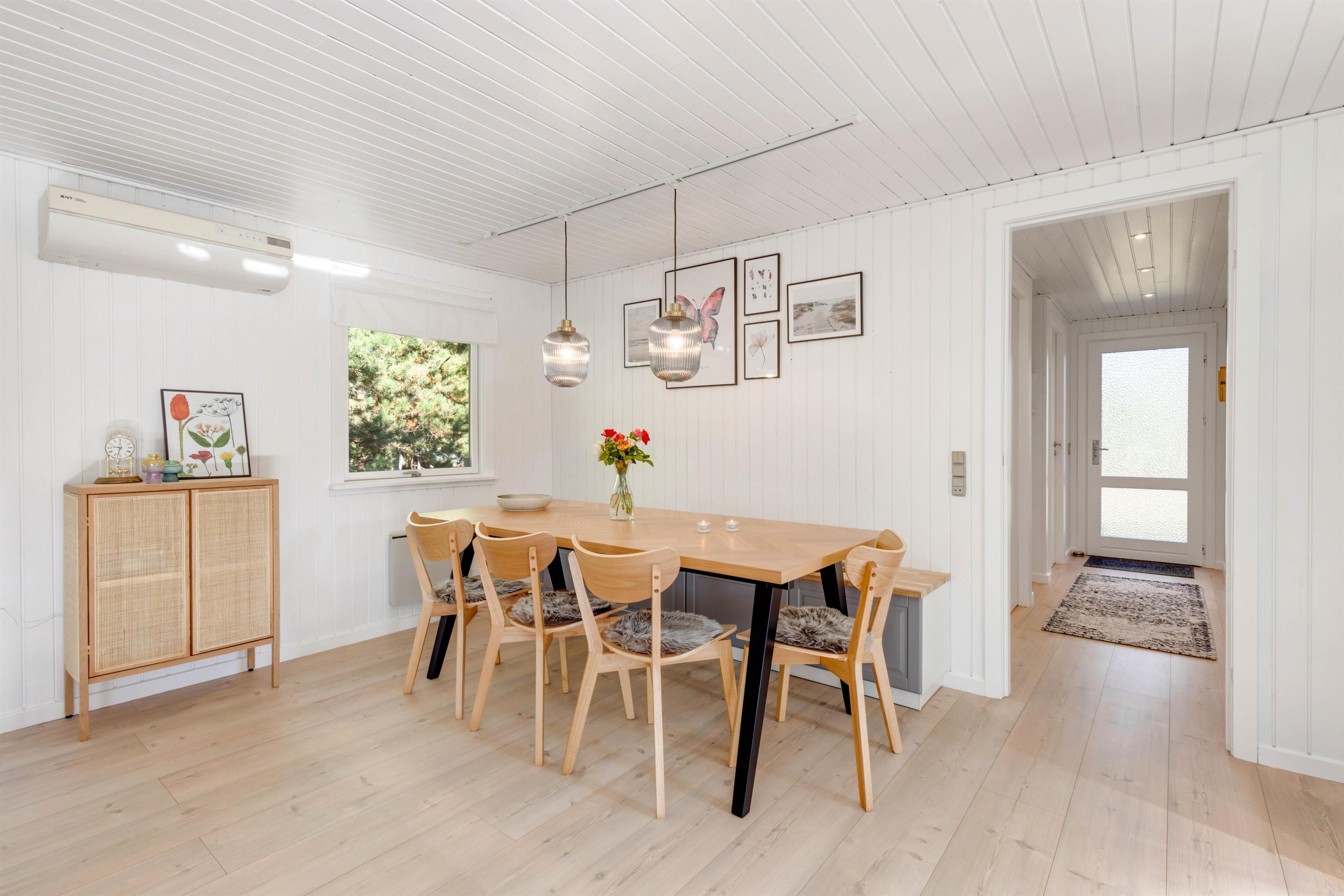 Located in Houstrup's peaceful woodland area, you'll find this beautiful wooden house, offering the perfect setting for a Danish holiday. The house is equipped with everything you need for your stay, including a large lawn providing plenty of space for younger guests to play and run around.
