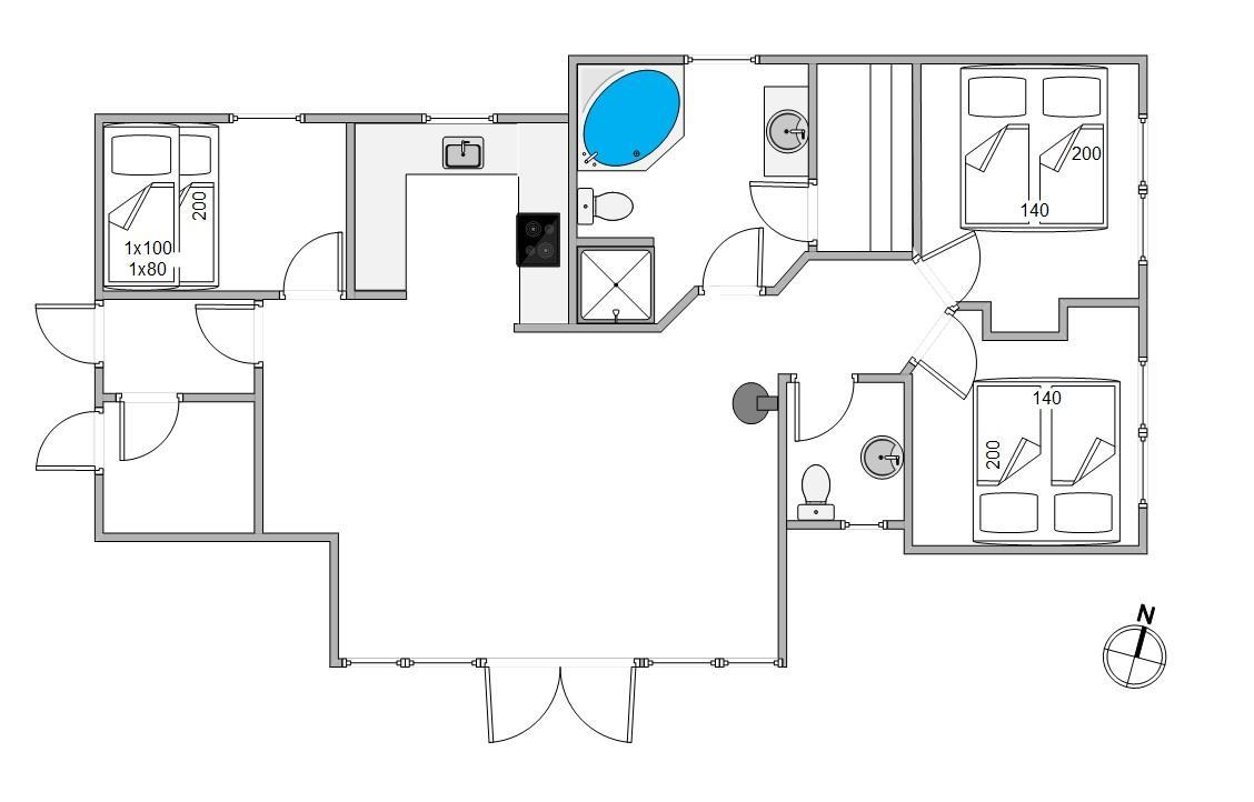 The house features two bathrooms, eliminating morning queues and allowing peaceful preparation time. The main bathroom includes a whirlpool and sauna where you can warm up and recharge your batteries.