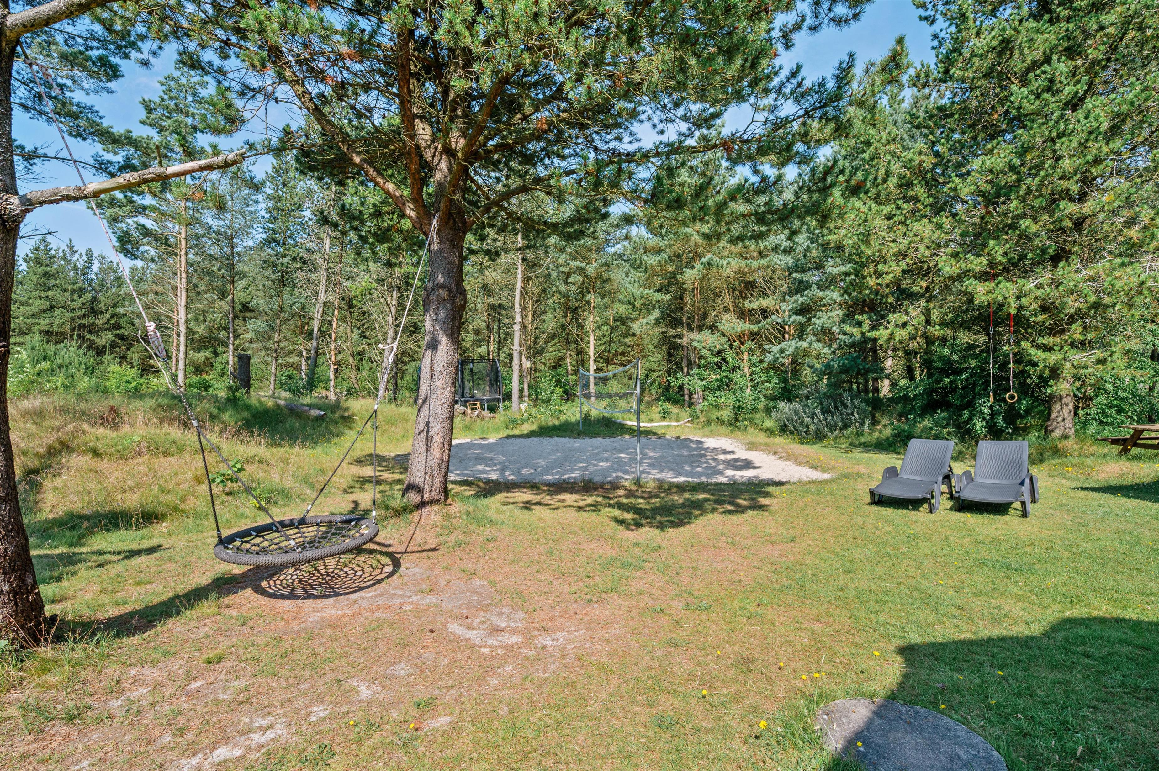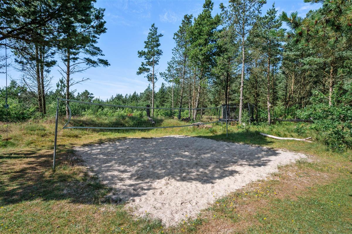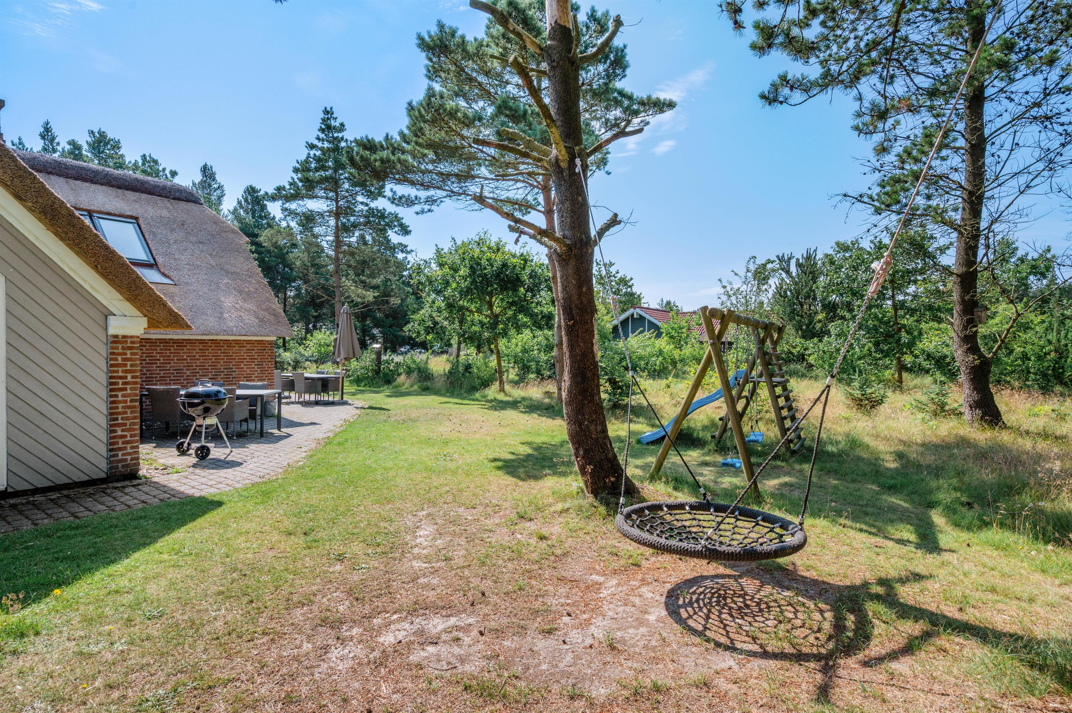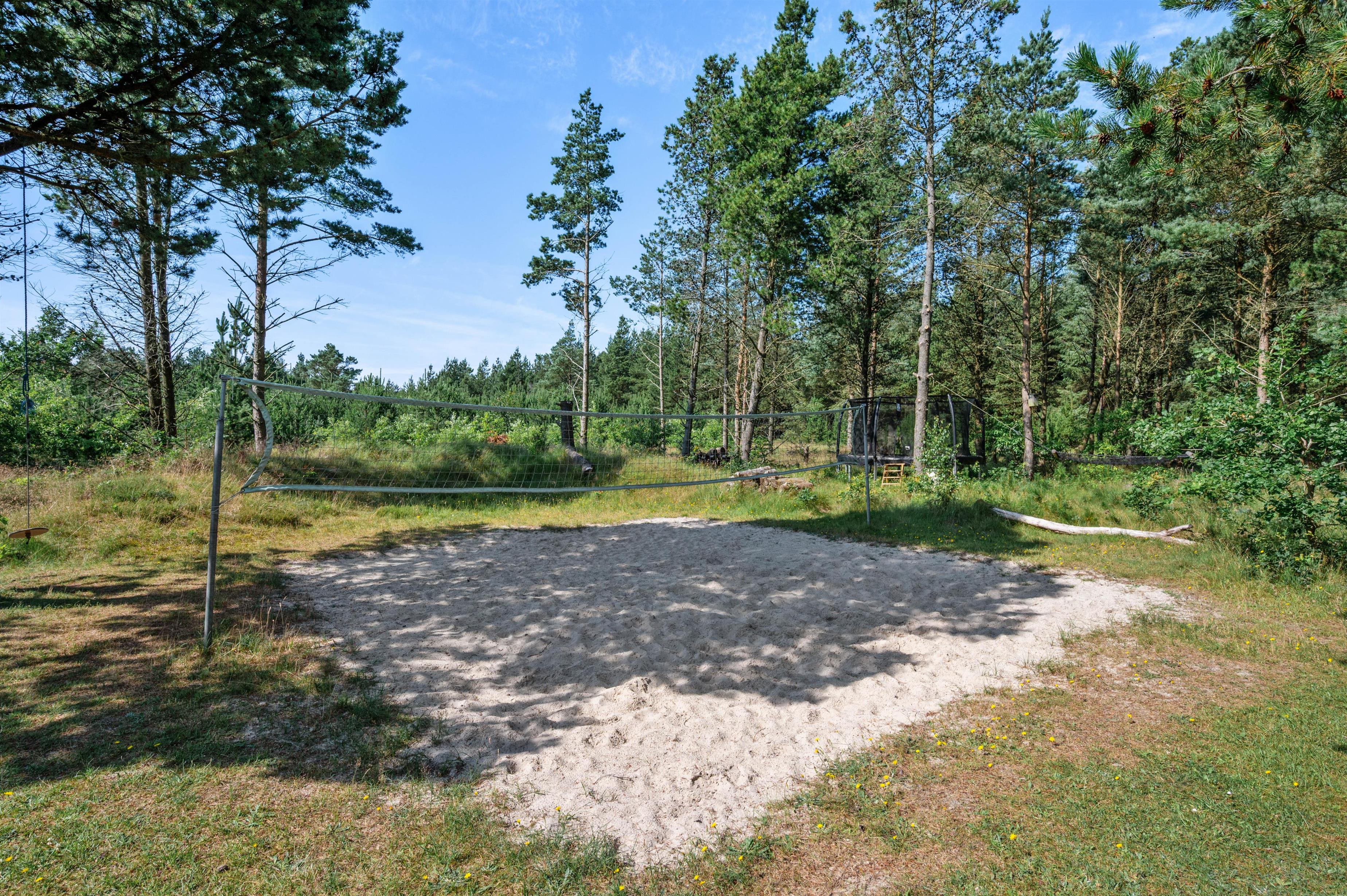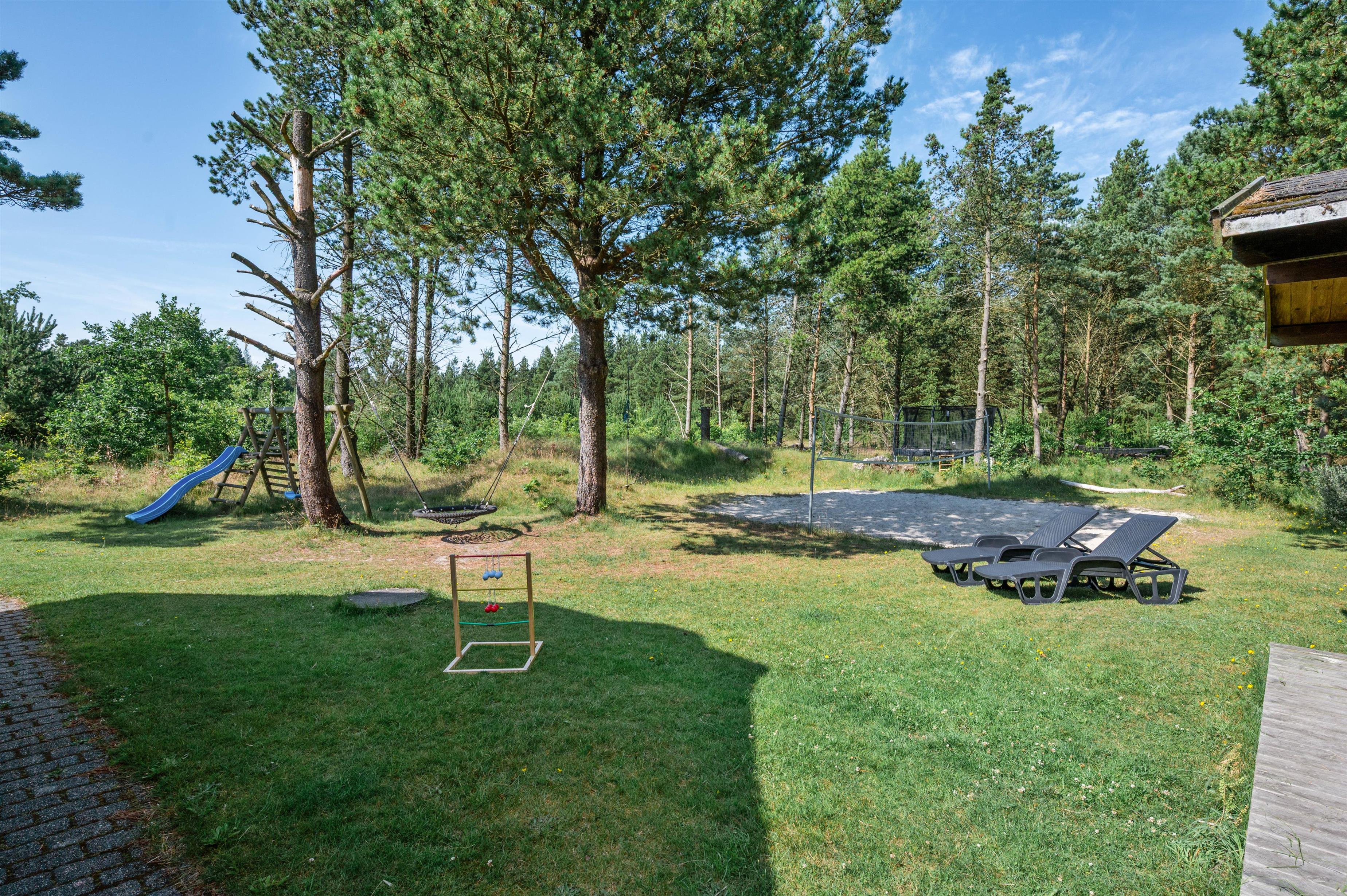 Guldvangen 70 boasts excellent outdoor facilities where you'll surely spend many hours. The 2,300-square-metre plot includes a volleyball court, pull-up bars for fitness enthusiasts, and children's play equipment with swings, sandbox, and slide. The holiday home is surrounded by a tiled terrace, offering various spots to enjoy the sunshine. You can prepare delicious barbecues using either the gas or charcoal grill, or both.
