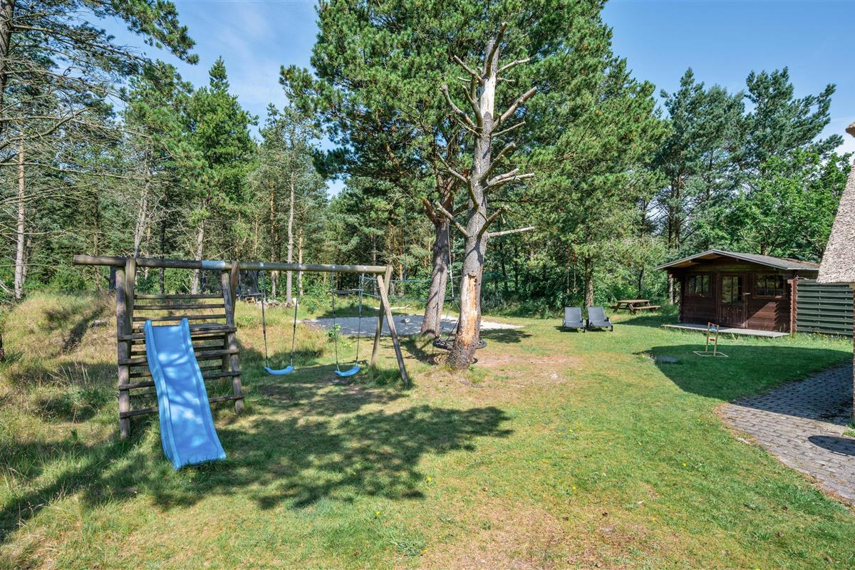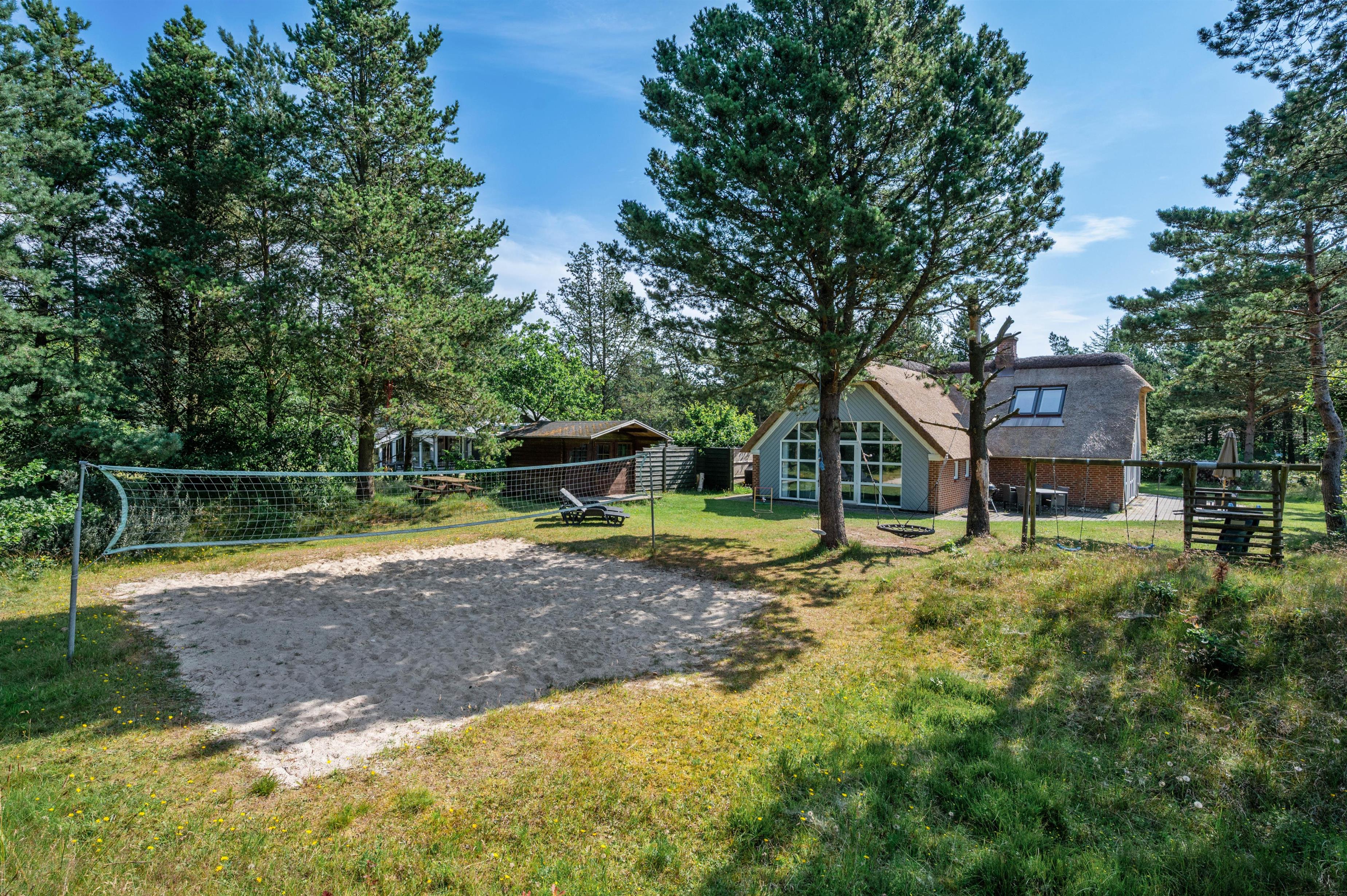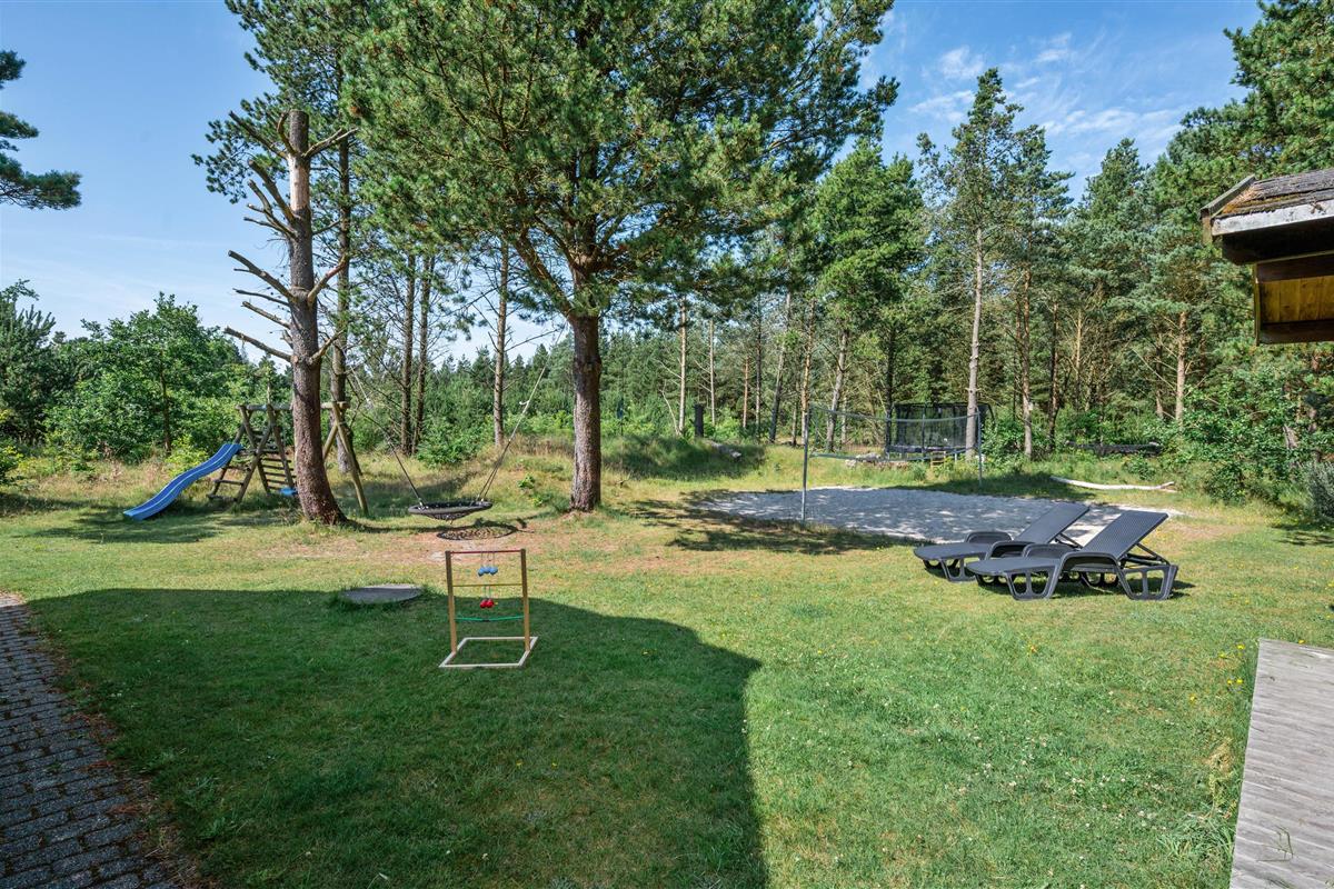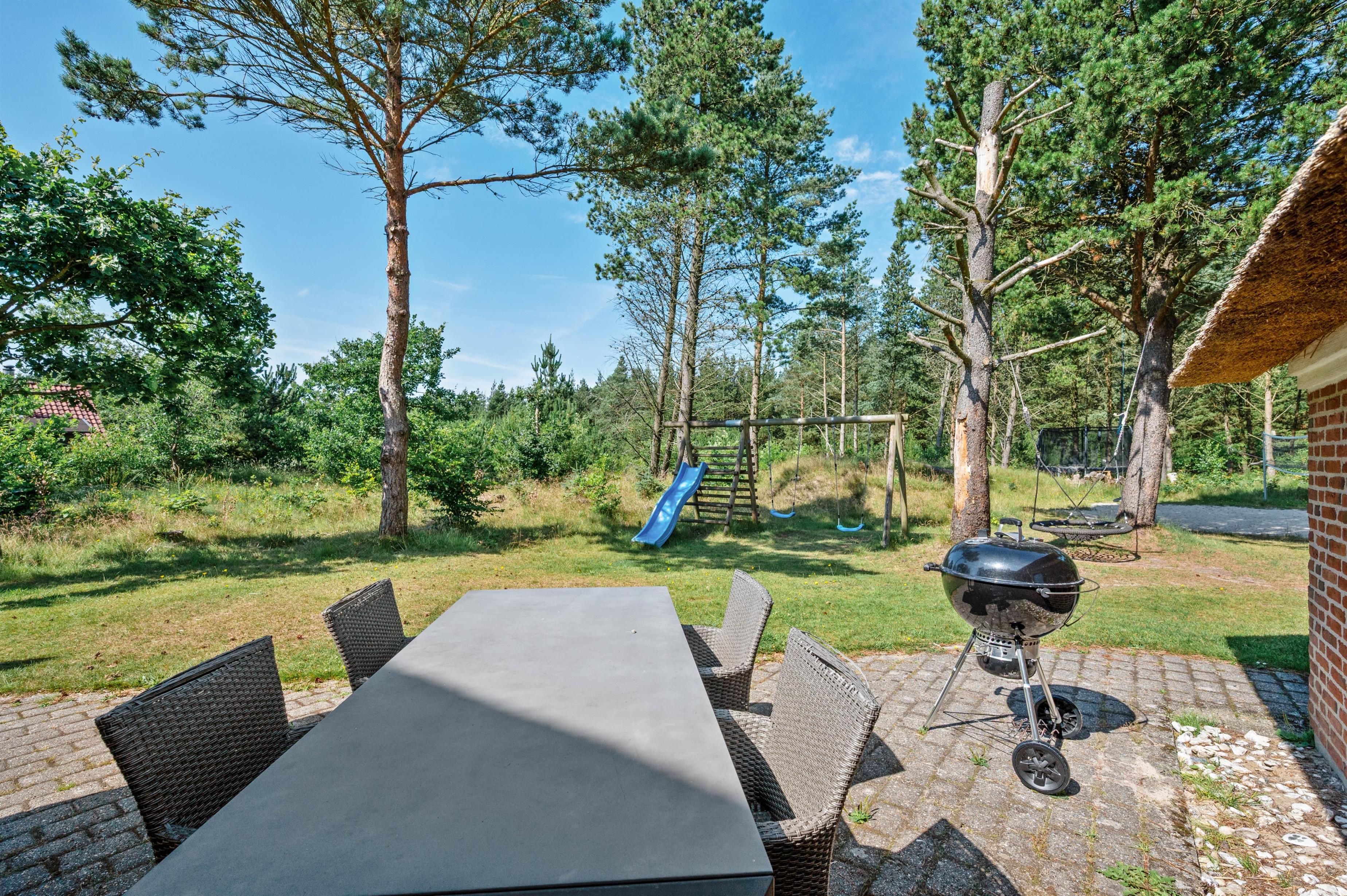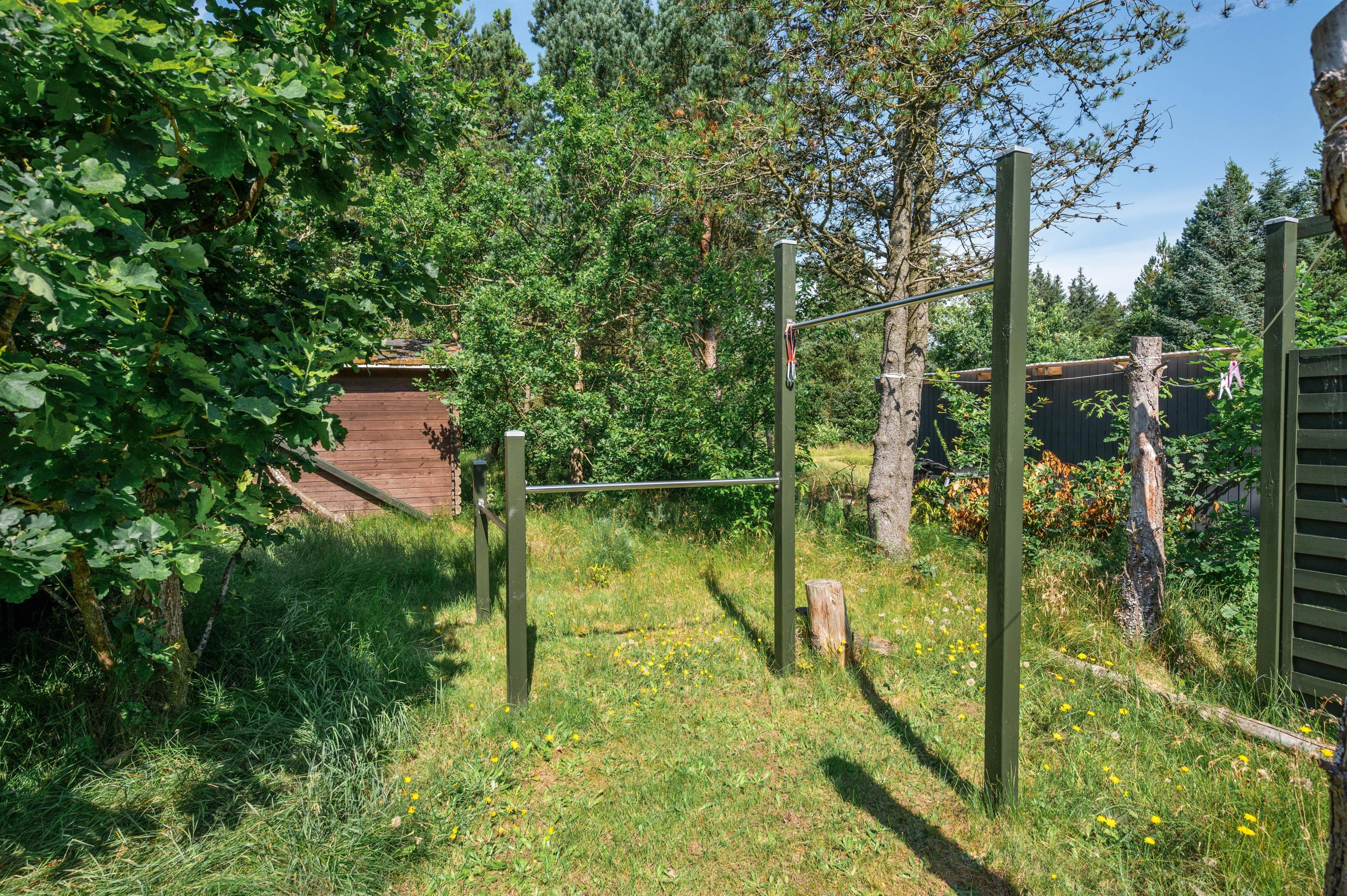 Guldvangen 70 boasts excellent outdoor facilities where you'll surely spend many hours. The 2,300-square-metre plot includes a volleyball court, pull-up bars for fitness enthusiasts, and children's play equipment with swings, sandbox, and slide. The holiday home is surrounded by a tiled terrace, offering various spots to enjoy the sunshine. You can prepare delicious barbecues using either the gas or charcoal grill, or both.