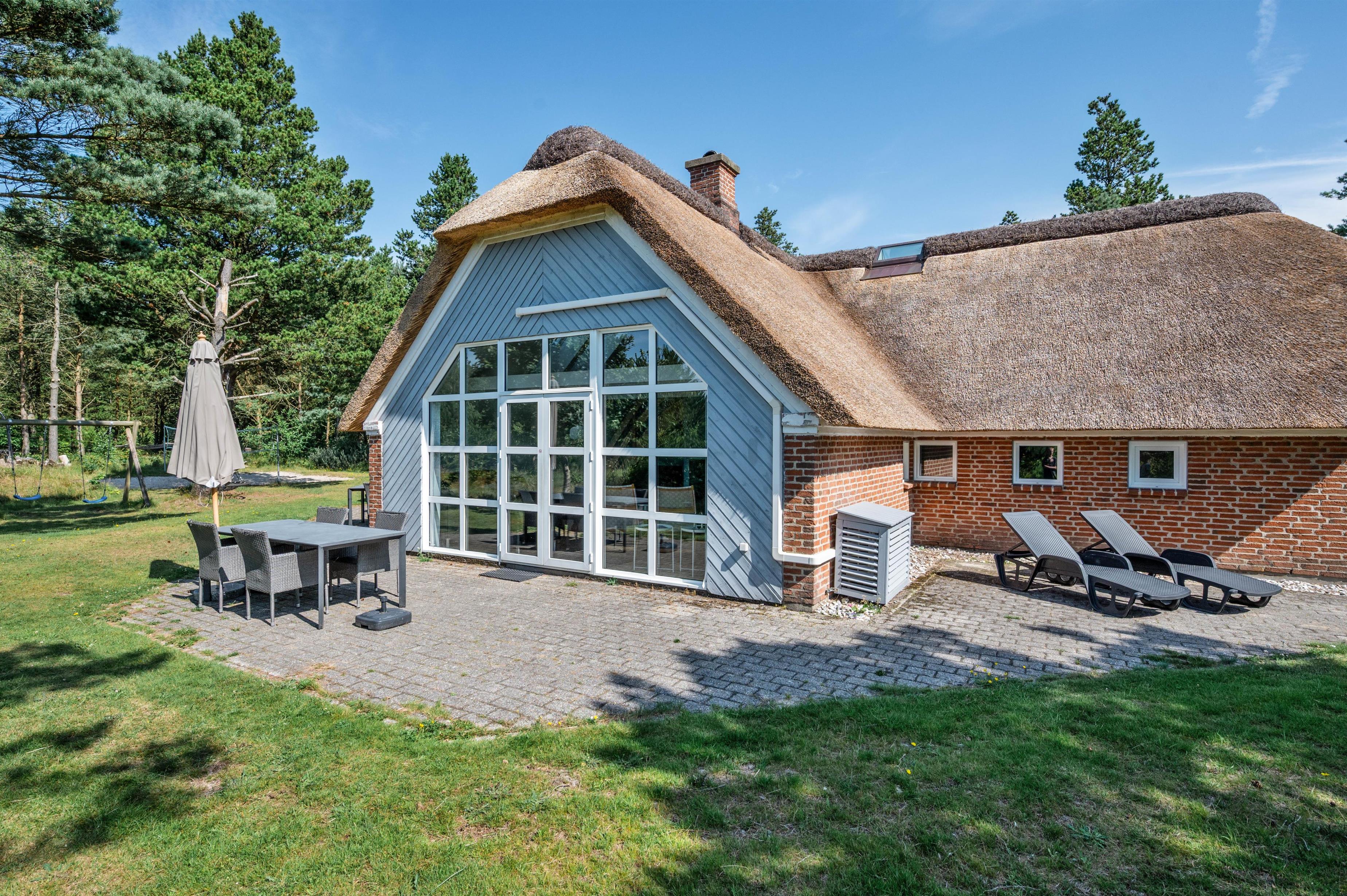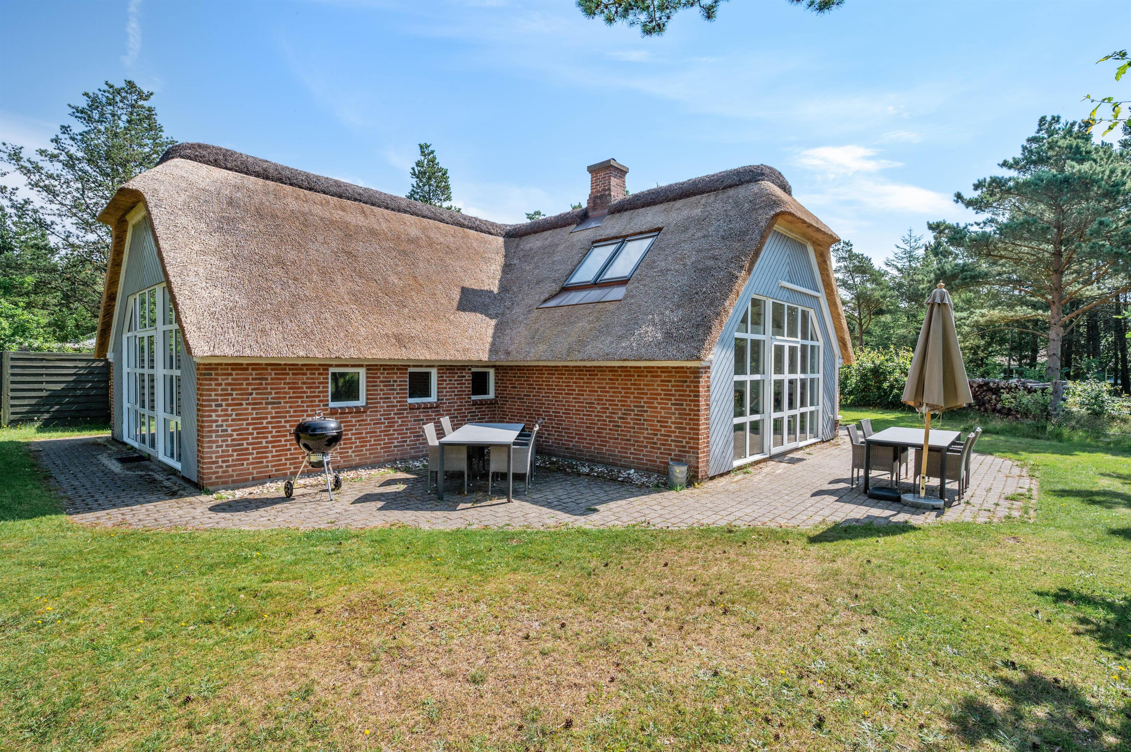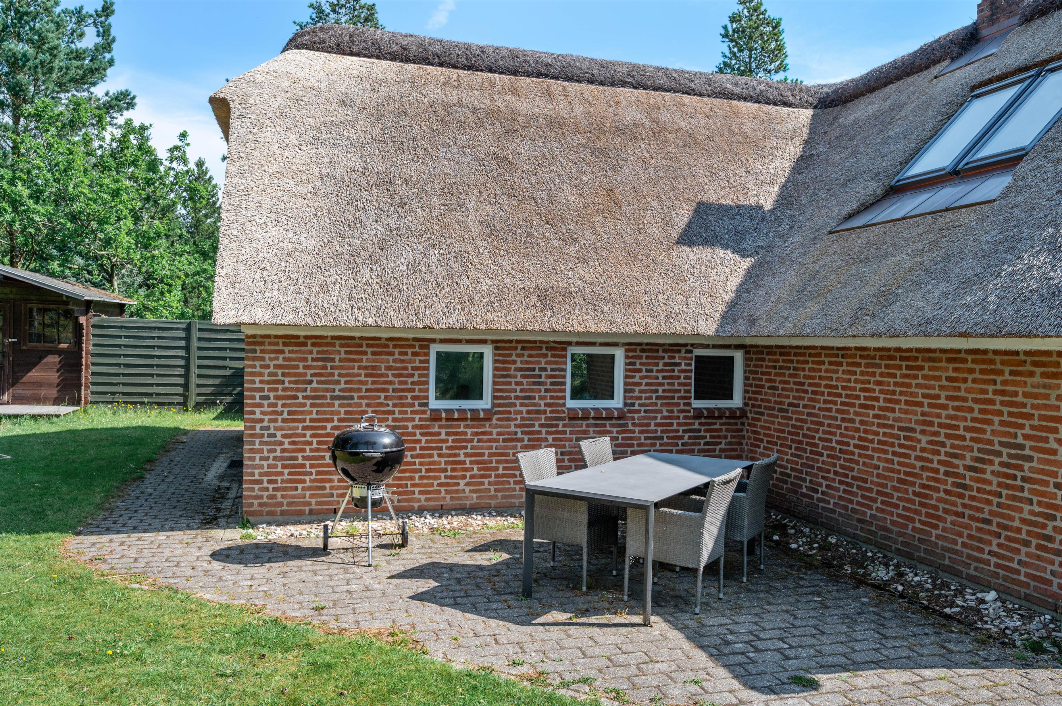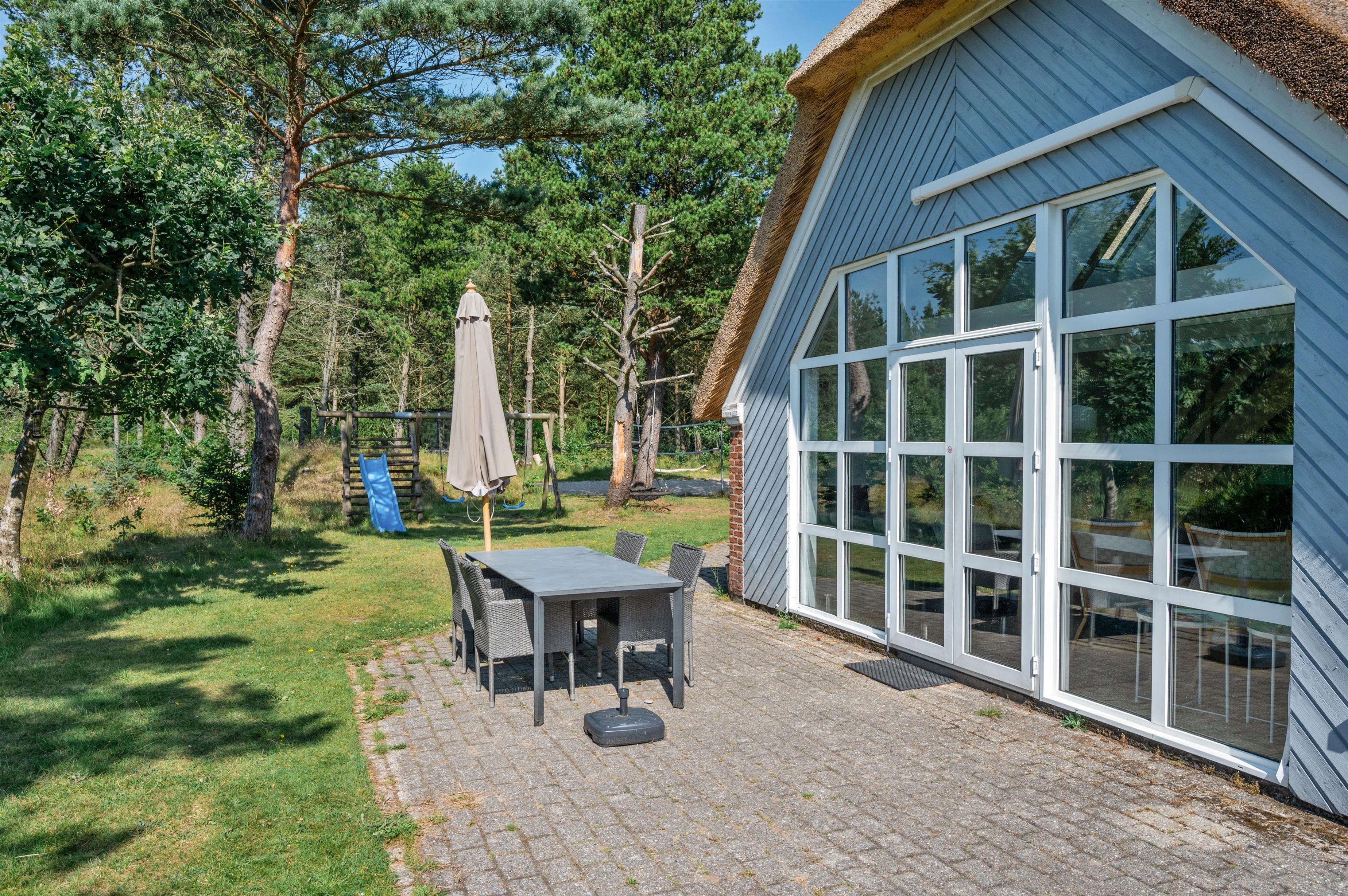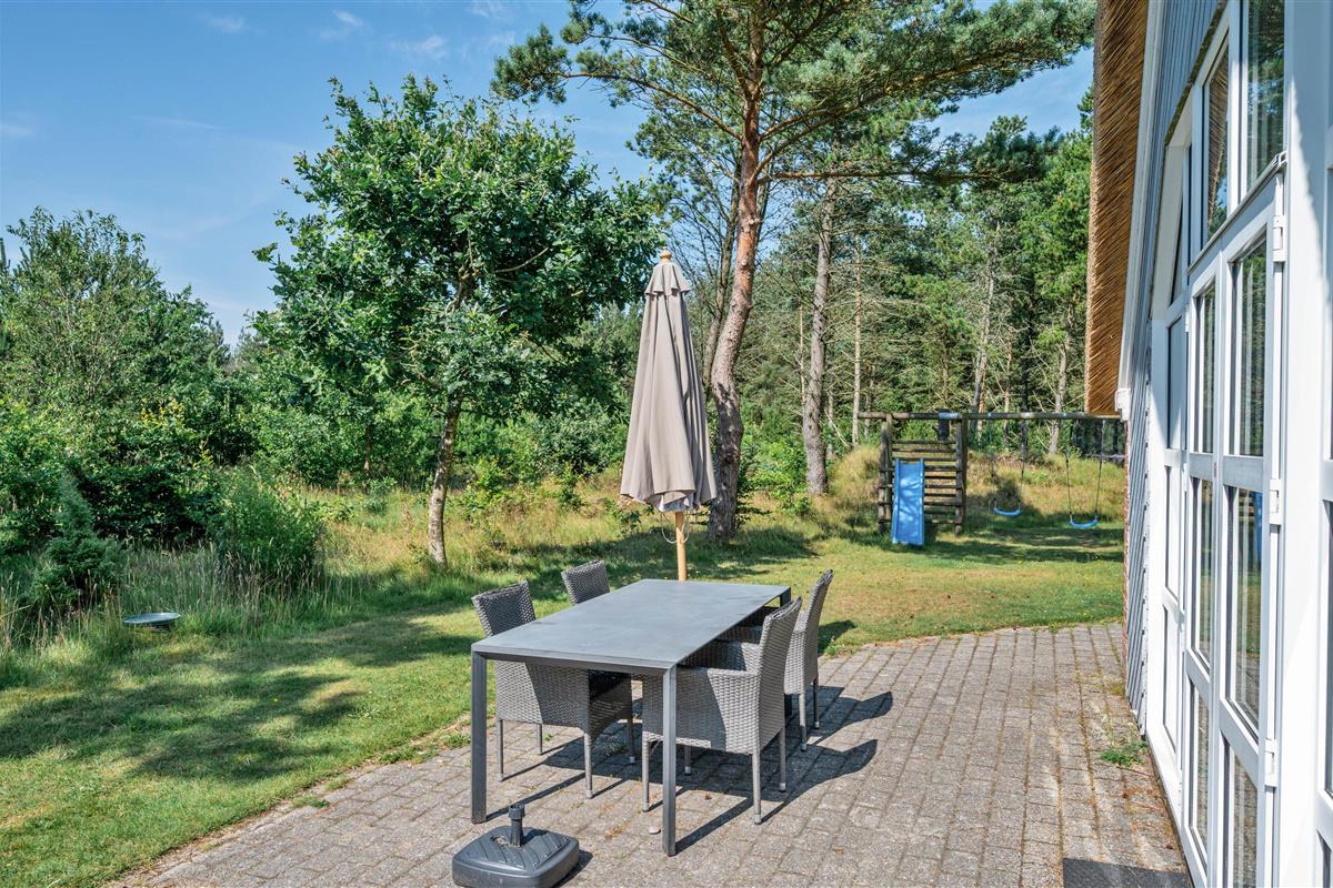Guldvangen 70 boasts excellent outdoor facilities where you'll surely spend many hours. The 2,300-square-metre plot includes a volleyball court, pull-up bars for fitness enthusiasts, and children's play equipment with swings, sandbox, and slide. The holiday home is surrounded by a tiled terrace, offering various spots to enjoy the sunshine. You can prepare delicious barbecues using either the gas or charcoal grill, or both.