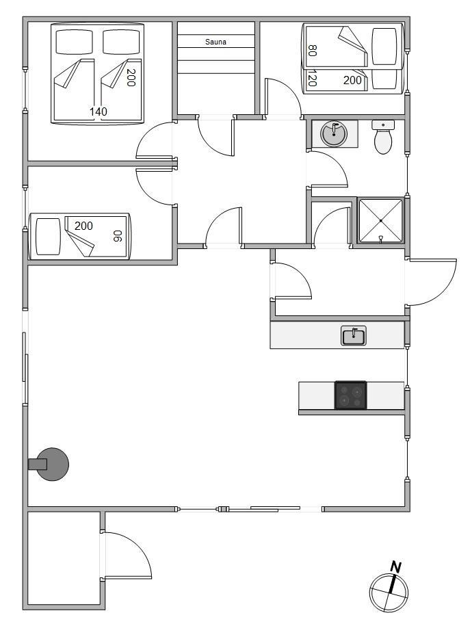 The 65 m² holiday home offers you 3 bedrooms where you can relax at night. One room is equipped with a double bed, one with a single bed and the third room has a bunk bed, with the upper bed measuring 80x200 cm and the lower bed measuring 140x200 cm.