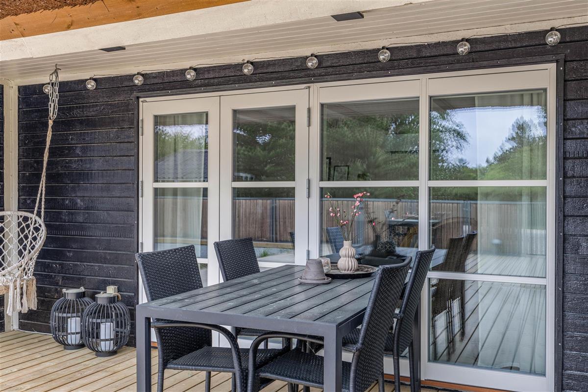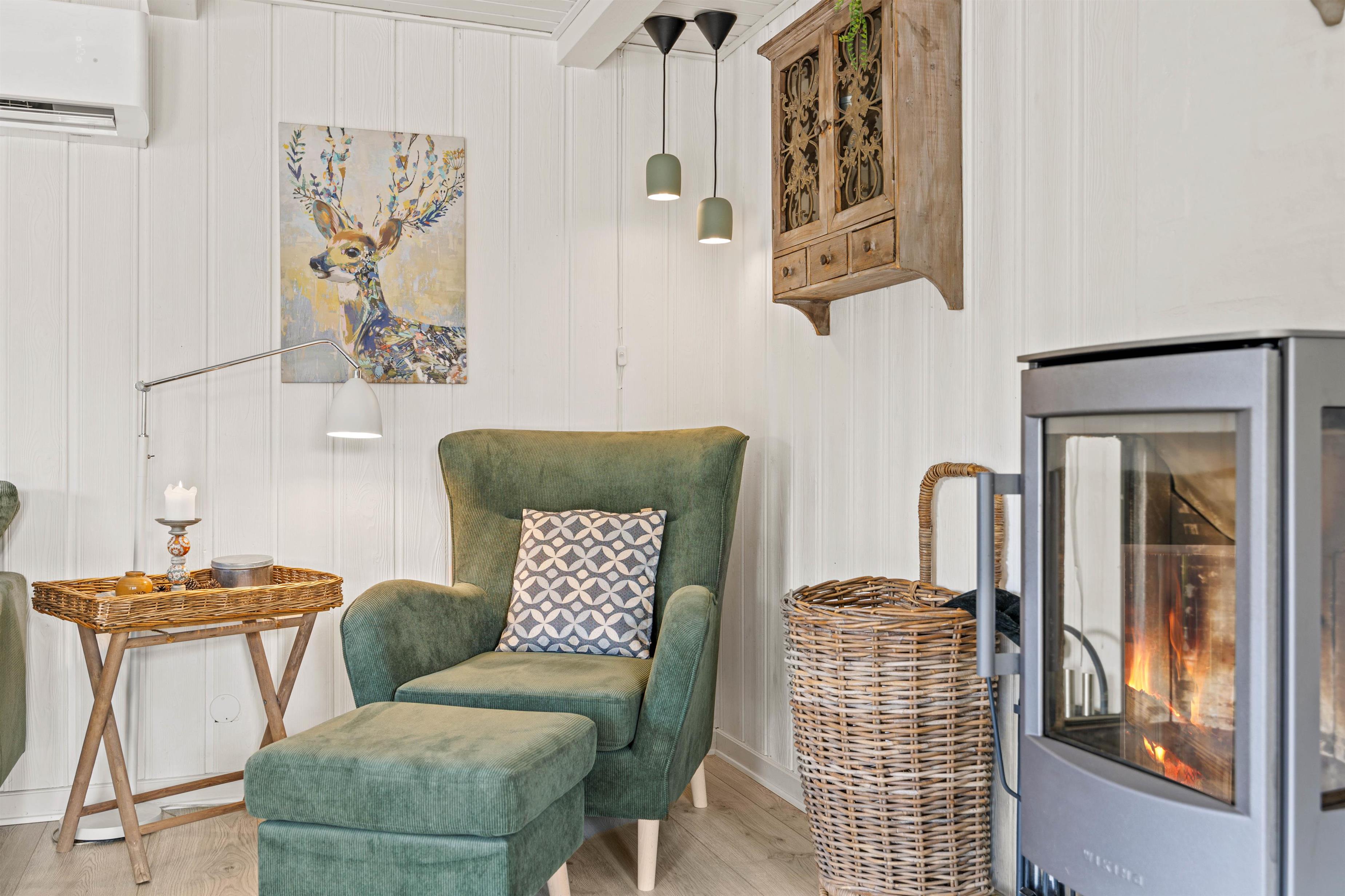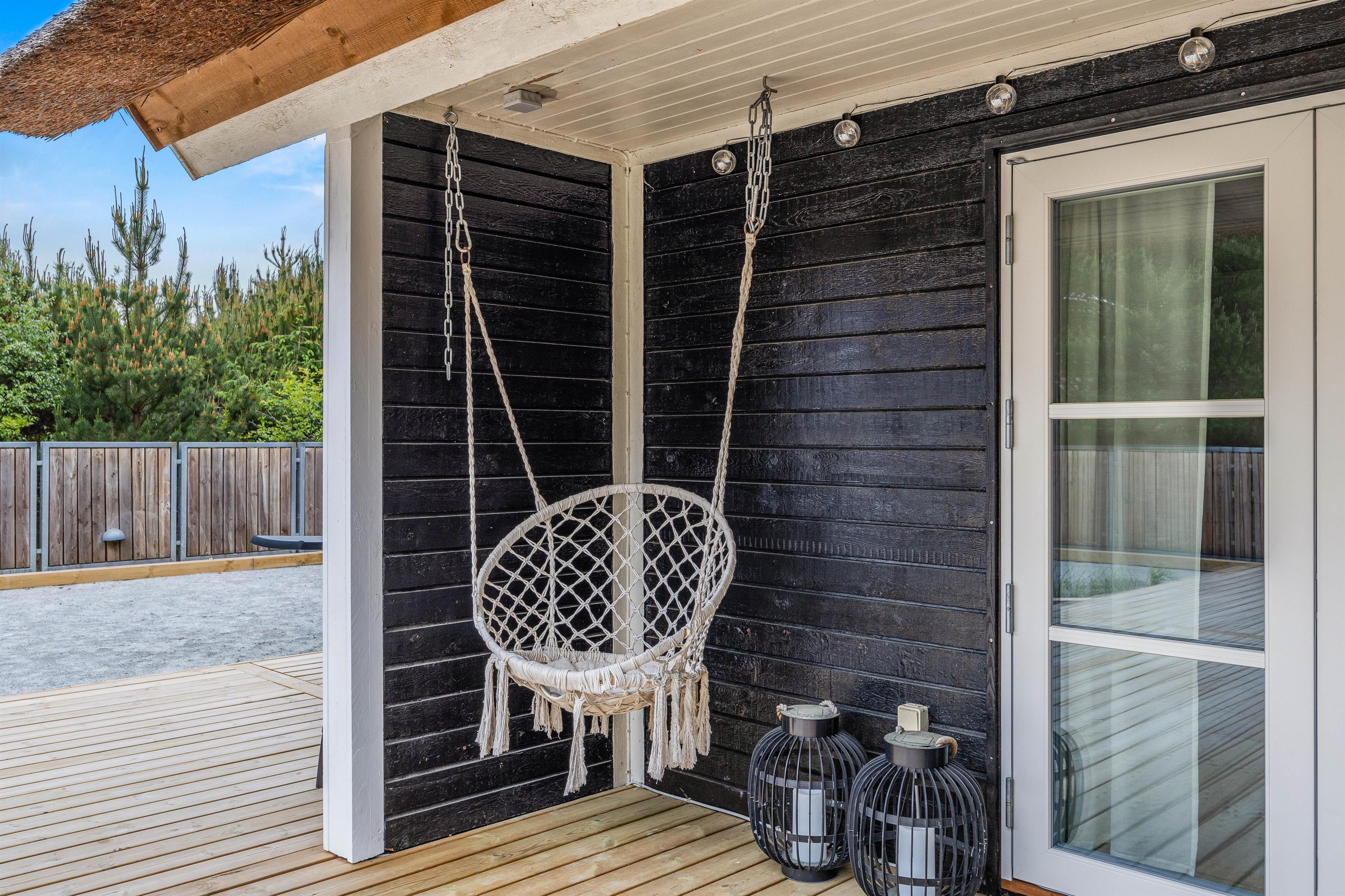Part of the terrace is covered, allowing you to enjoy the outdoors even in typical Nordic weather, perhaps cuddled up in garden chairs with blankets and hot cocoa. The holiday home comes with an electric barbecue for preparing your evening meals.