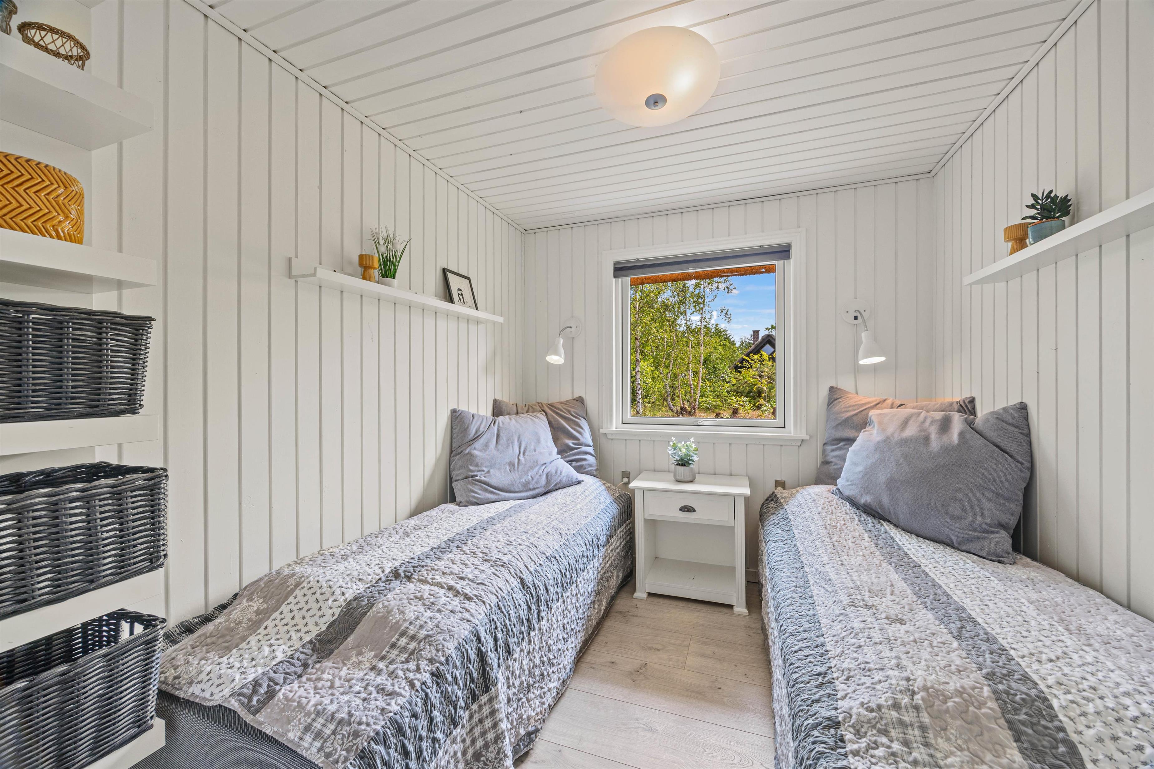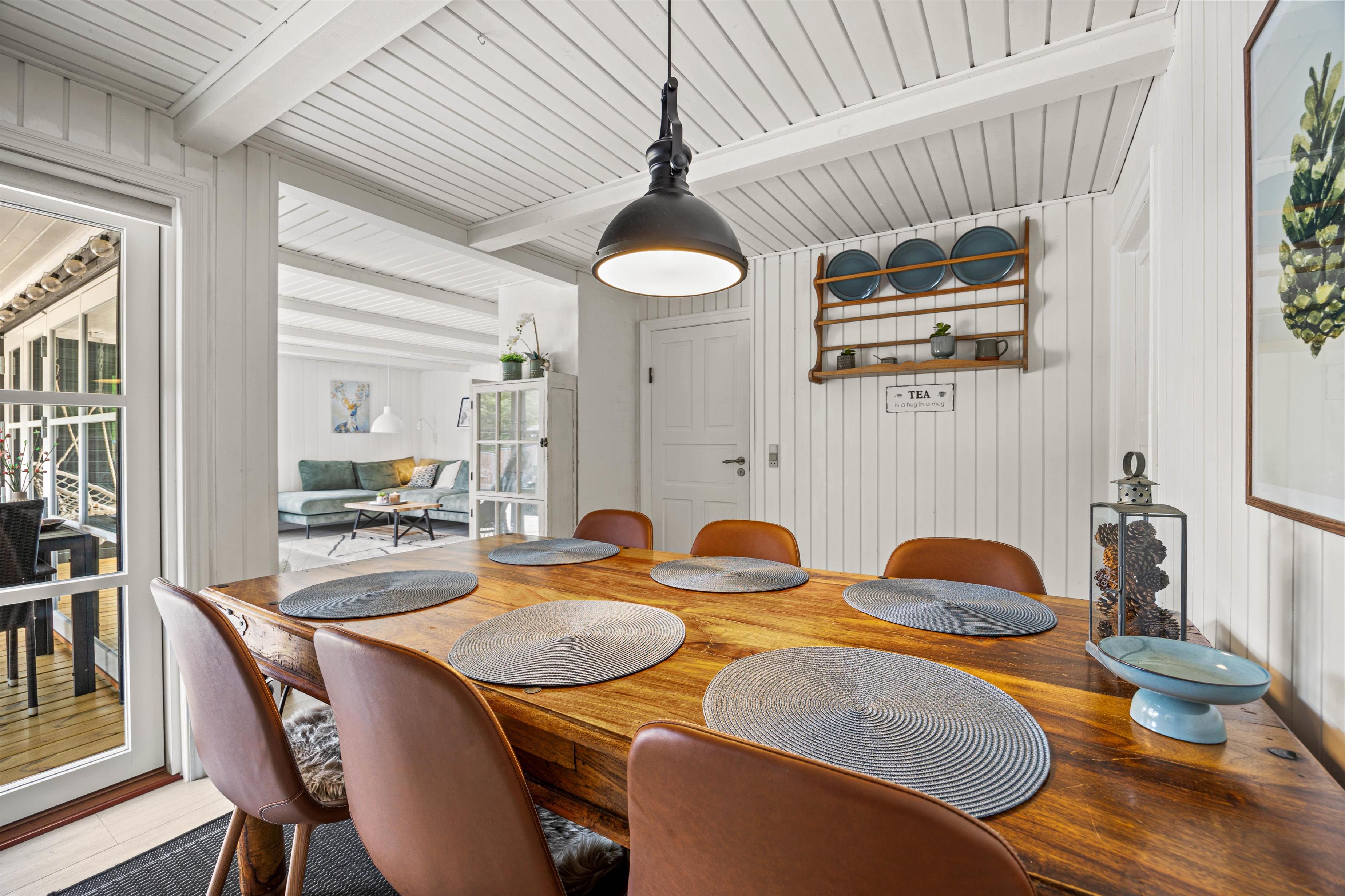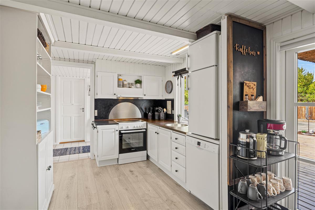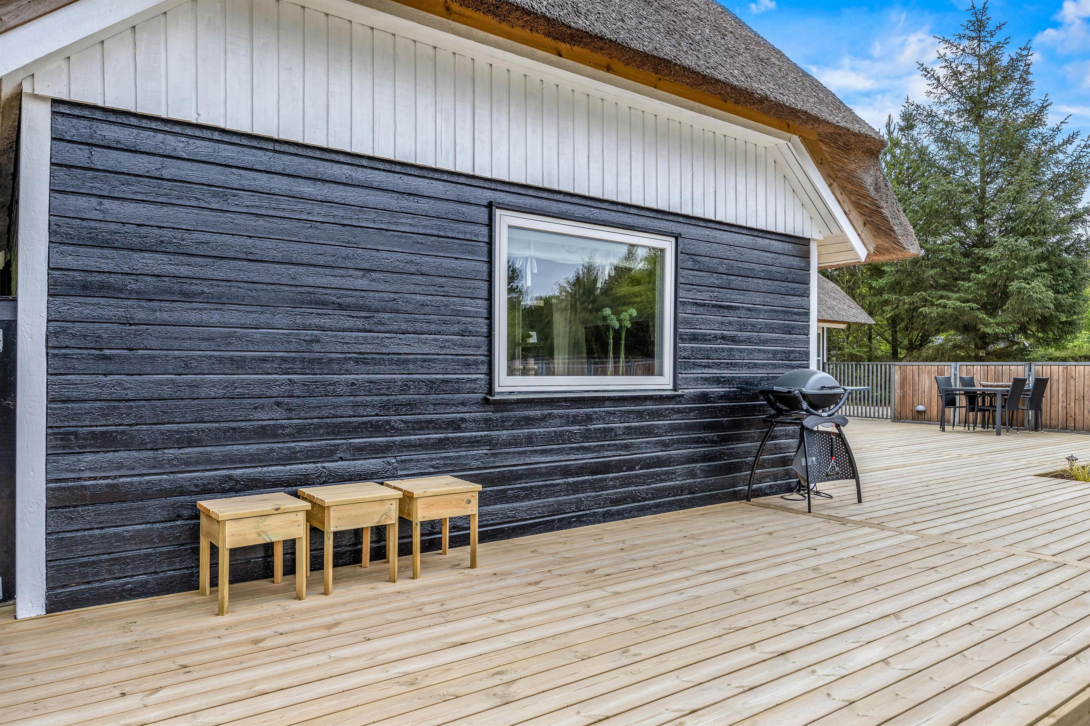 Part of the terrace is covered, allowing you to enjoy the outdoors even in typical Nordic weather, perhaps cuddled up in garden chairs with blankets and hot cocoa. The holiday home comes with an electric barbecue for preparing your evening meals.