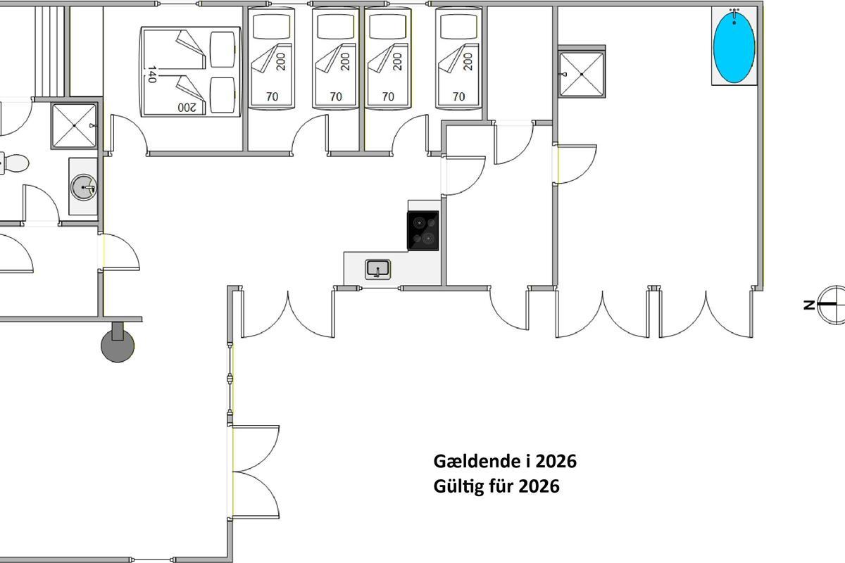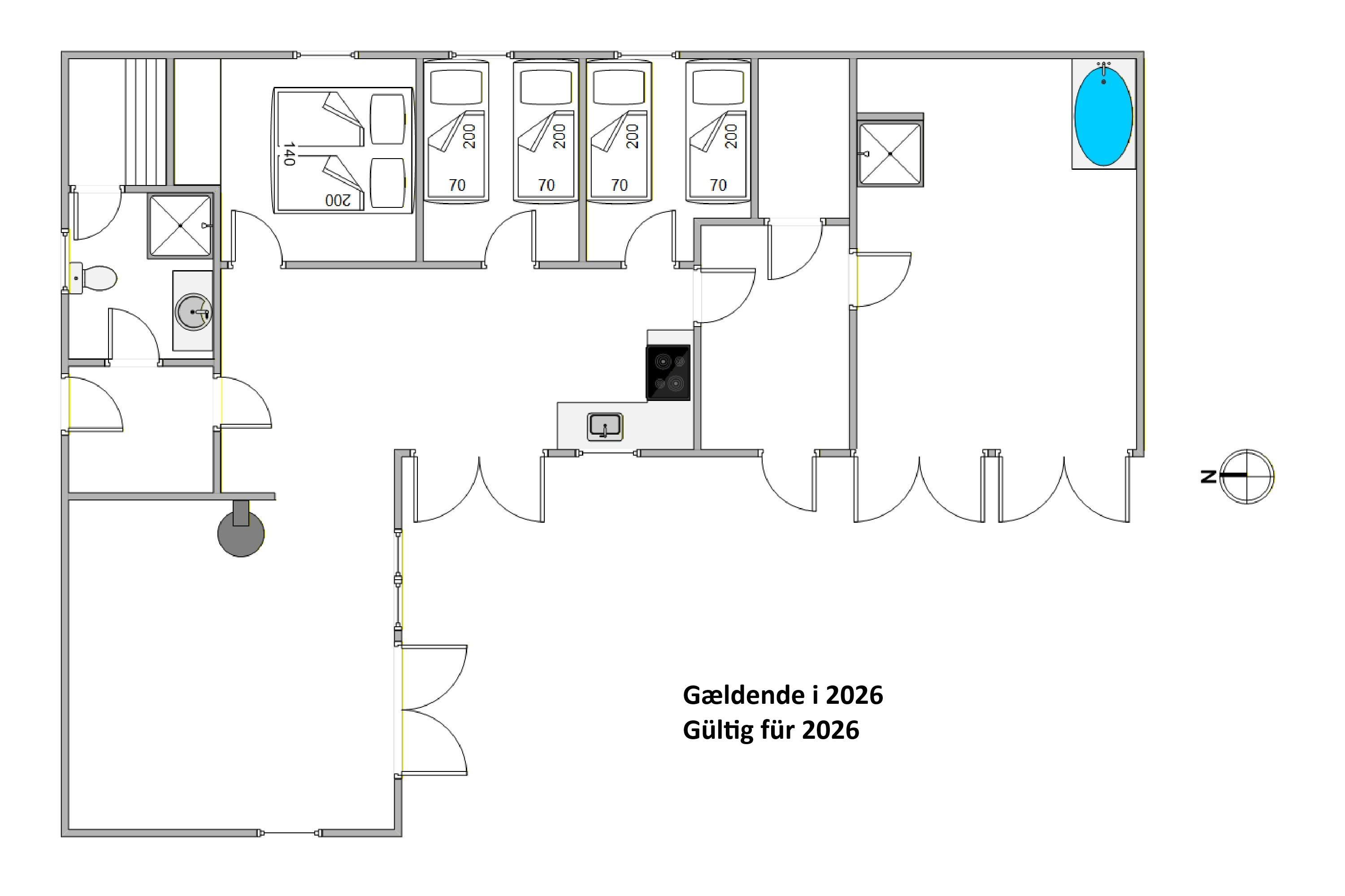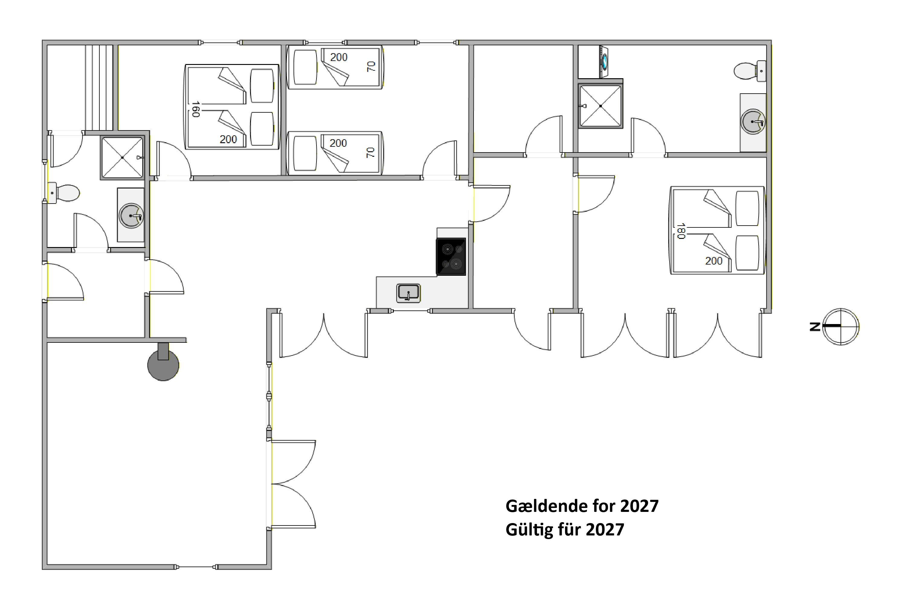 From the 2027 season onwards, you will have access to two fully equipped bathrooms with showers. The bathtub will be removed. In addition, the distribution of beds will change to two rooms with double beds and one room with two single beds.