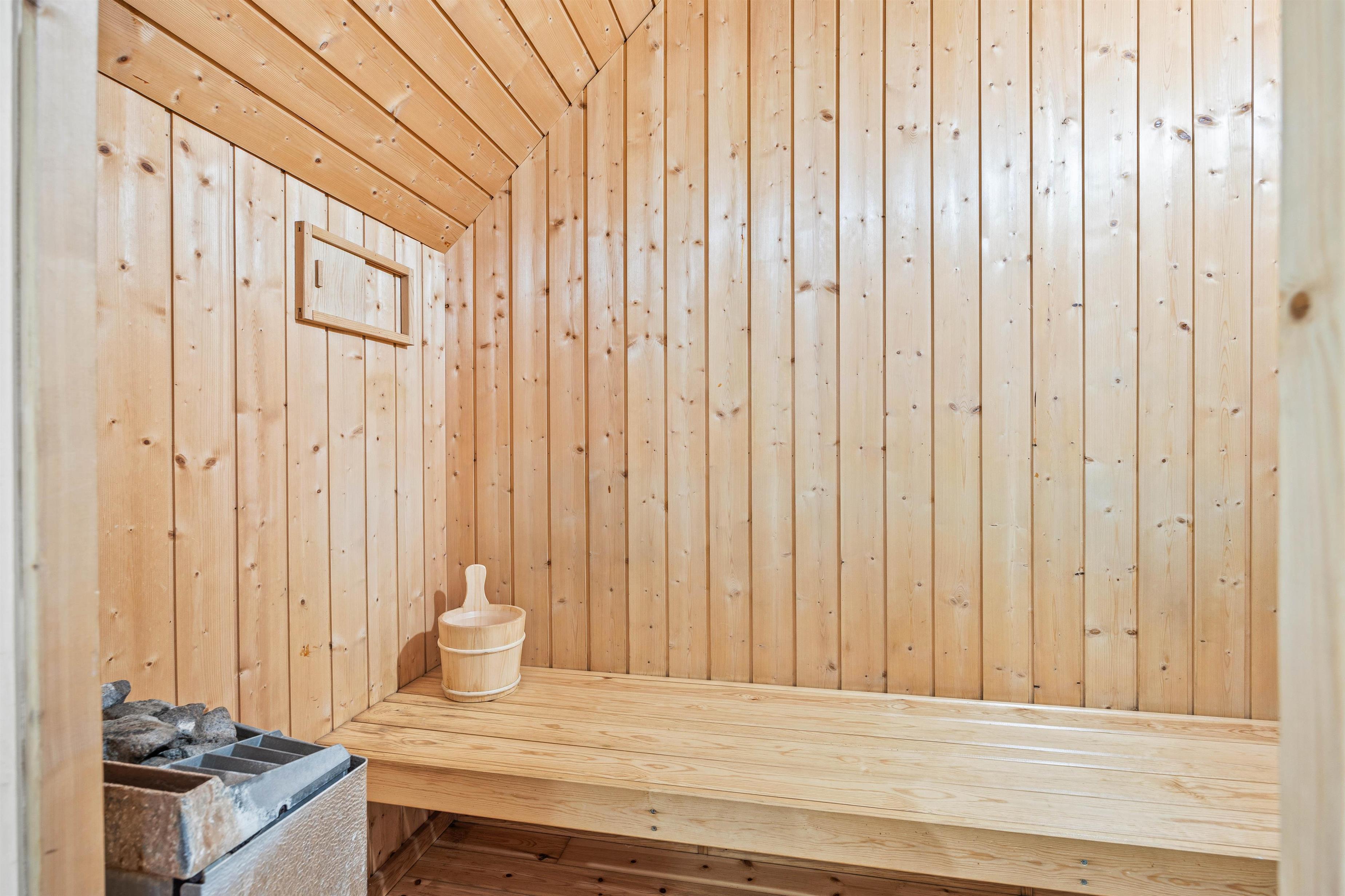 Open-plan layout and sauna