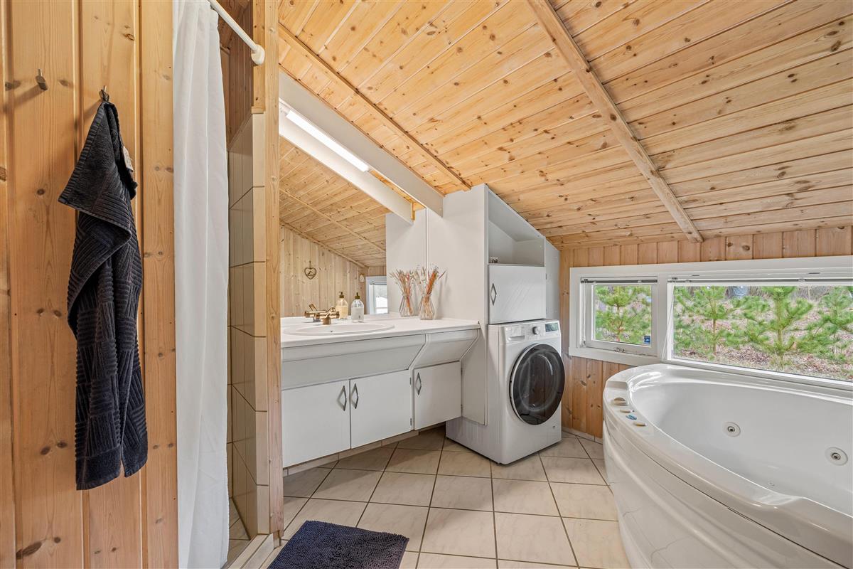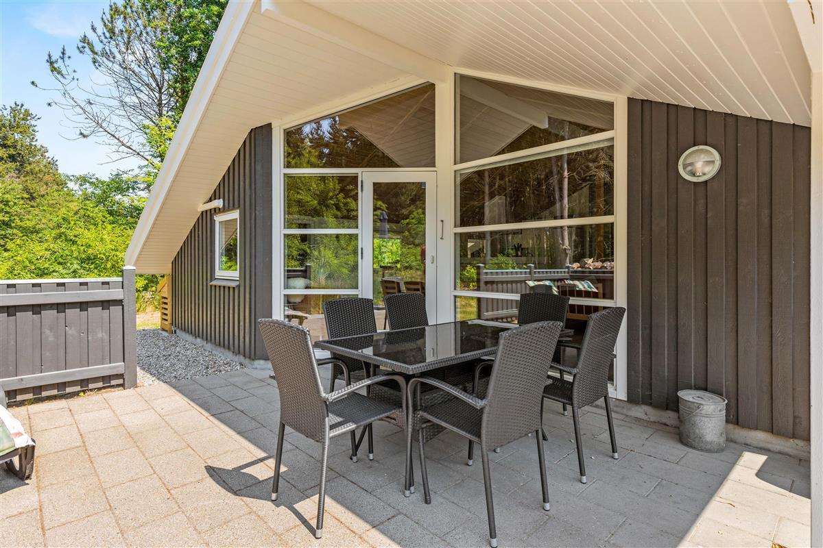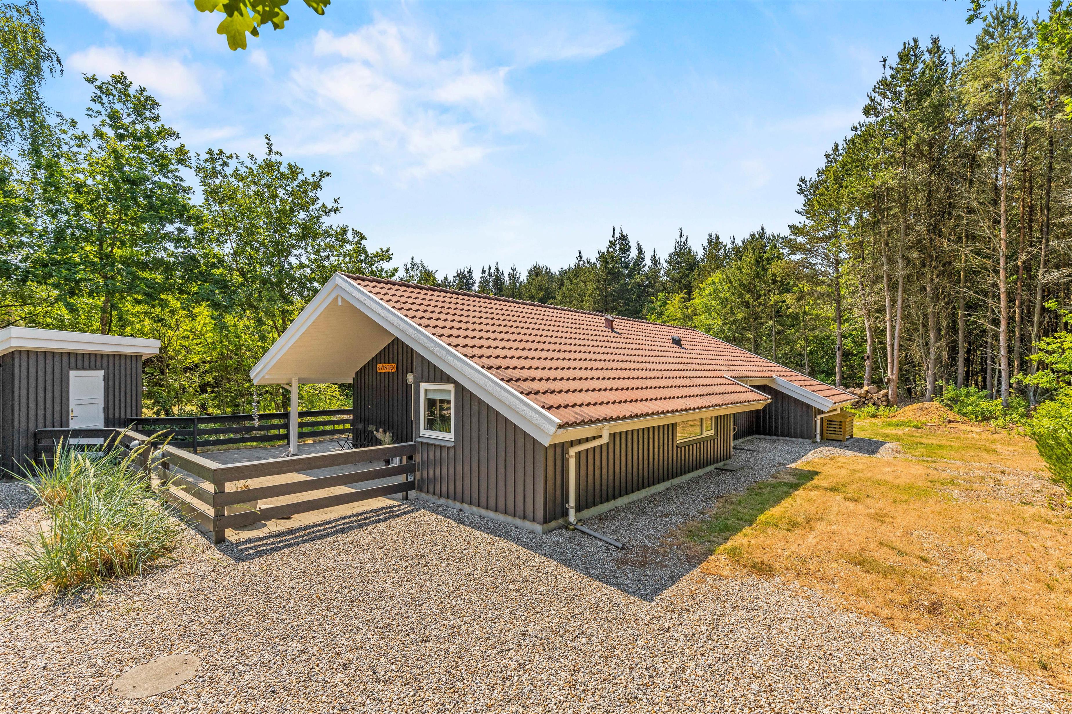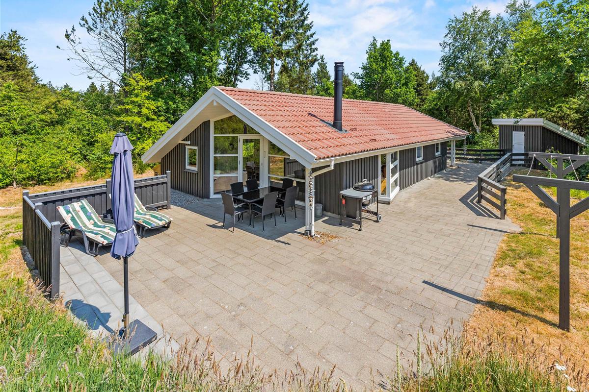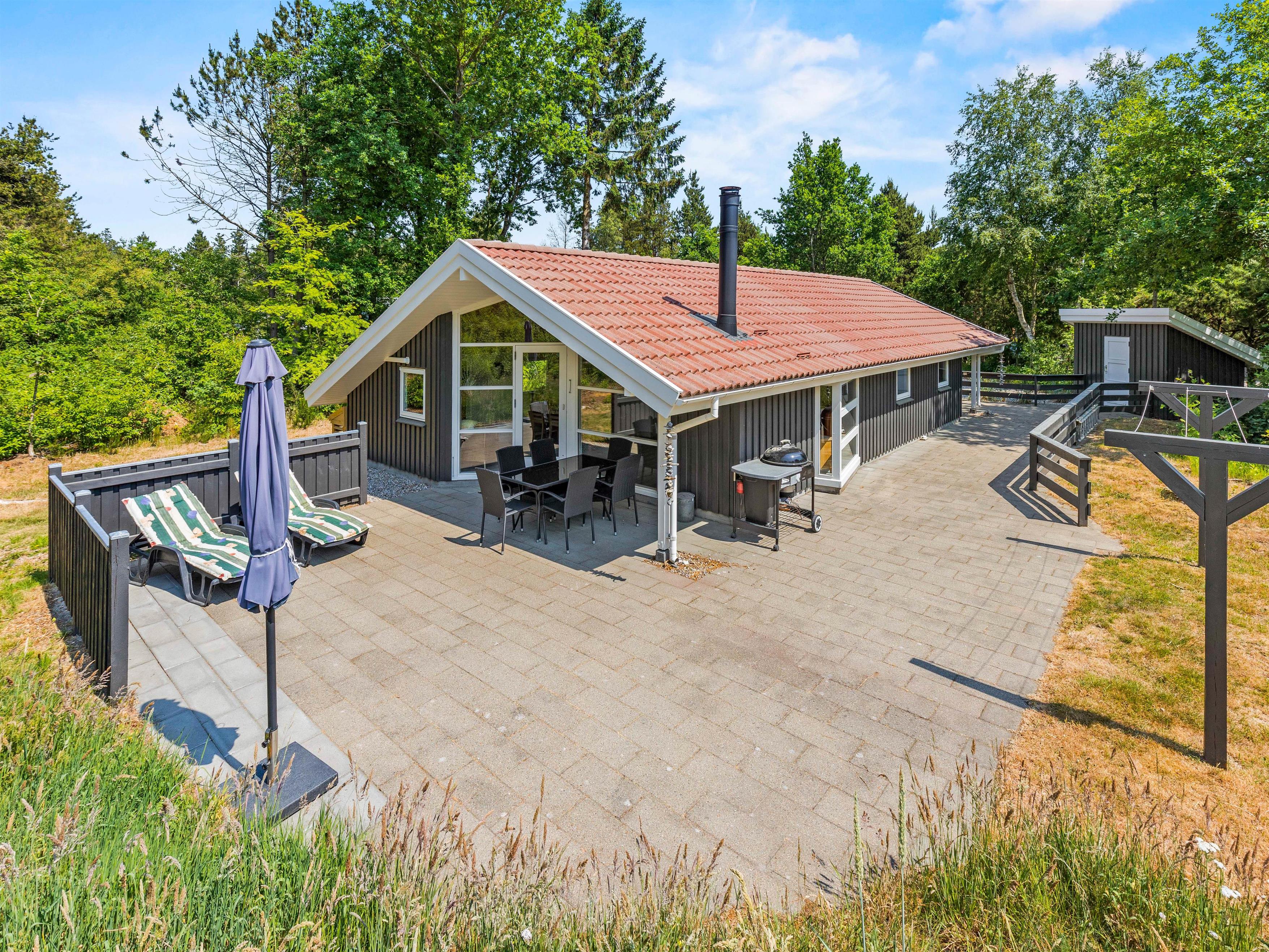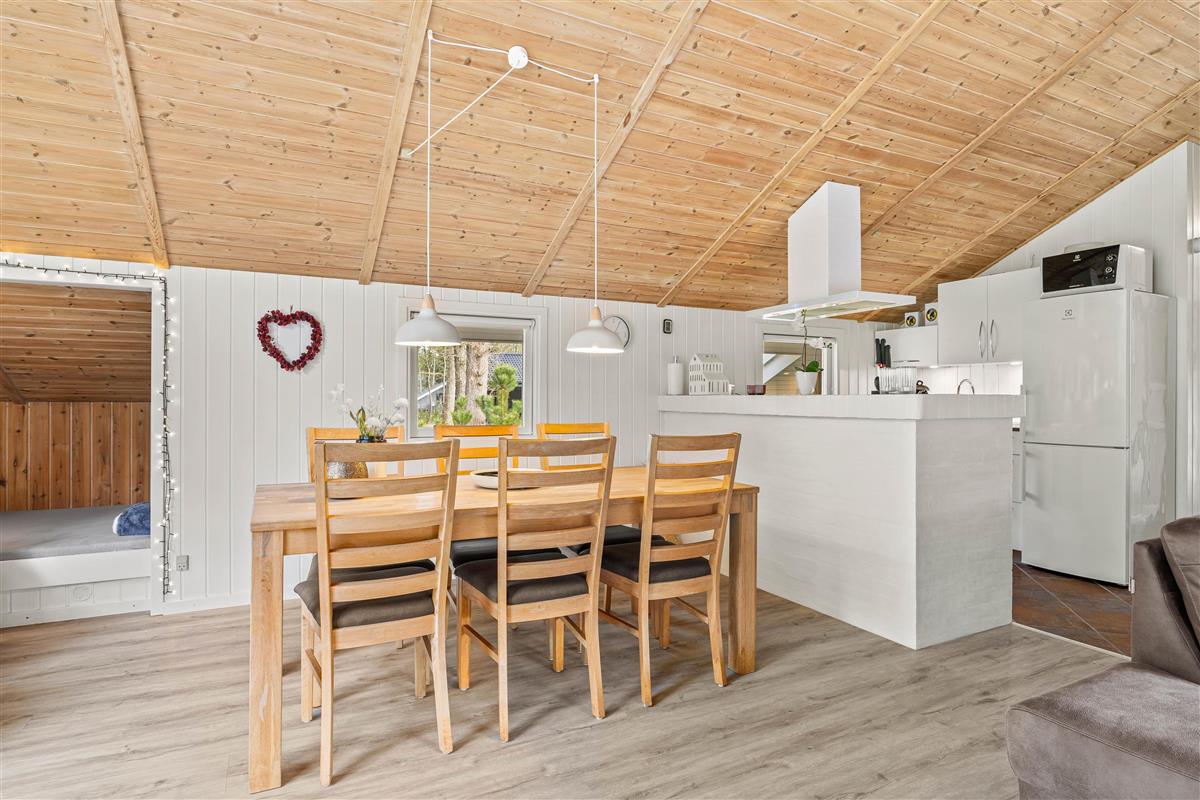This beautiful wooden house is situated at the end of Vestervang, offering a quiet and relaxing holiday setting for families. Nestled among pine trees, the holiday home ensures complete privacy away from overlooking neighbours. The house comfortably accommodates up to 6 people and is equipped with excellent amenities throughout.