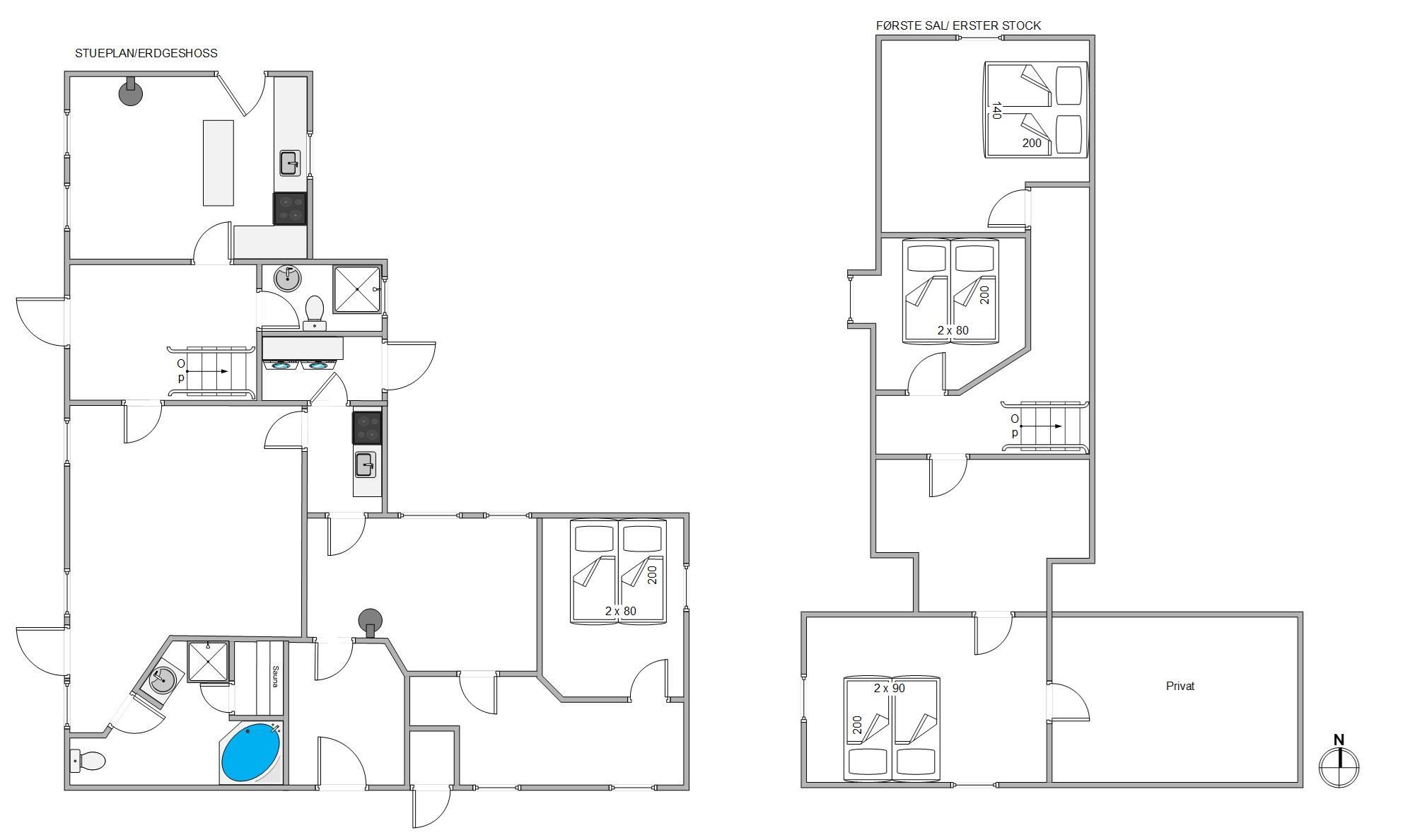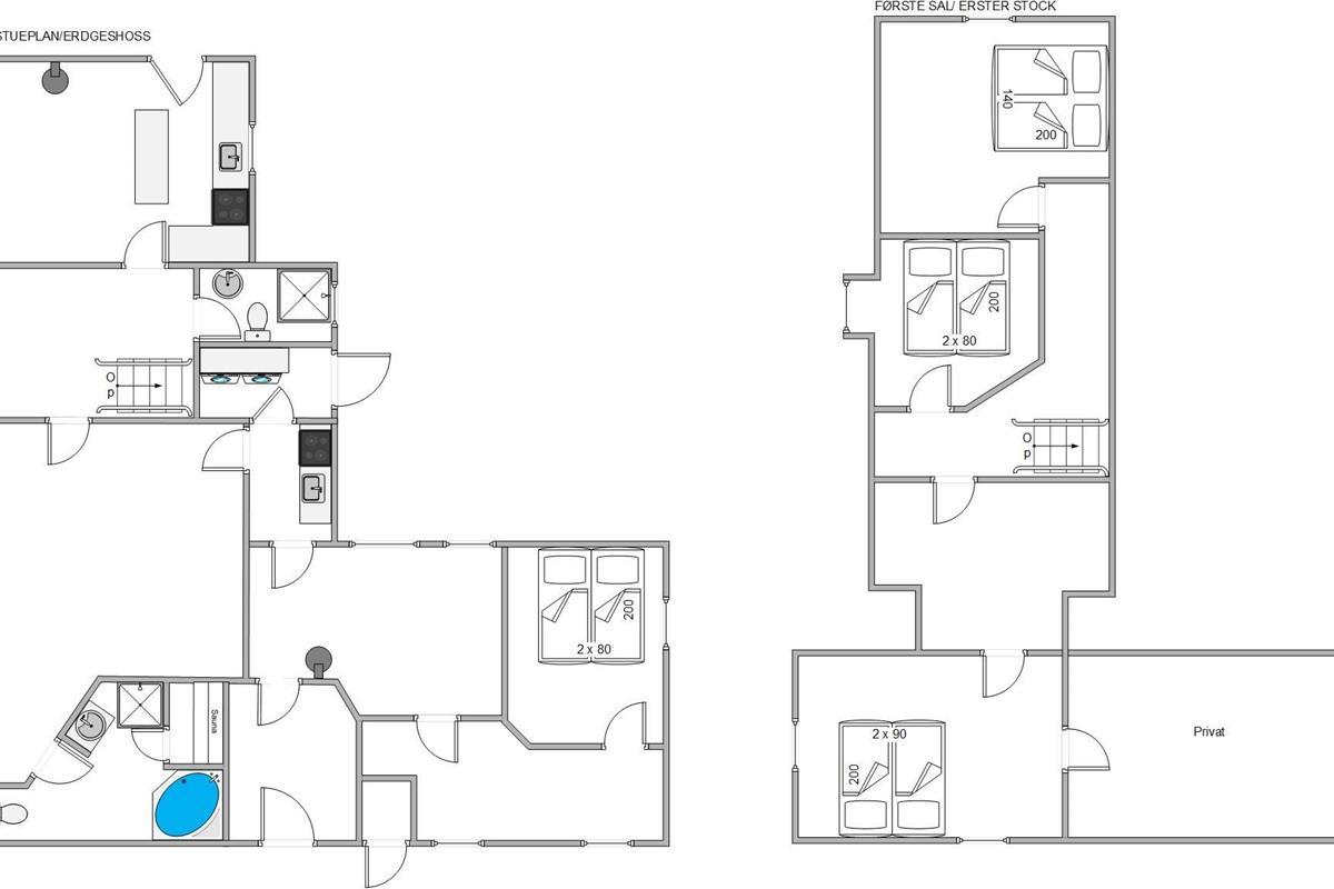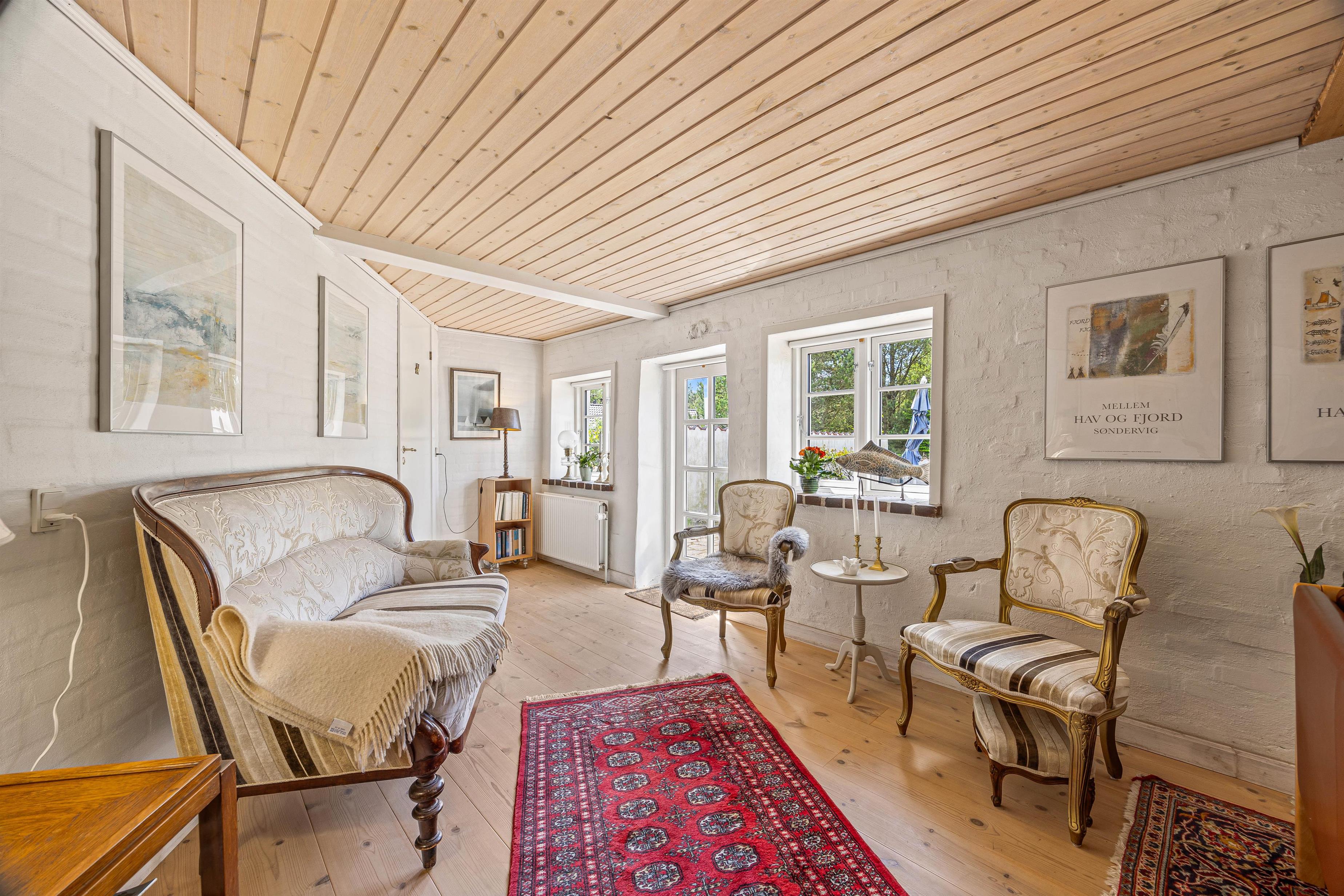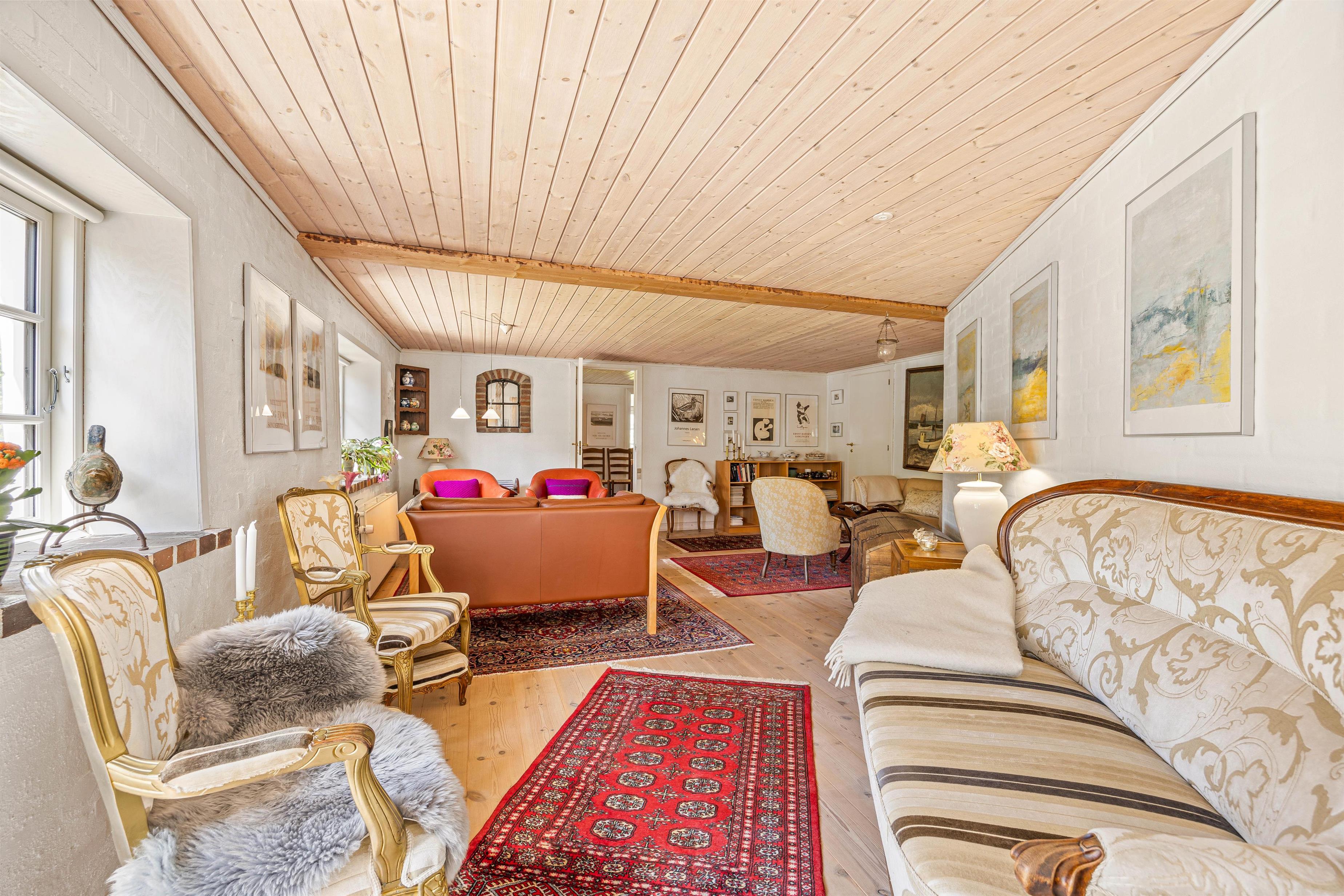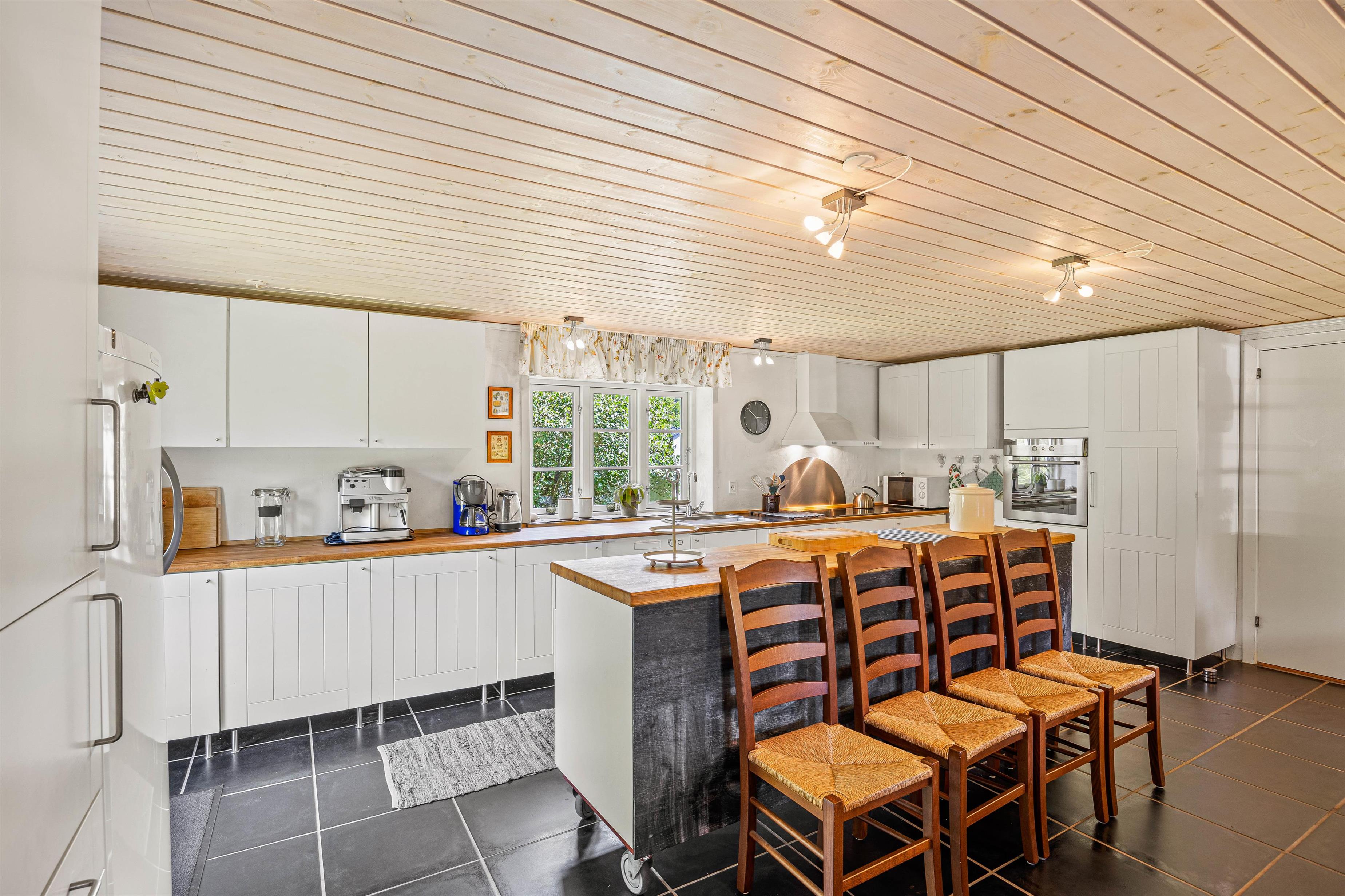 The living area of this Houstrup holiday home is perfect for relaxing after an eventful day. The wood-burning stove provides cosy warmth and a romantic atmosphere during cooler months. Here you can settle in with a good book or glass of wine and enjoy well-deserved relaxation. The living area is also excellent for social gatherings, with plenty of space for all guests. The open-plan kitchen and dining area forms the heart of the holiday home, perfect for sociable evenings. A modern kitchen with dishwasher makes meal preparation easier, while the large dining table offers ample space for shared meals, games nights, or long conversations over wine. The open-plan layout ensures you're always in good company, whether cooking or relaxing. Two bathrooms mean no morning rush, with everyone having their own space for personal care. The sauna provides soothing relaxation after an active day, while the hot tub offers additional wellness benefits for ultimate unwinding. Four comfortable bedrooms, each furnished with a double bed, provide plenty of space for everyone.