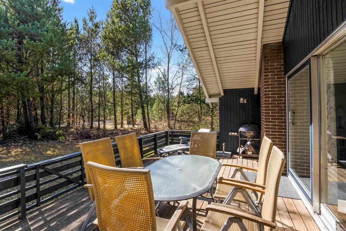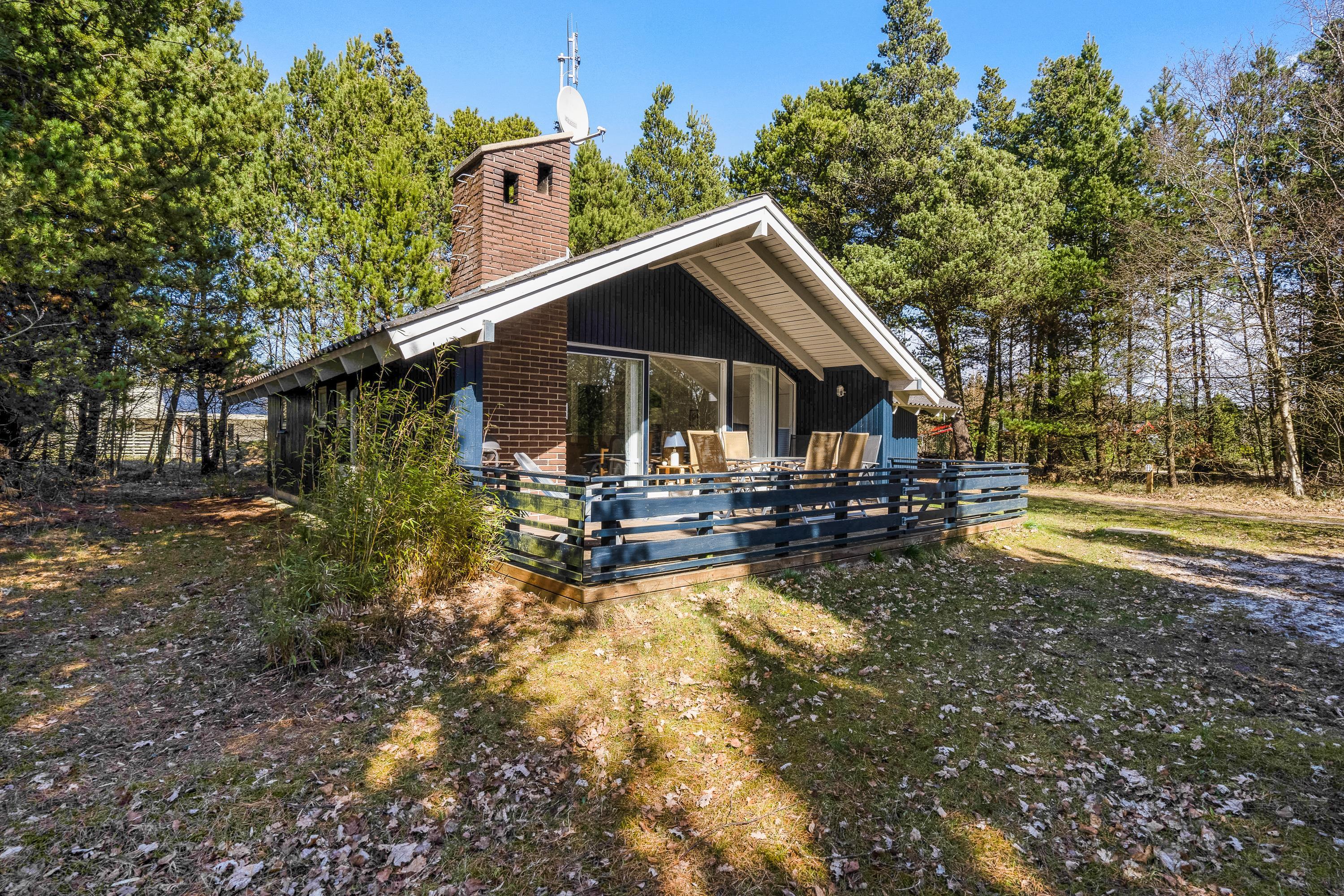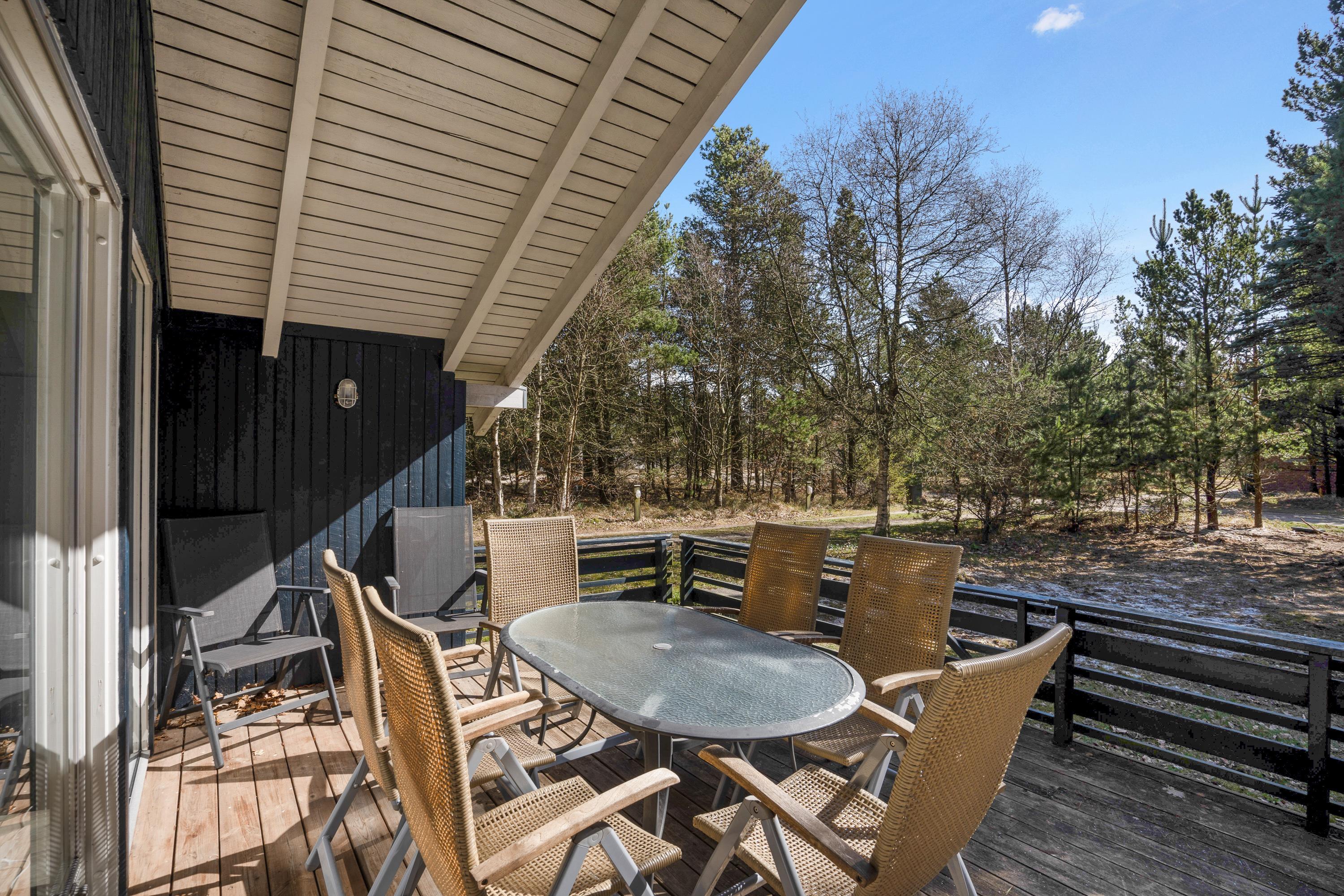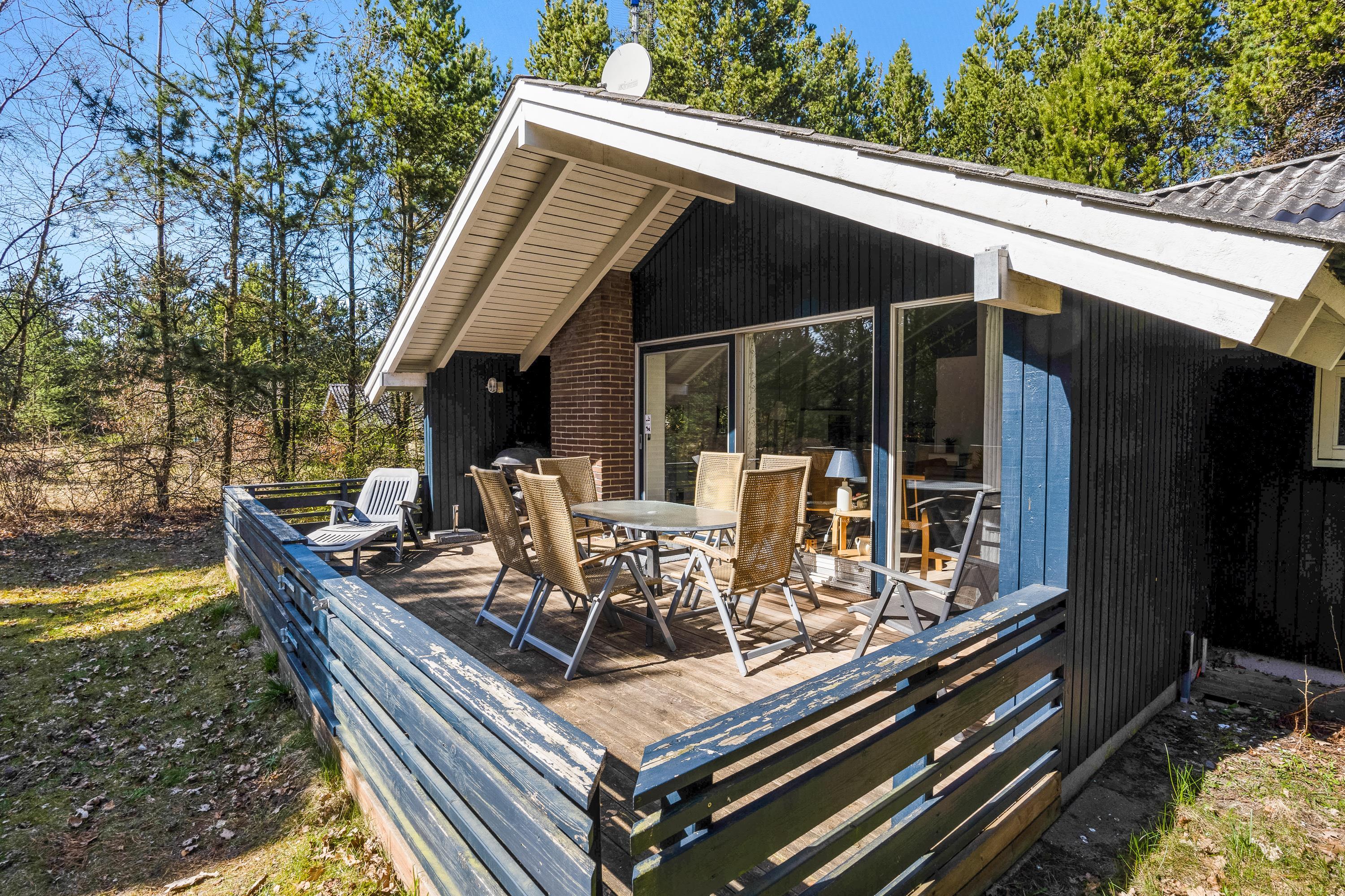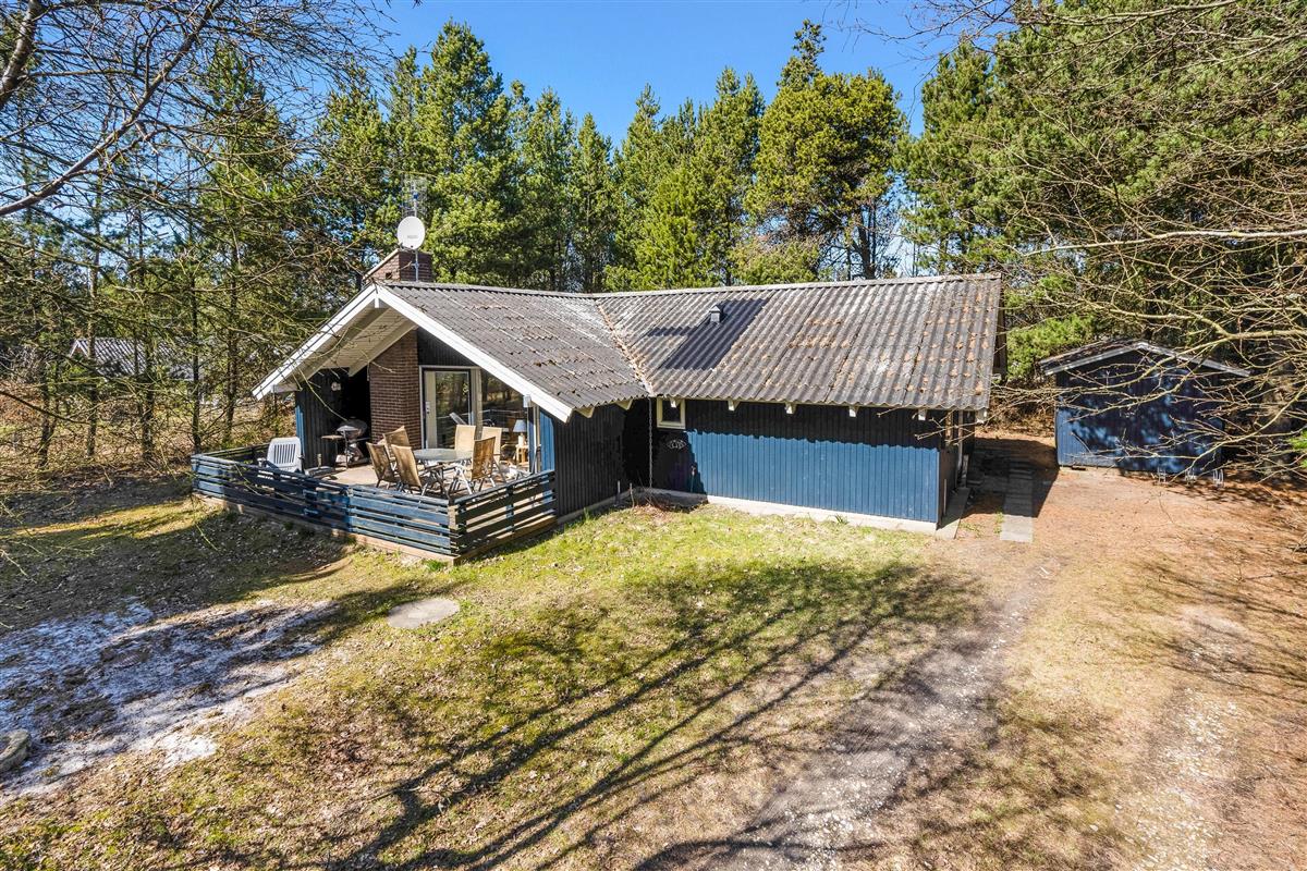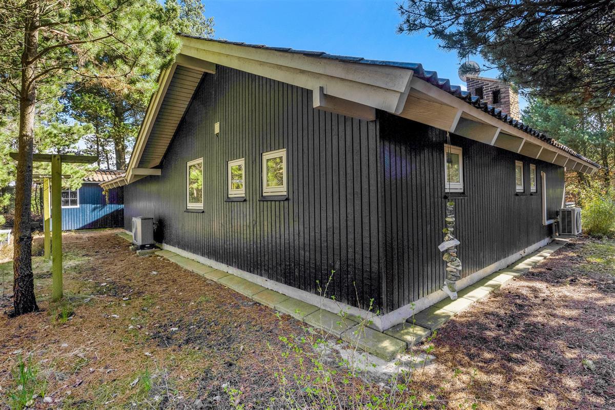 The well-designed layout includes three bedrooms, providing sleeping space for the whole family with one double bed, three single beds, and a bunk bed. The bathroom, complete with shower enclosure and washing machine, is opposite the house's own sauna - perfect for relaxing after a long walk in the nearby Blåbjerg Klitplantage nature reserve.