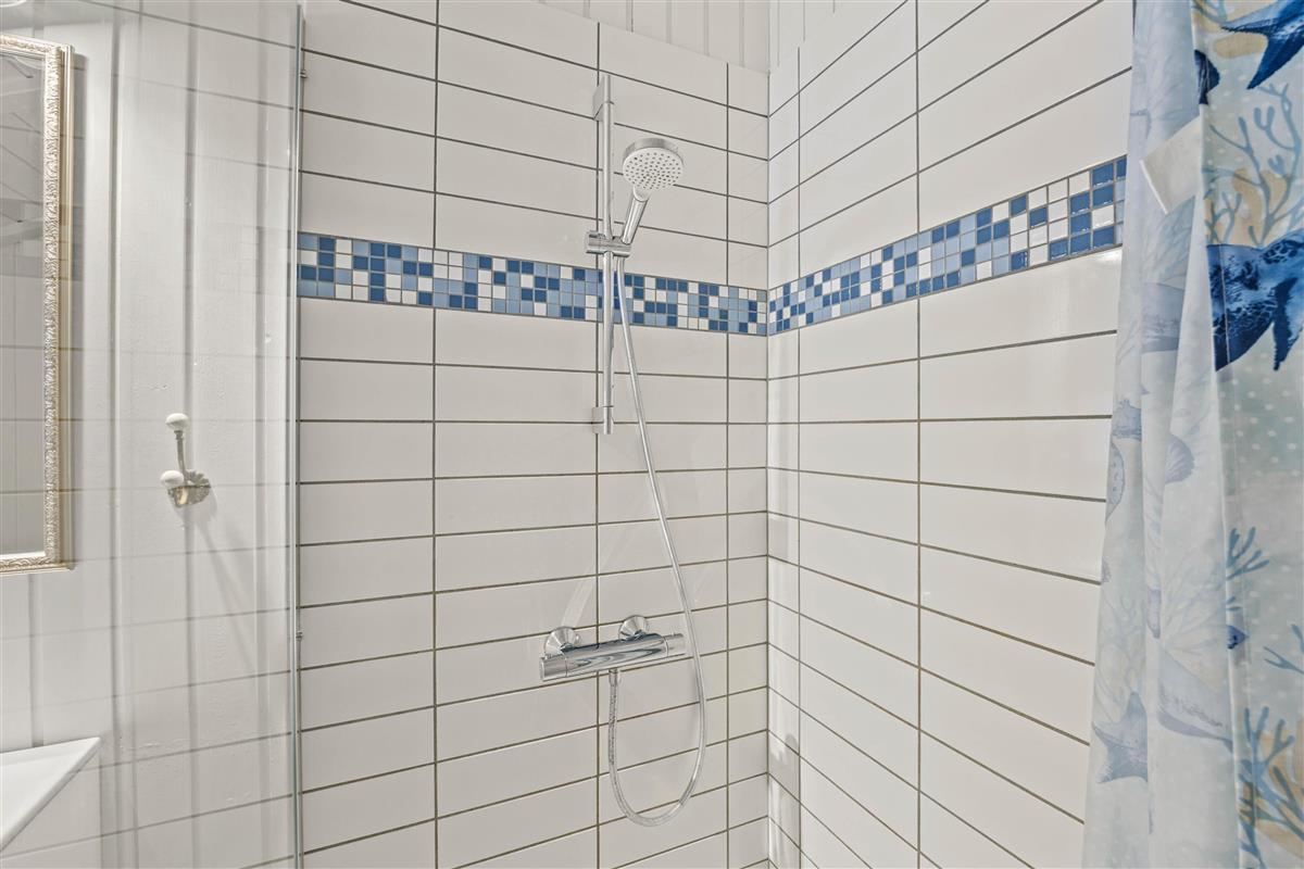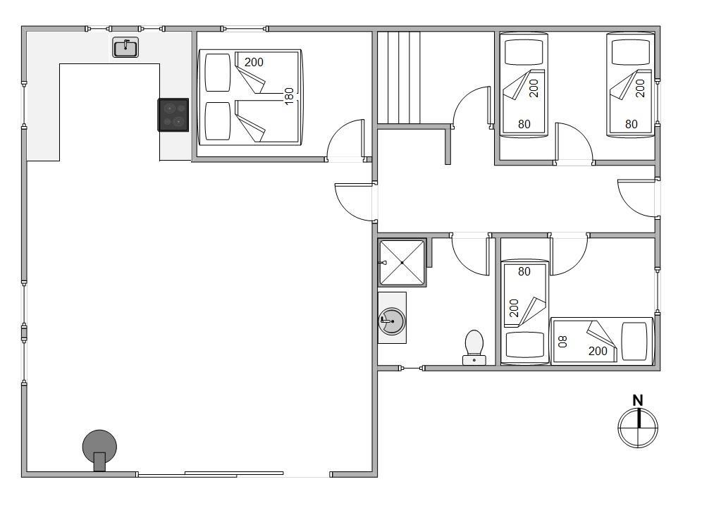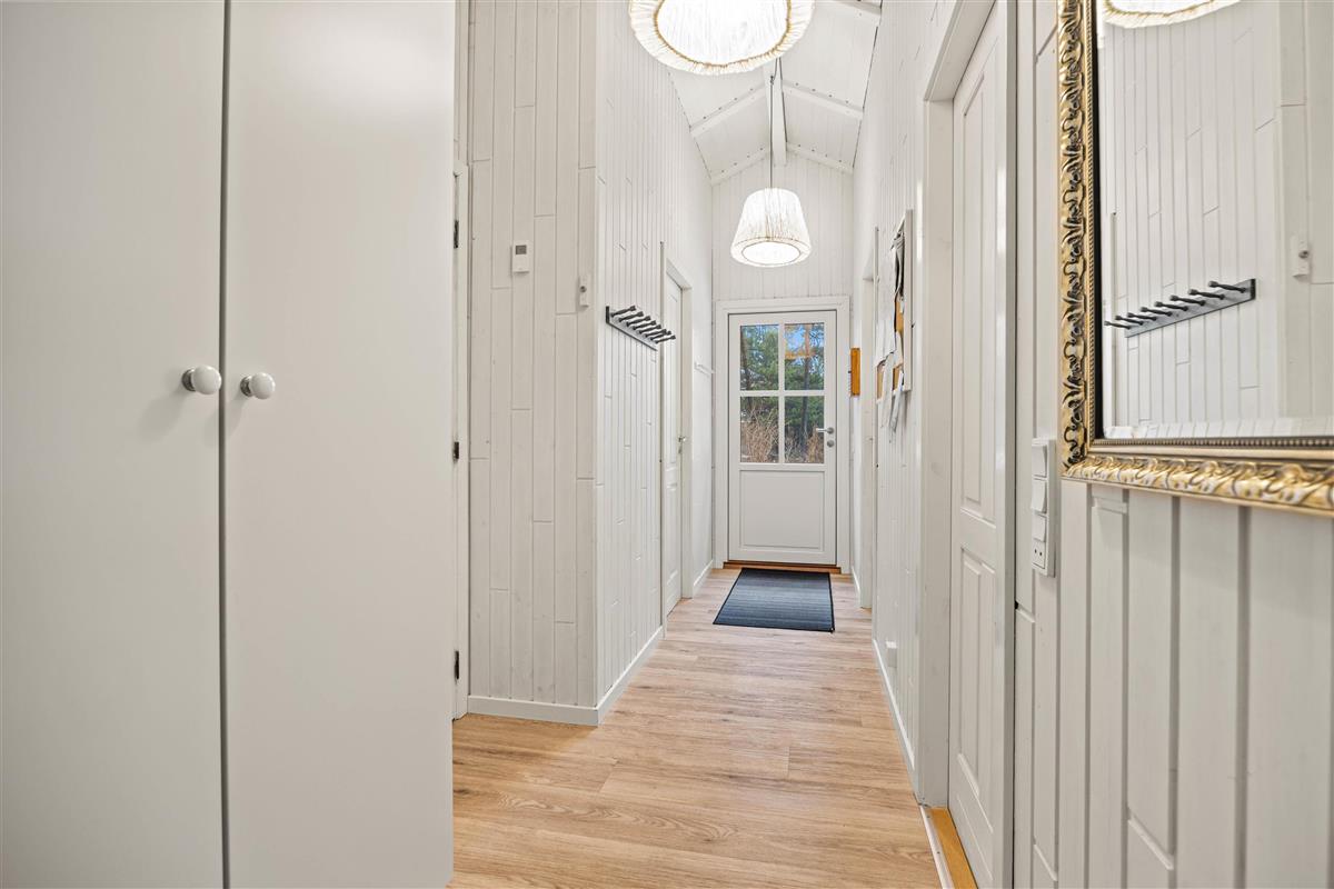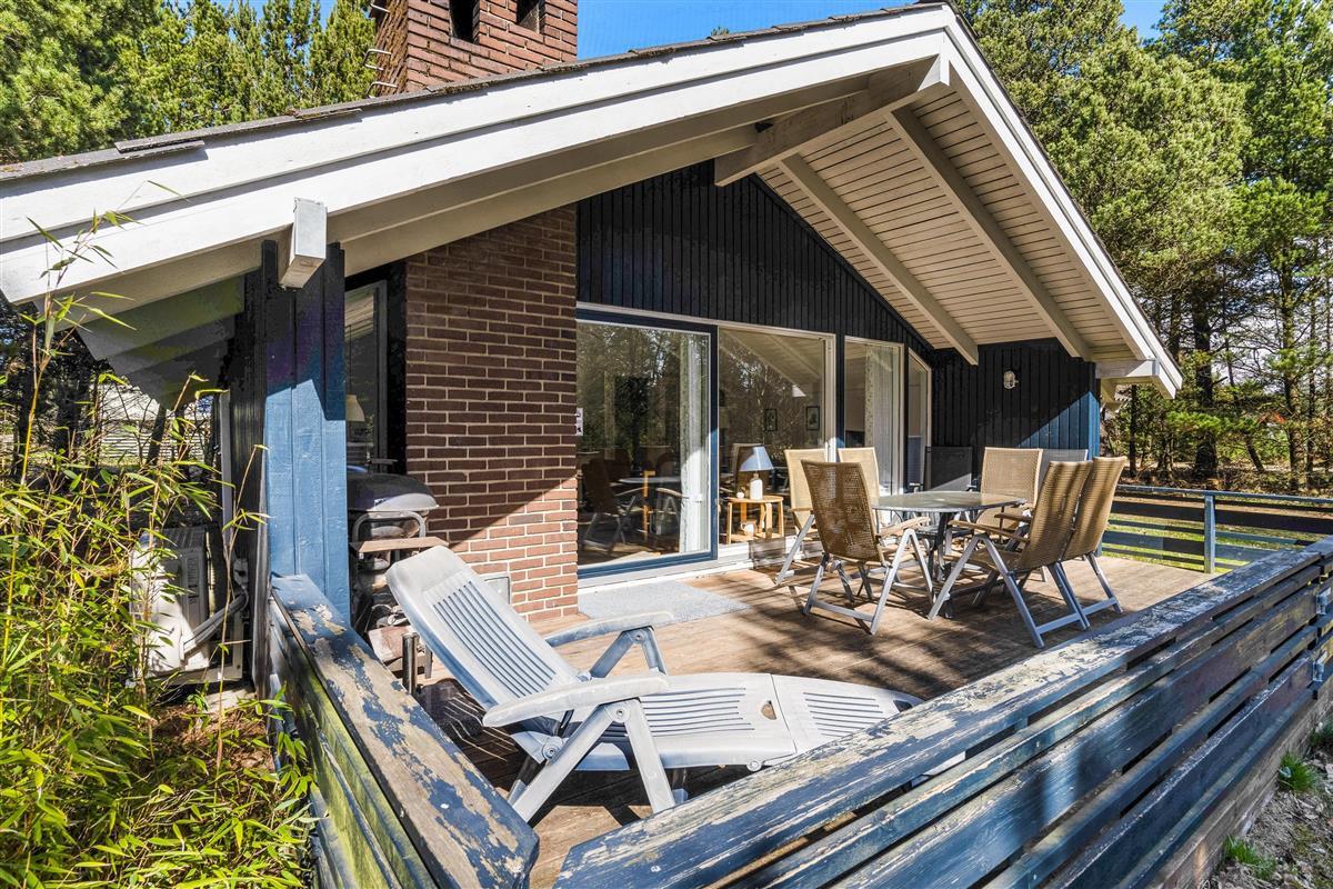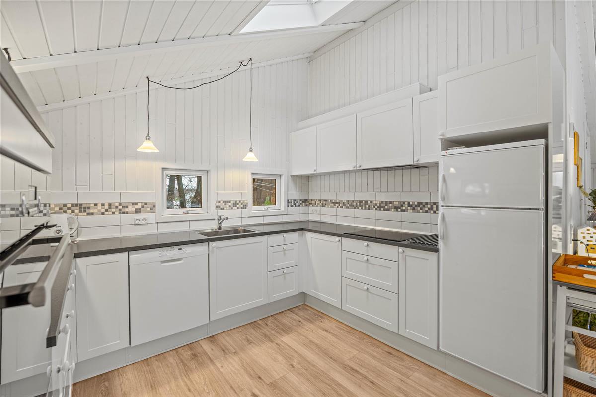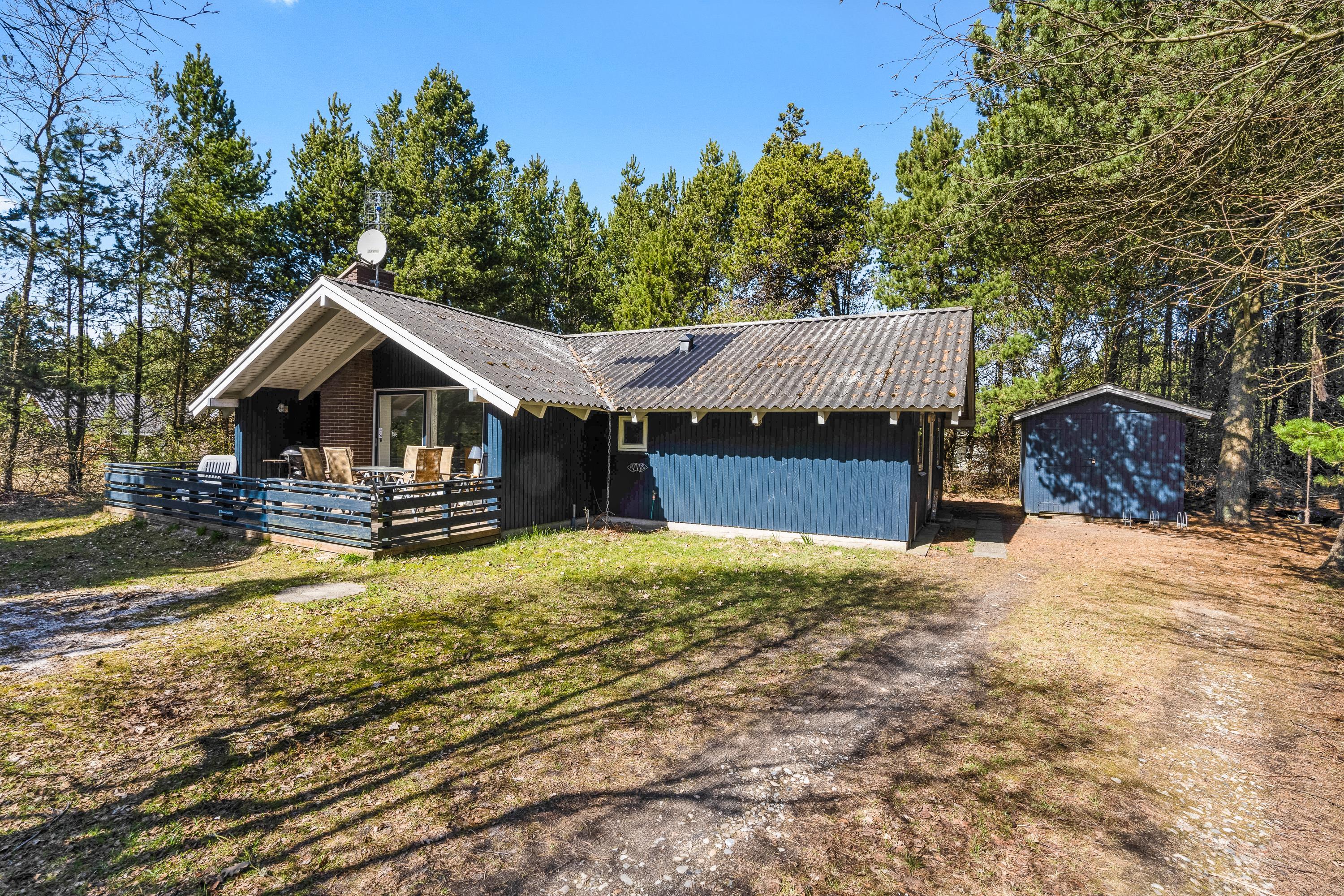 The well-designed layout includes three bedrooms, providing sleeping space for the whole family with one double bed, three single beds, and a bunk bed. The bathroom, complete with shower enclosure and washing machine, is opposite the house's own sauna - perfect for relaxing after a long walk in the nearby Blåbjerg Klitplantage nature reserve.