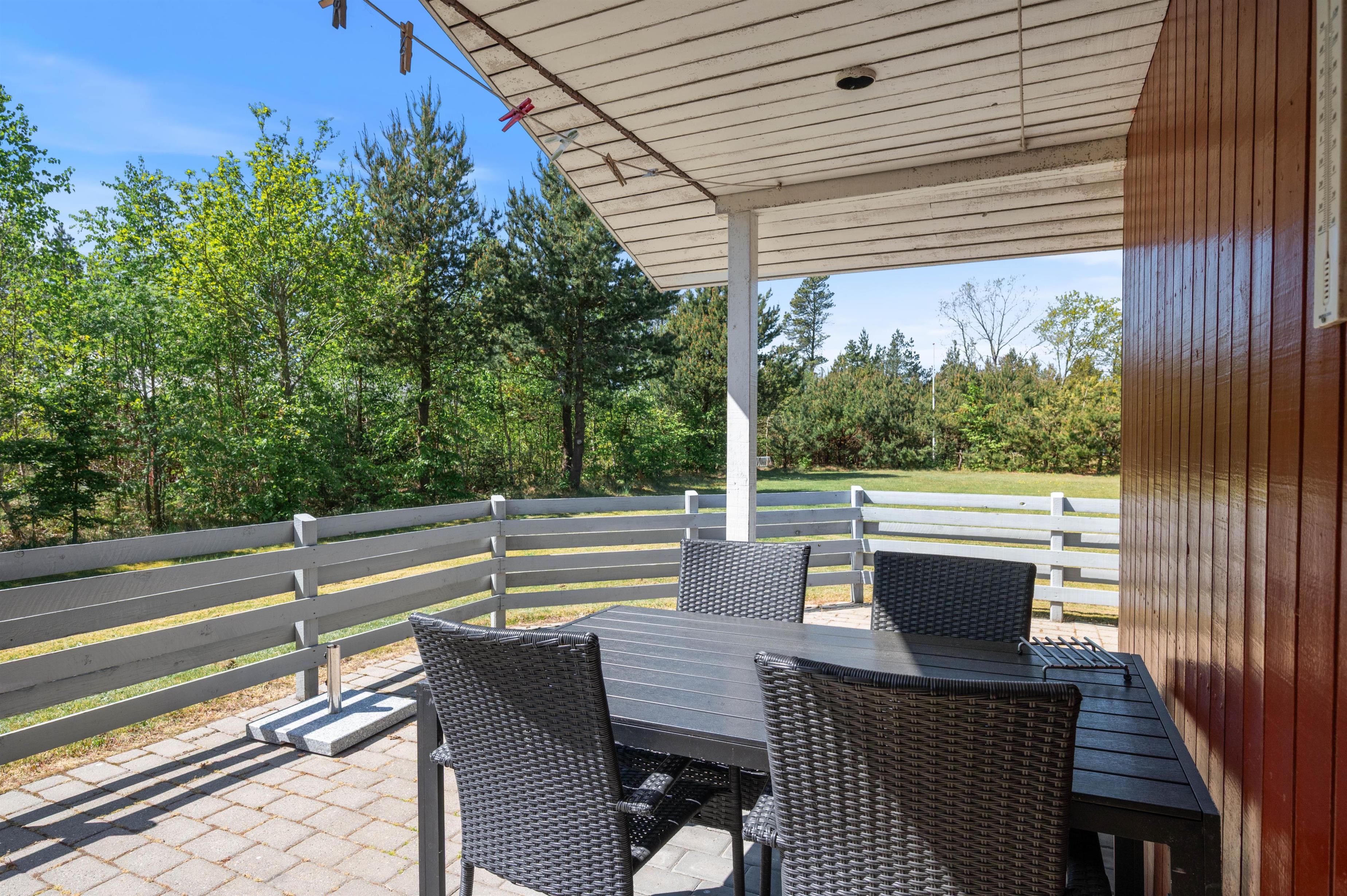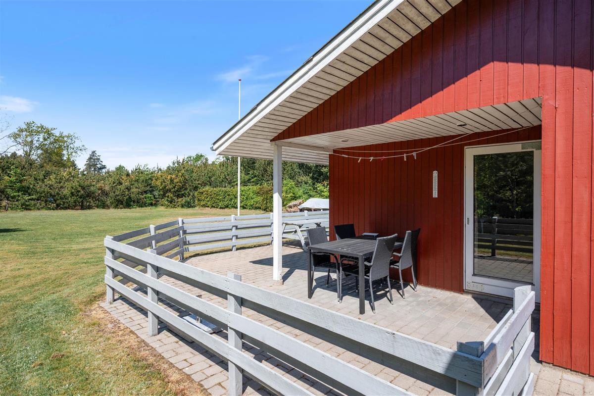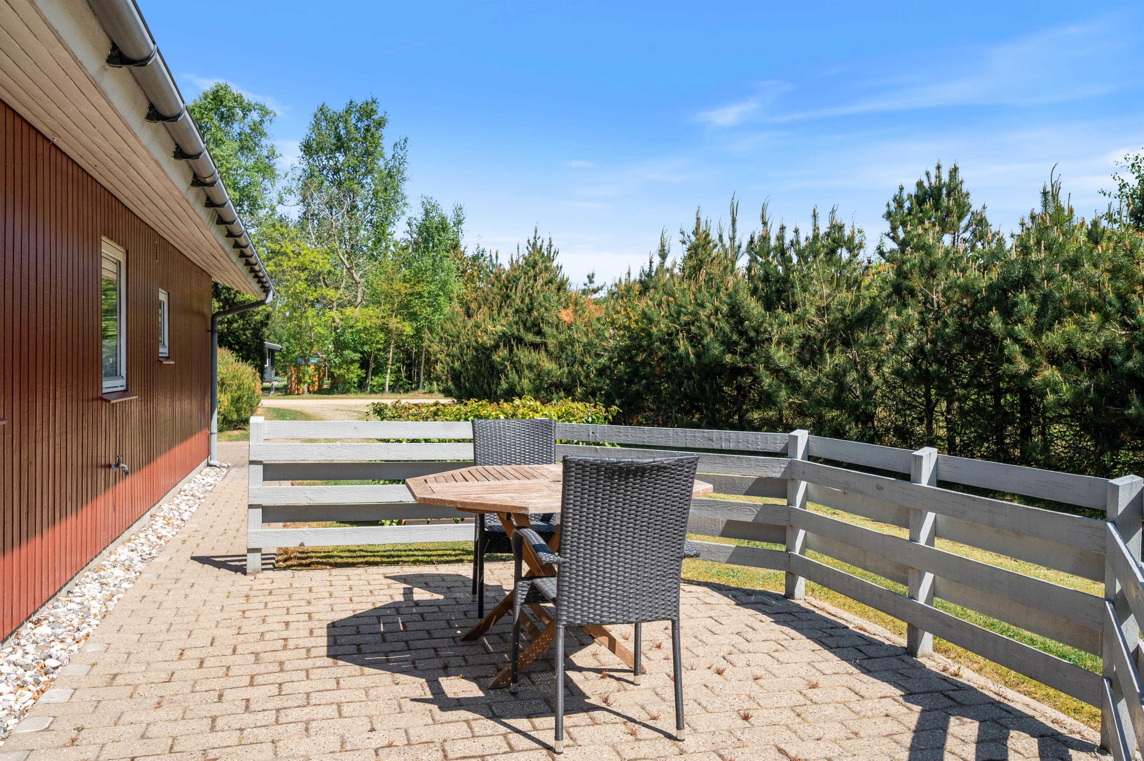 The holiday home sits on a beautiful 1,720-square-metre natural plot surrounded by trees and bushes. This provides pleasant shelter from the wind and protection from prying eyes, allowing you to sunbathe and enjoy the grounds in privacy. Multiple terraces ensure you can find sun or shade throughout the day.