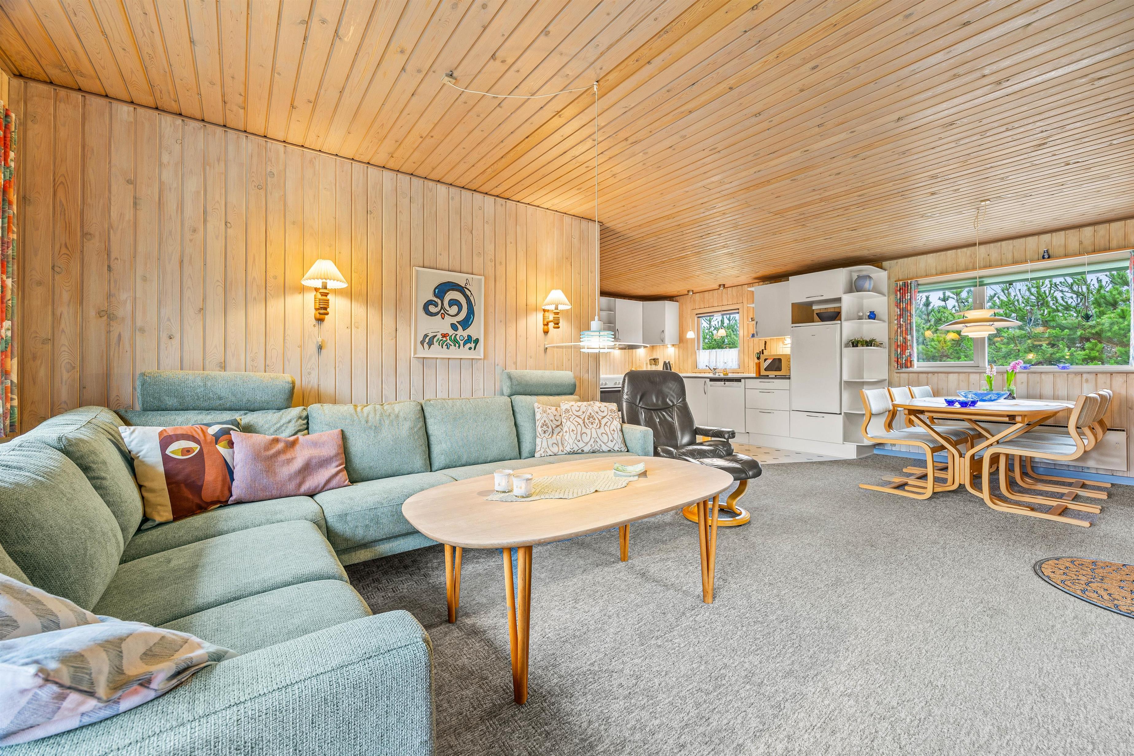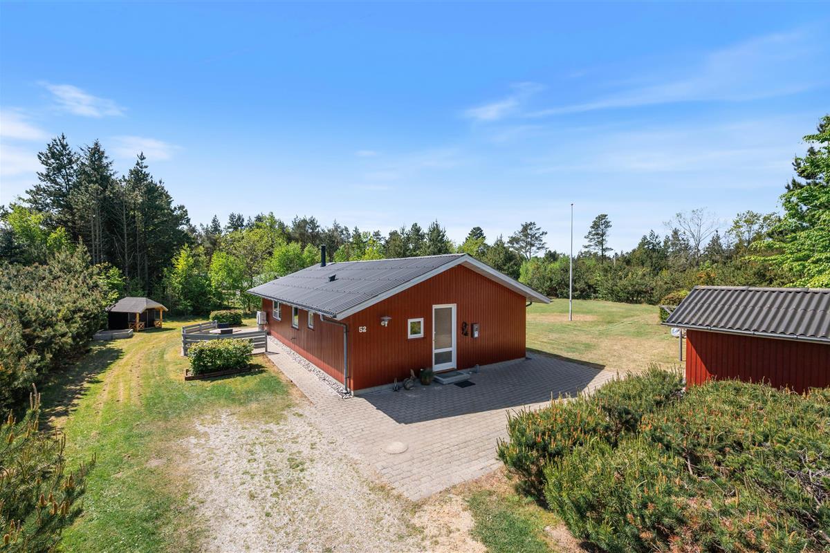 This charming holiday home is situated on a beautiful plot surrounded by trees and bushes. Located at Hedevang 52, this welcoming holiday home is bright and comfortably furnished. It features a wonderful living space perfect for spending holiday time together. The bathroom even provides direct access to the holiday home's private sauna.