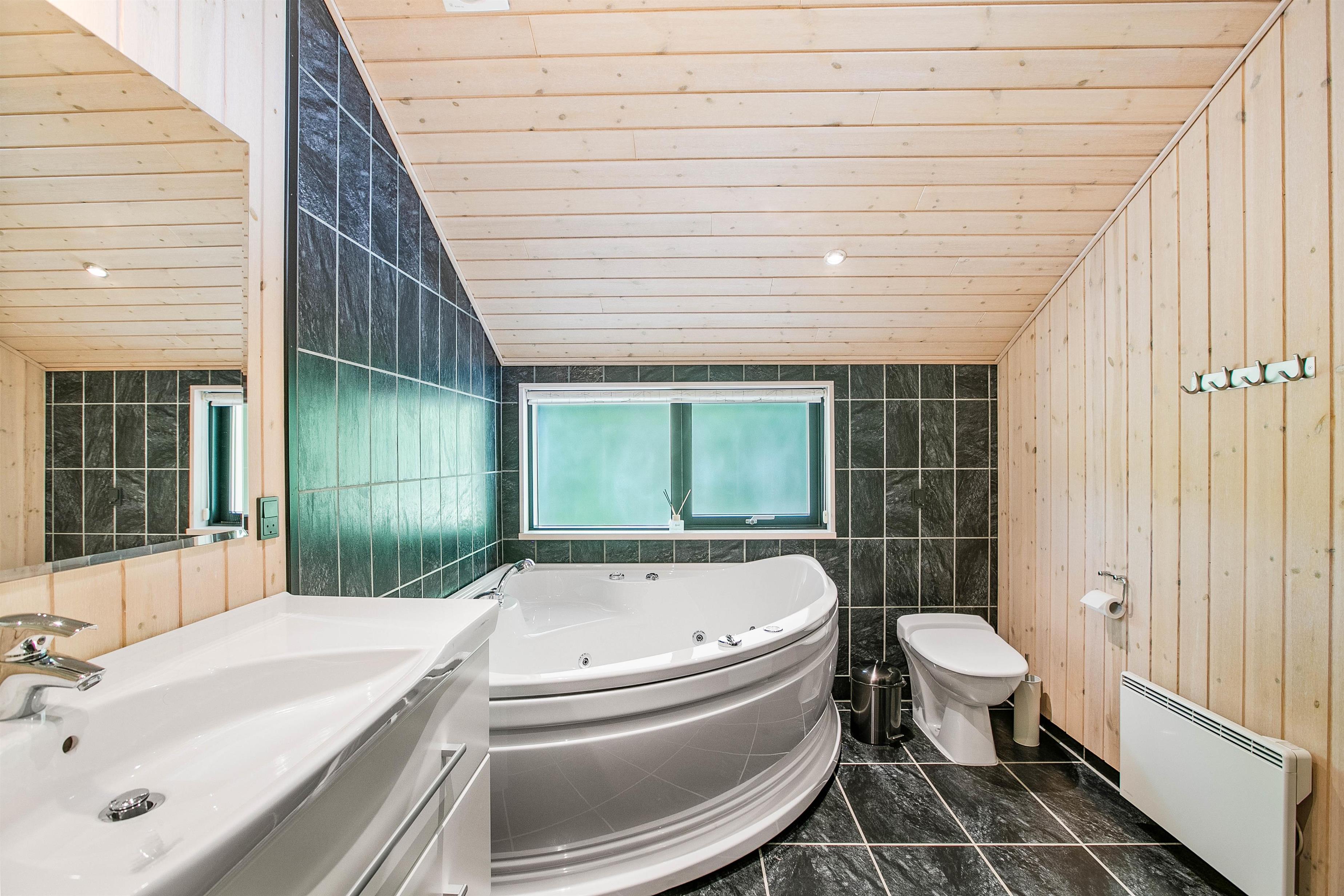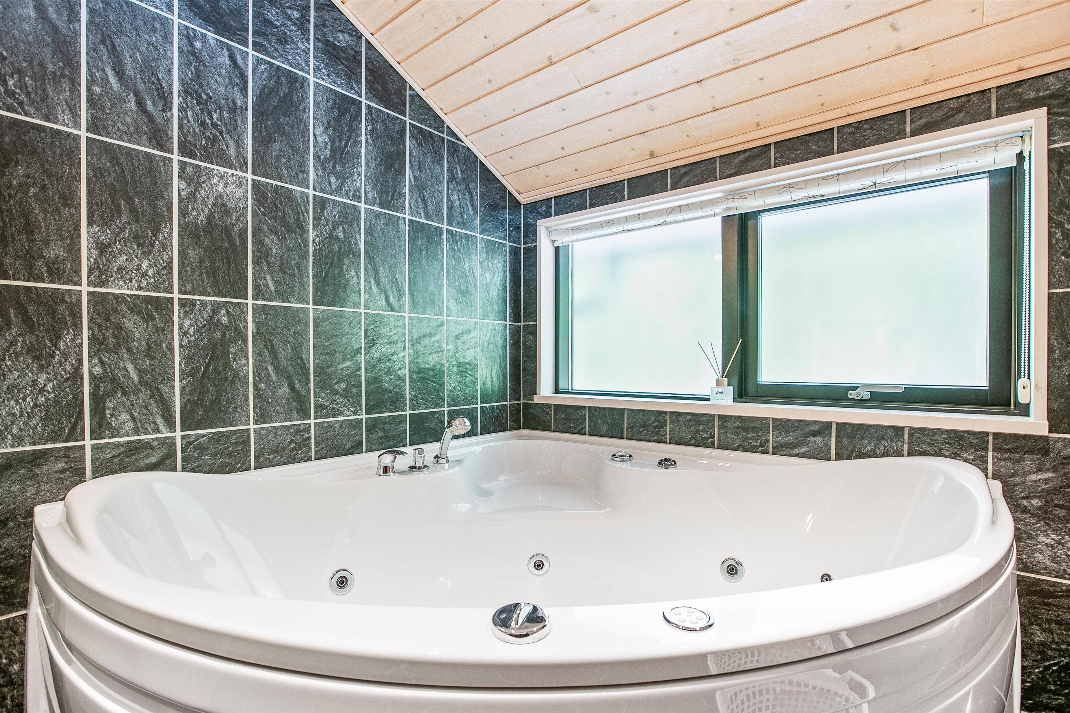 The holiday home has 3 bedrooms offering peaceful retreats. There are 2 double beds and 2 single beds in total, comfortably accommodating up to 6 people. The bathroom features modern amenities, including underfloor heating and a whirlpool for relaxing moments. Additionally, there's a sauna available, perfect for unwinding after a day full of activities.