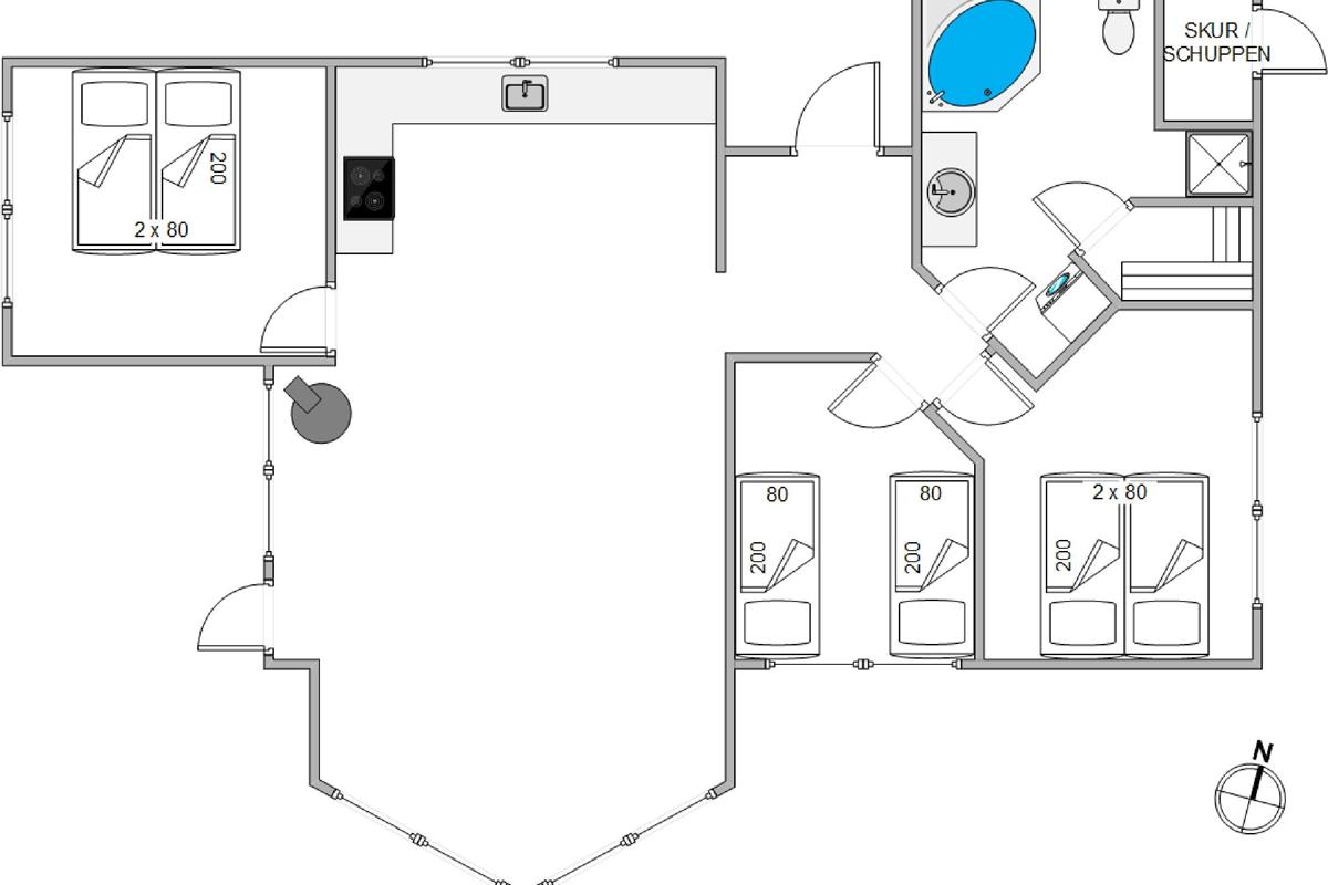 The area around the holiday home in Houstrup provides an ideal setting for a relaxing and varied holiday. The beach is just 2.2 miles (3.5 km) from the holiday home and easily accessible. The nearby North Sea offers ideal conditions for water sports such as windsurfing or kitesurfing.