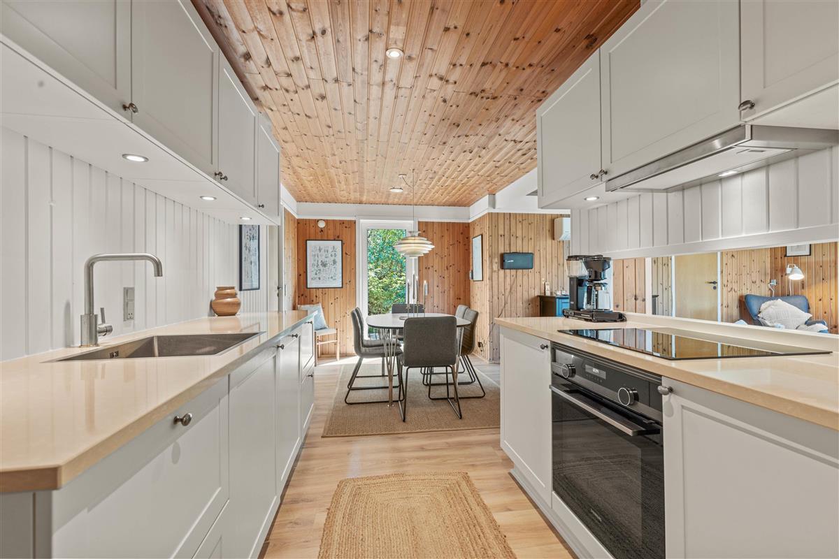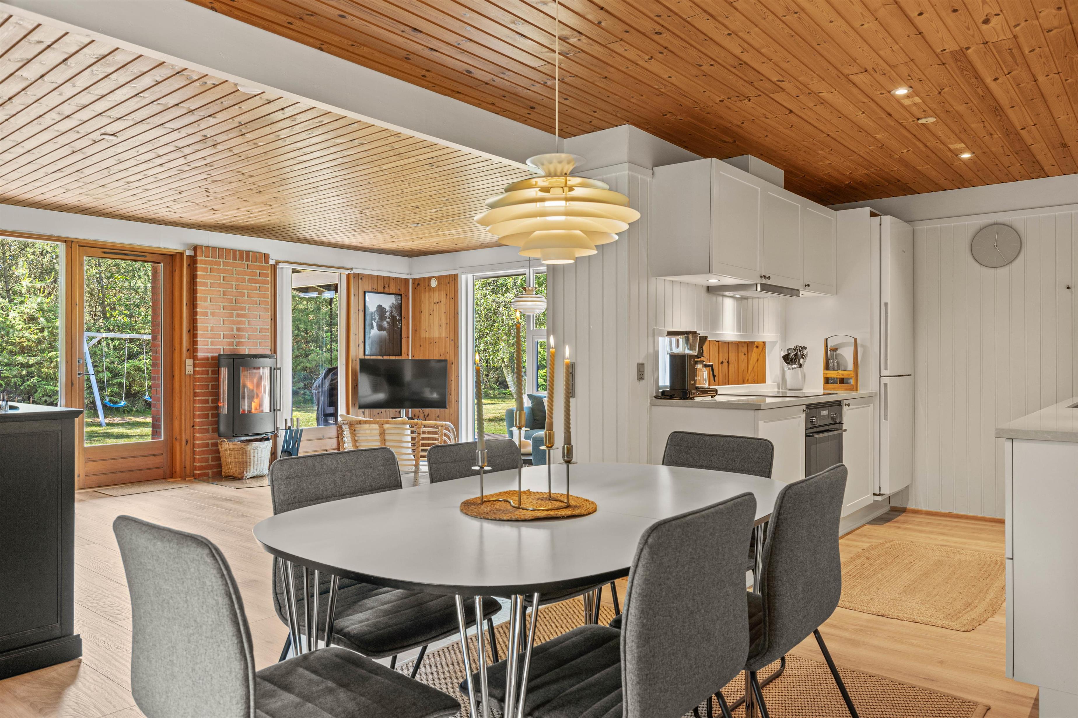 Hedevang 82 is designed for comfortable holidaying. You'll find both a washing machine and dishwasher. The kitchen, updated in 2020, contains everything needed for preparing delicious meals. It's open-plan to the cosy living and dining area with its large comfortable leather sofa. Two quality armchairs, a corner sofa, and a reading chair with lamp (perfect for enjoying a good book while overlooking the large garden) complement the free WiFi and large flat-screen TV with DVD player and Chromecast, emphasising that this is a true holiday retreat.