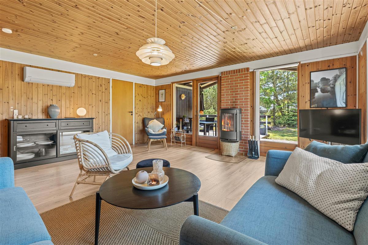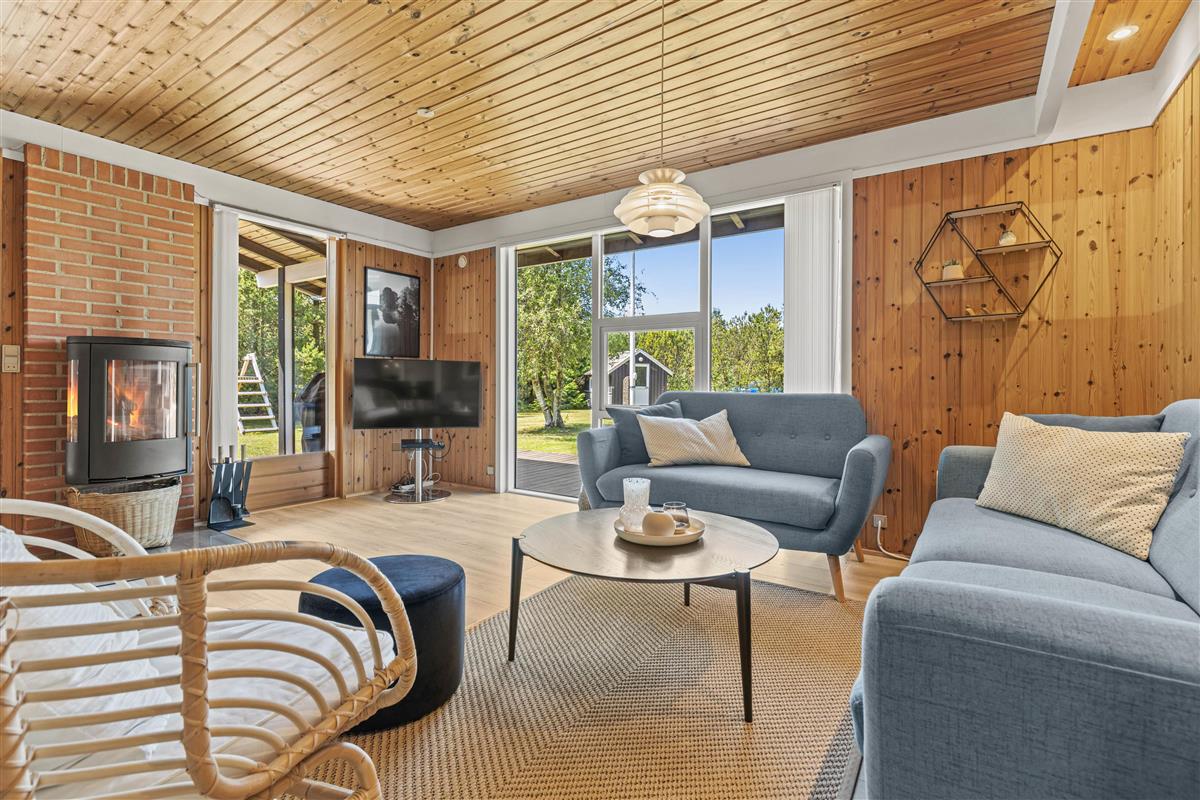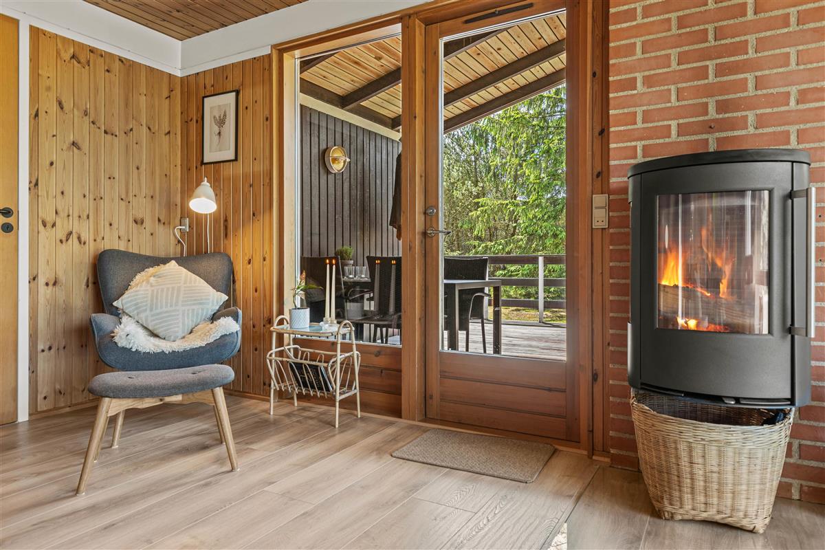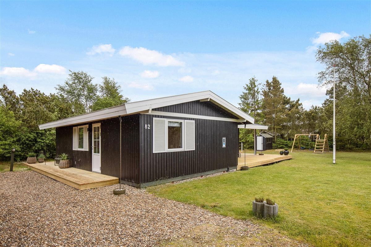 Located at Hedevang 82, next to woodland, this holiday home is the perfect address for nature lovers seeking a beautiful, peaceful spot for their well-deserved break. The holiday home sits on a large natural plot with terraces and plenty of outdoor space. With forest as its backdrop, peace and tranquillity are guaranteed, allowing you to truly relax and unwind. The well-maintained holiday home welcomes you with excellent parking facilities, an attractive entrance area and outdoor lighting.
