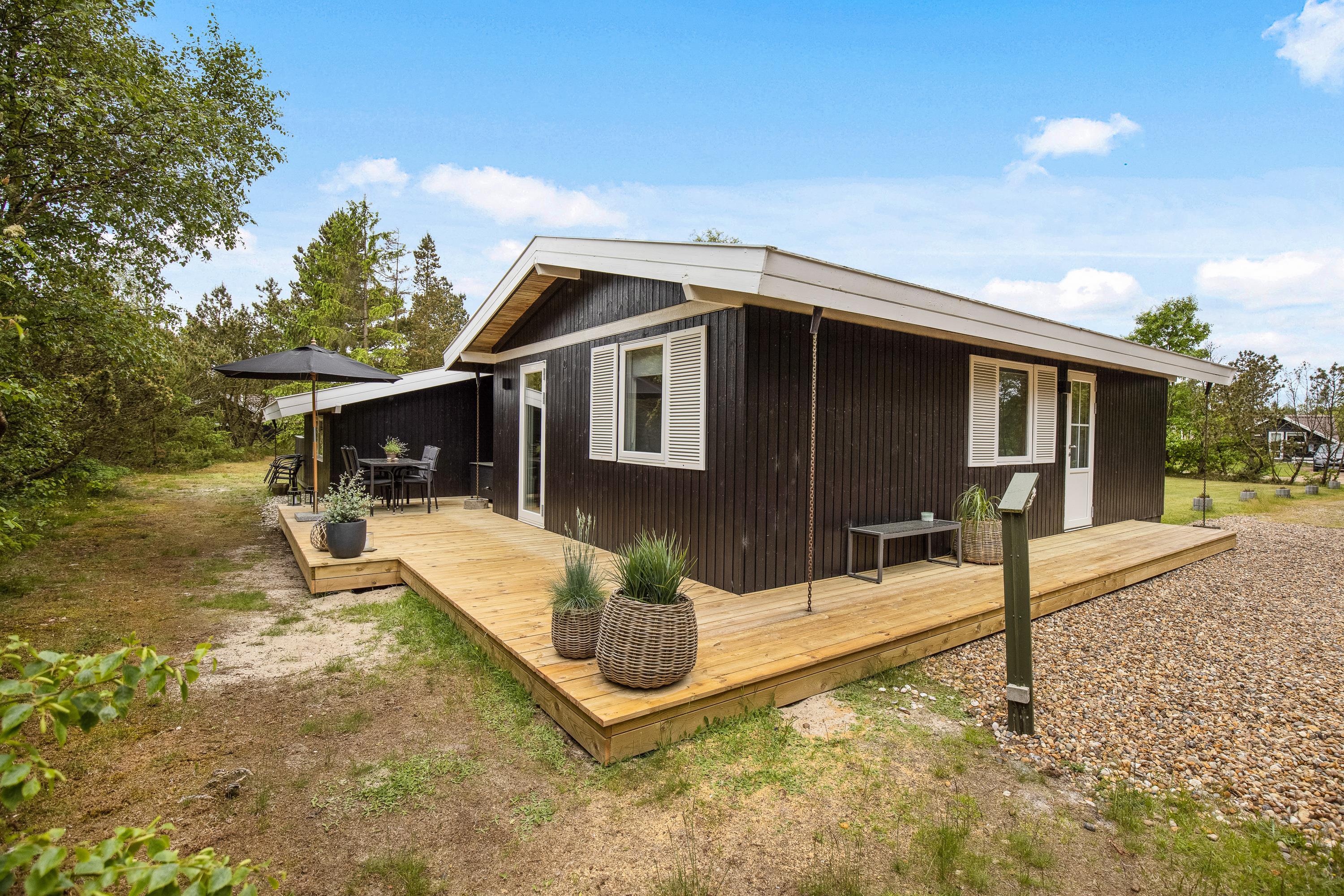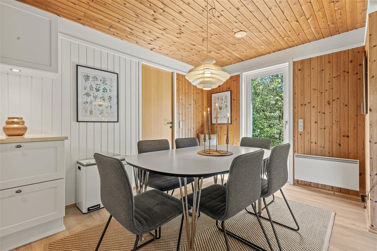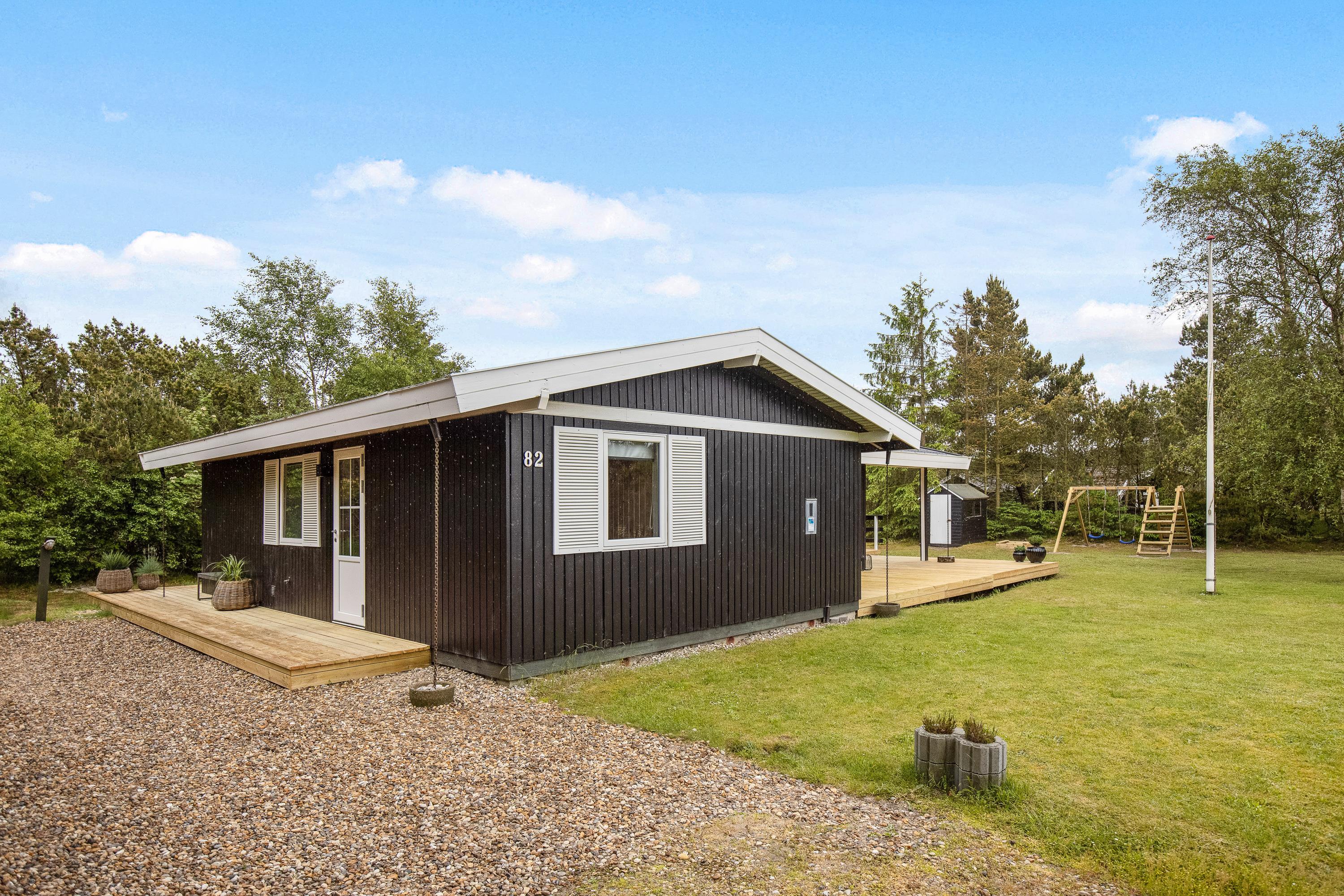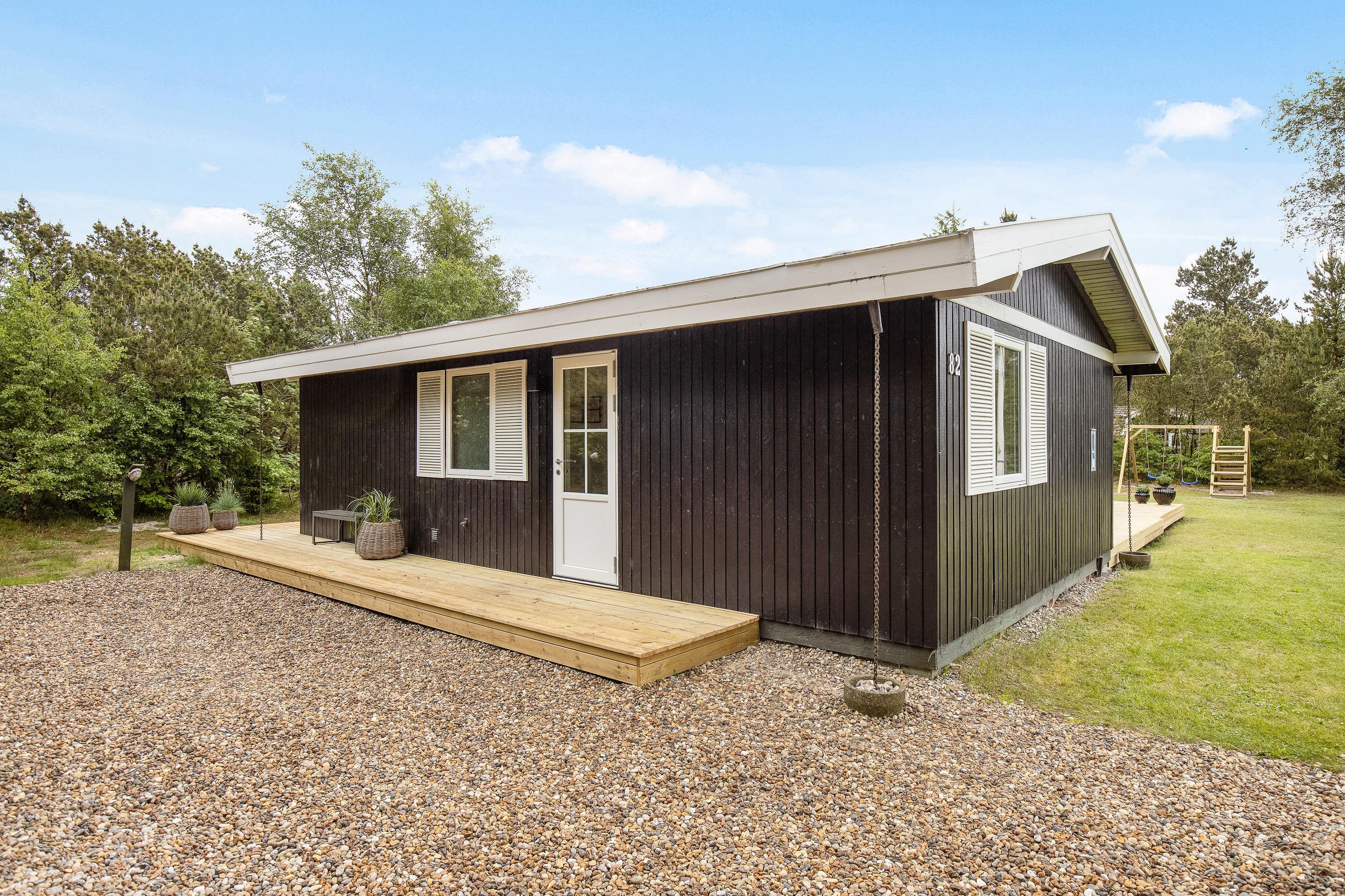 Located at Hedevang 82, next to woodland, this holiday home is the perfect address for nature lovers seeking a beautiful, peaceful spot for their well-deserved break. The holiday home sits on a large natural plot with terraces and plenty of outdoor space. With forest as its backdrop, peace and tranquillity are guaranteed, allowing you to truly relax and unwind. The well-maintained holiday home welcomes you with excellent parking facilities, an attractive entrance area and outdoor lighting.