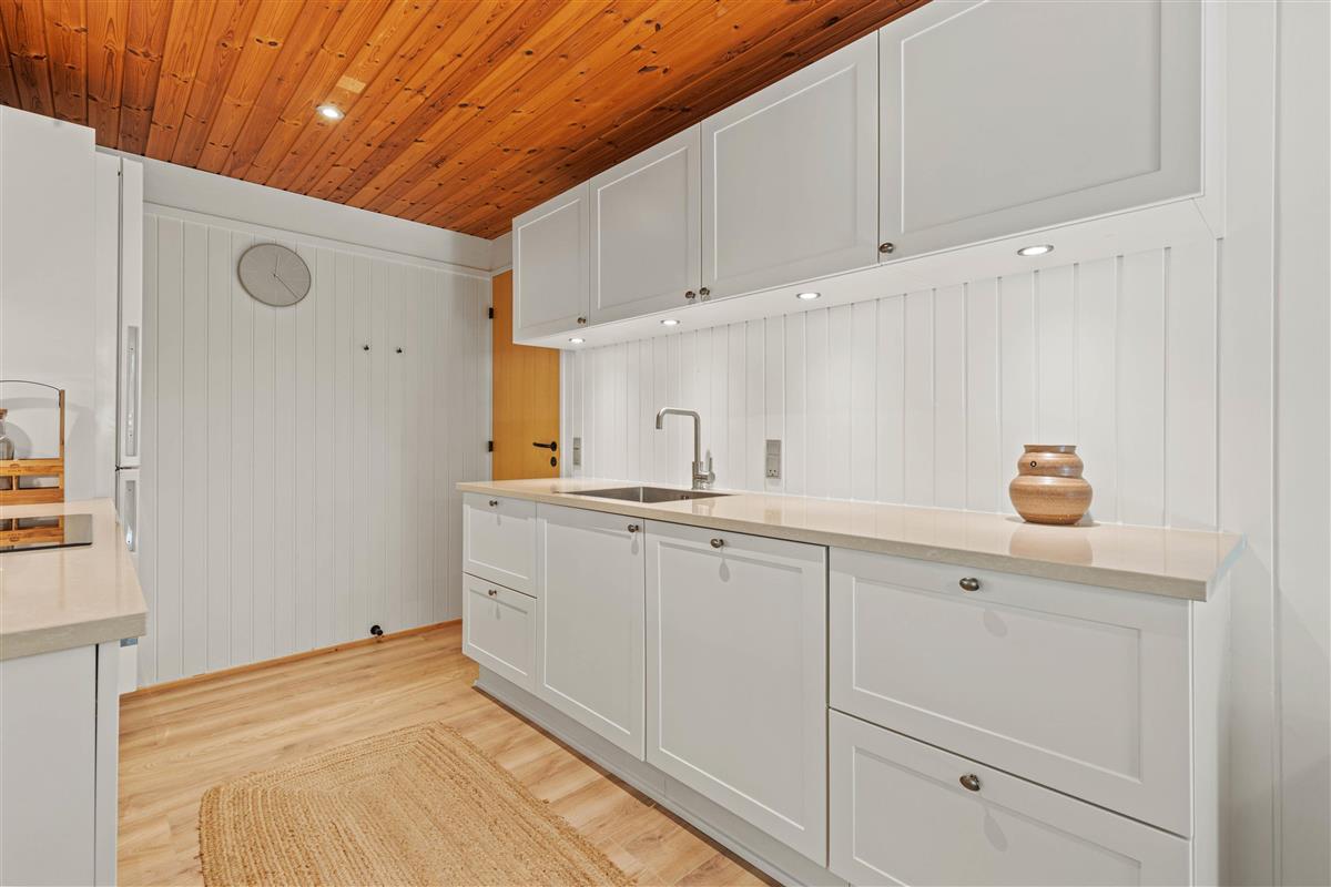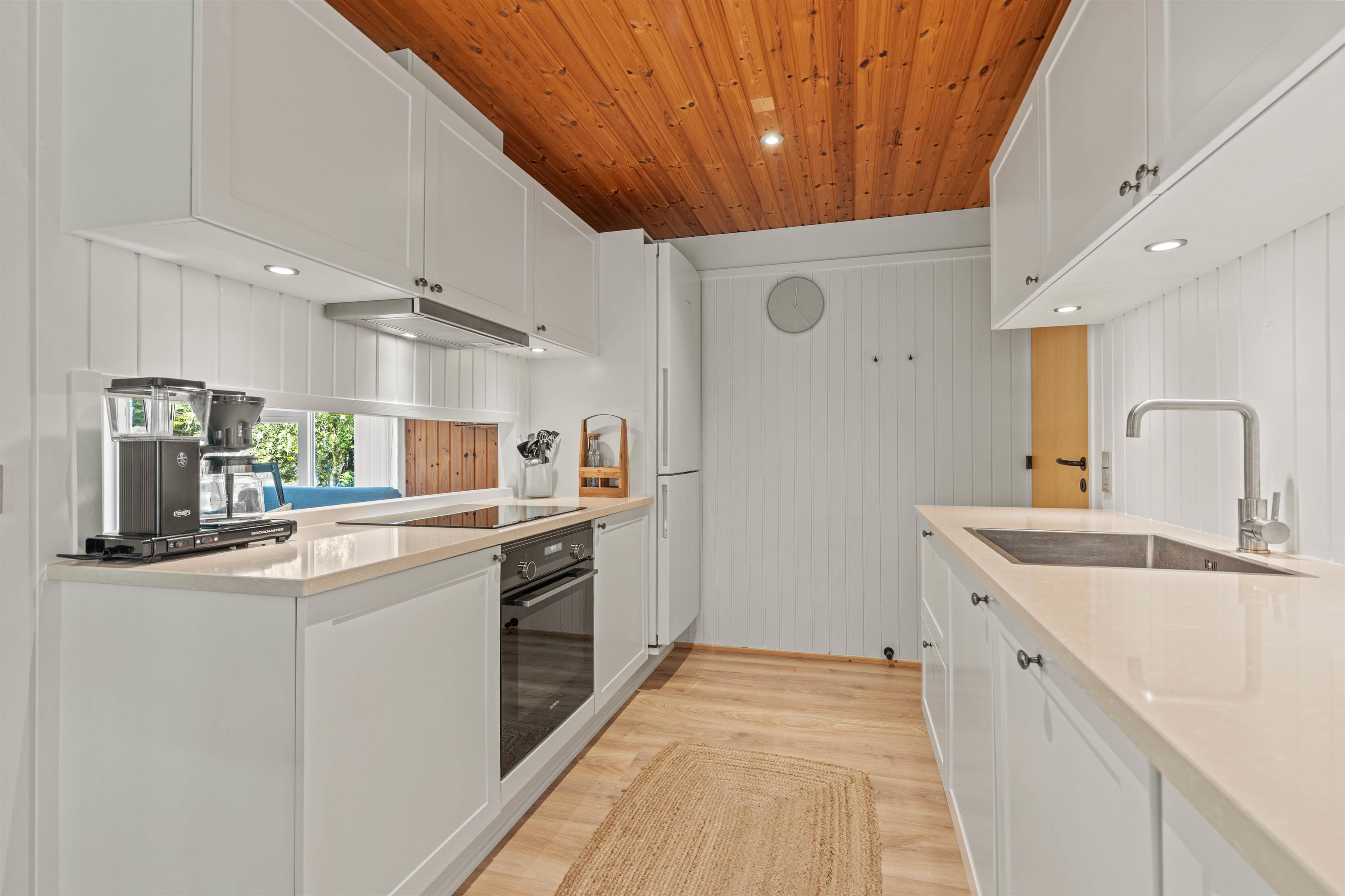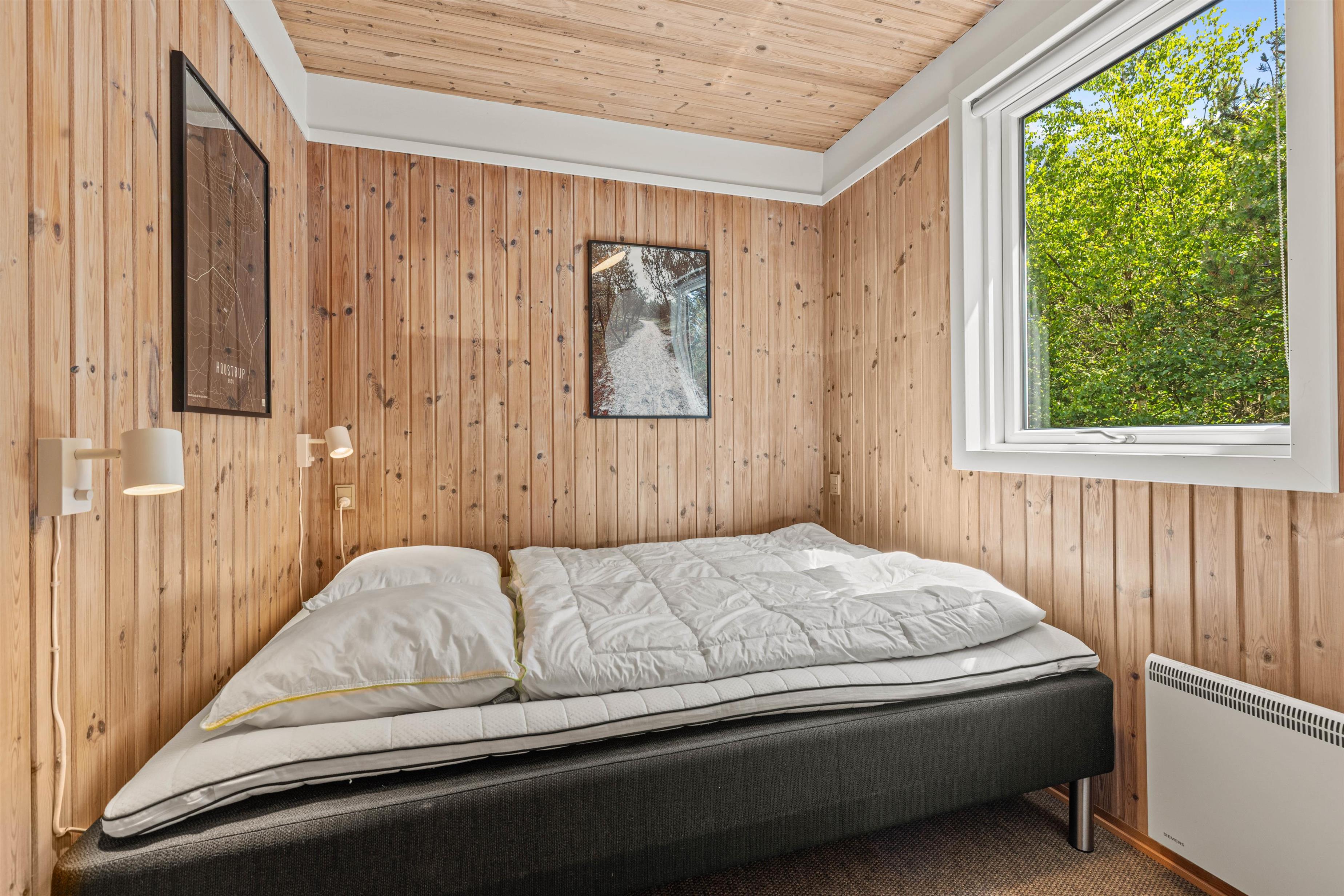 Welcome to a beautiful holiday home with authentic charm! The holiday home is cosily furnished with comfortable furniture, quality beds and delightful wood panelling on walls and ceilings. There's space for extended family or holidays with friends, with sleeping arrangements for 8 people across 4 bedrooms - one single room with bunk beds and three rooms with double beds. One double bedroom features its own terrace access and a large wall-mounted television.