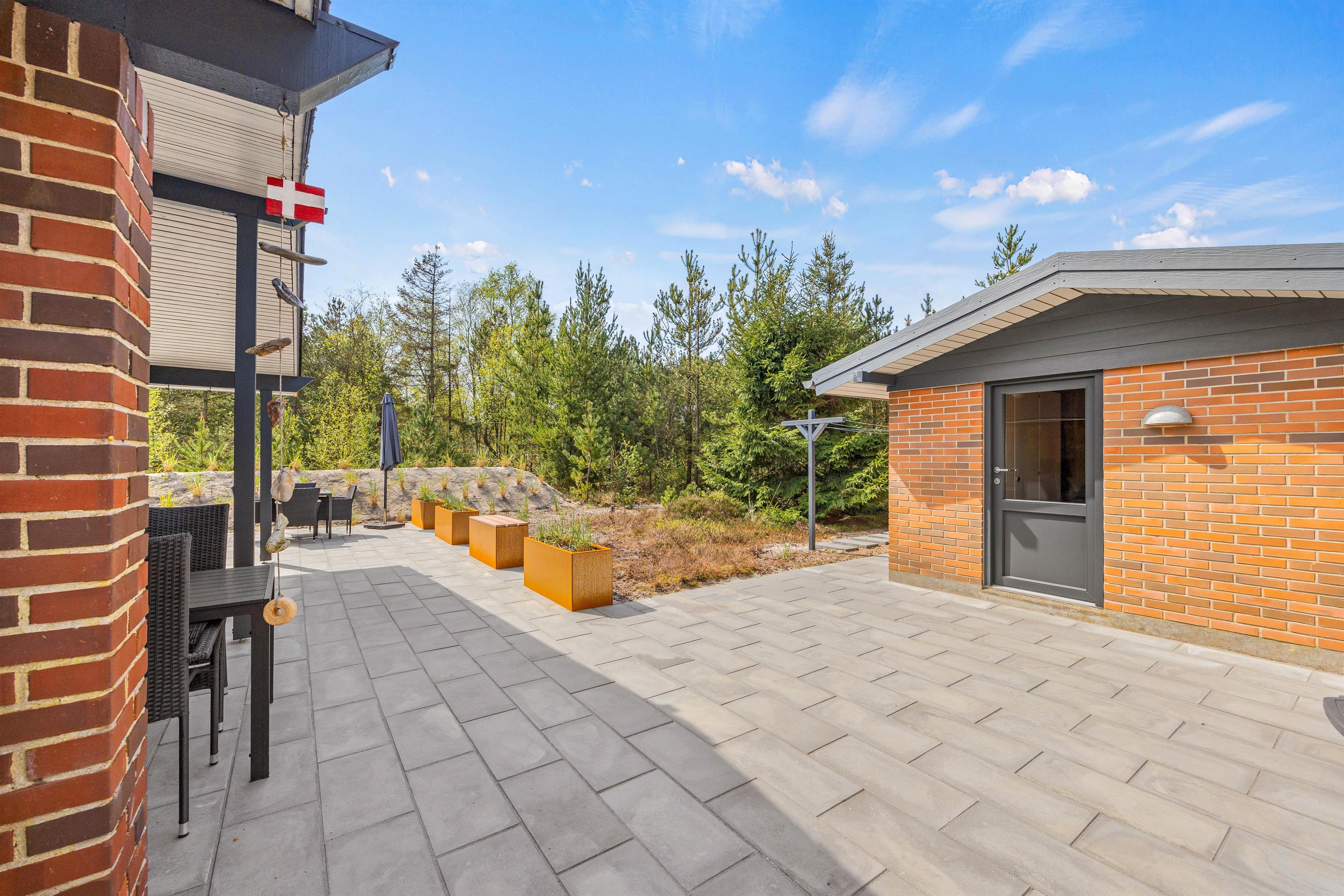 The outdoor area of your holiday home is special thanks to its blend of privacy, tranquillity and natural beauty. Here you can spend unforgettable hours with your loved ones while truly unwinding. Whether lounging on the open terrace in the sunshine, sheltering on the enclosed terrace, or enjoying the green surroundings, the outdoor space offers something for everyone and is perfect for extensive barbecue evenings.