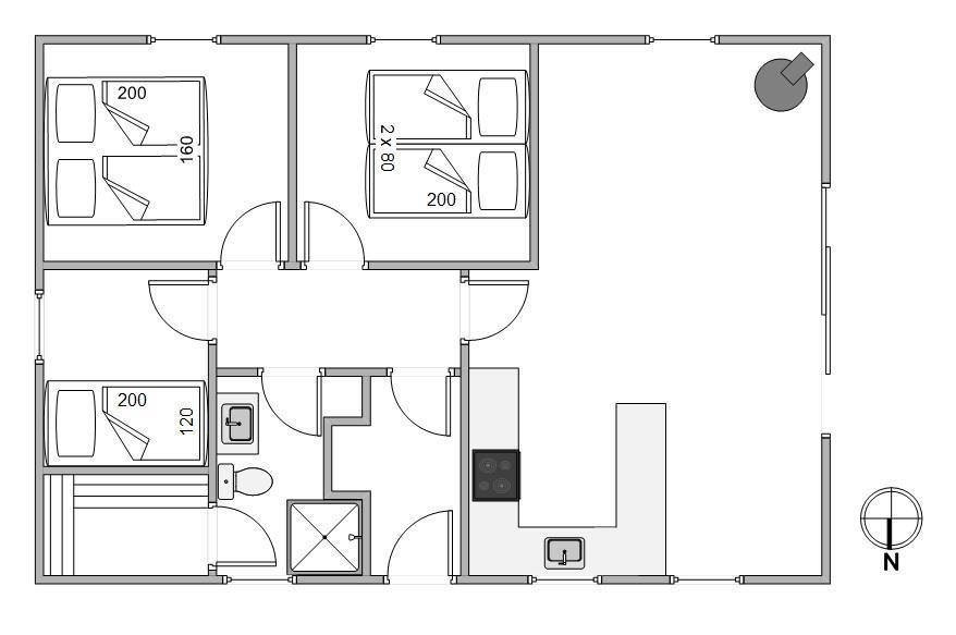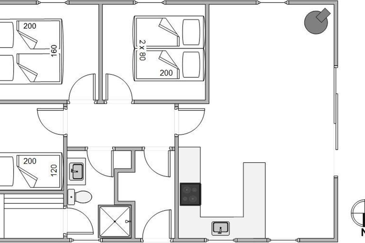 This thoughtfully furnished holiday home in Houstrup features 3 bedrooms - 2 with double beds and one with a single bed (120 x 200 cm). This provides ample space and privacy for the whole family. After your daily activities, you can freshen up your clothes in the washing machine before relaxing on the comfortable sofa in front of the wood-burning stove. The bathroom features luxurious underfloor heating, providing extra comfort during cooler months.
