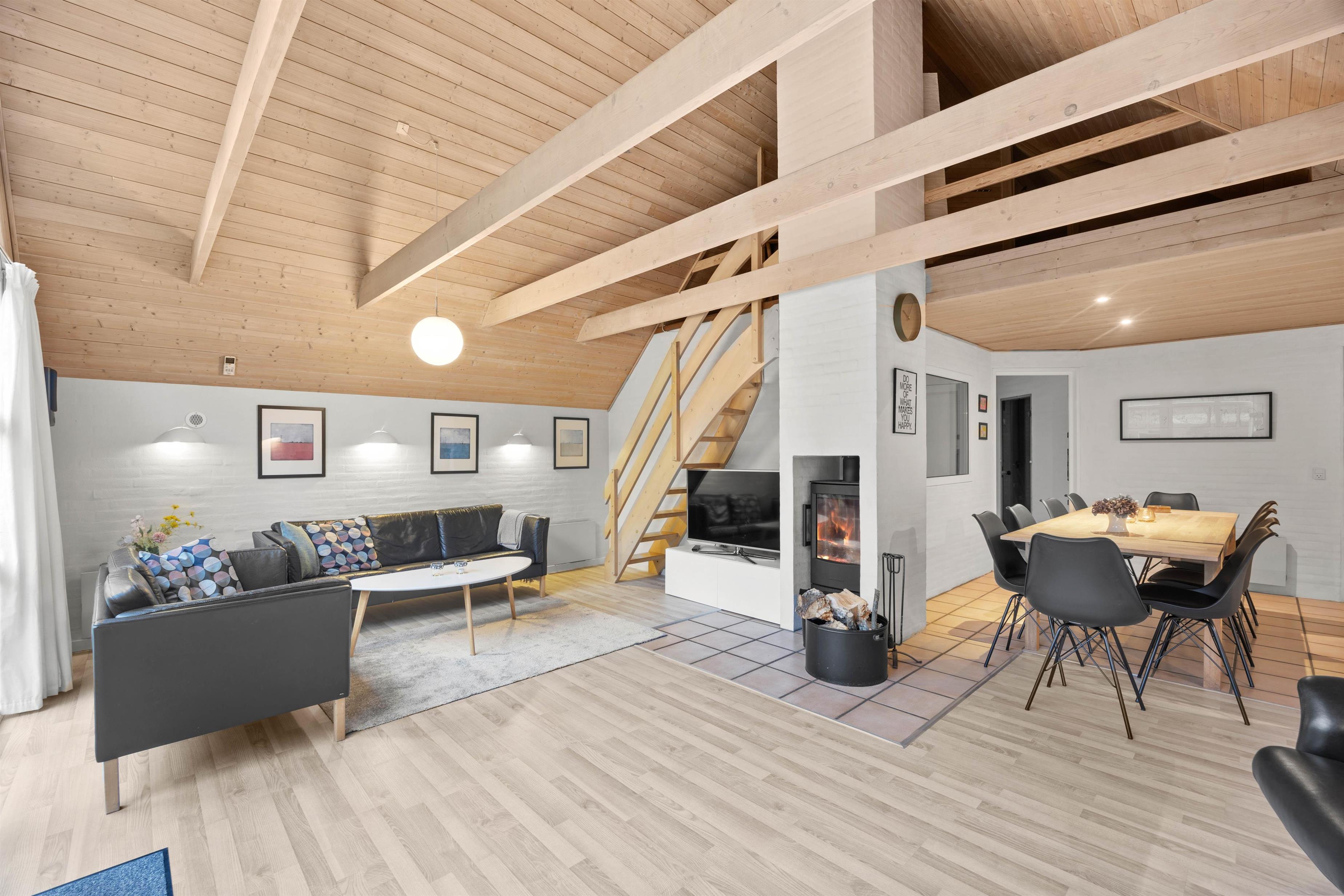 The heart of the holiday home is the spacious living room, where you can curl up in front of the wood-burning stove and truly unwind. It's the perfect spot for cosy evenings with family or fun gatherings with friends.