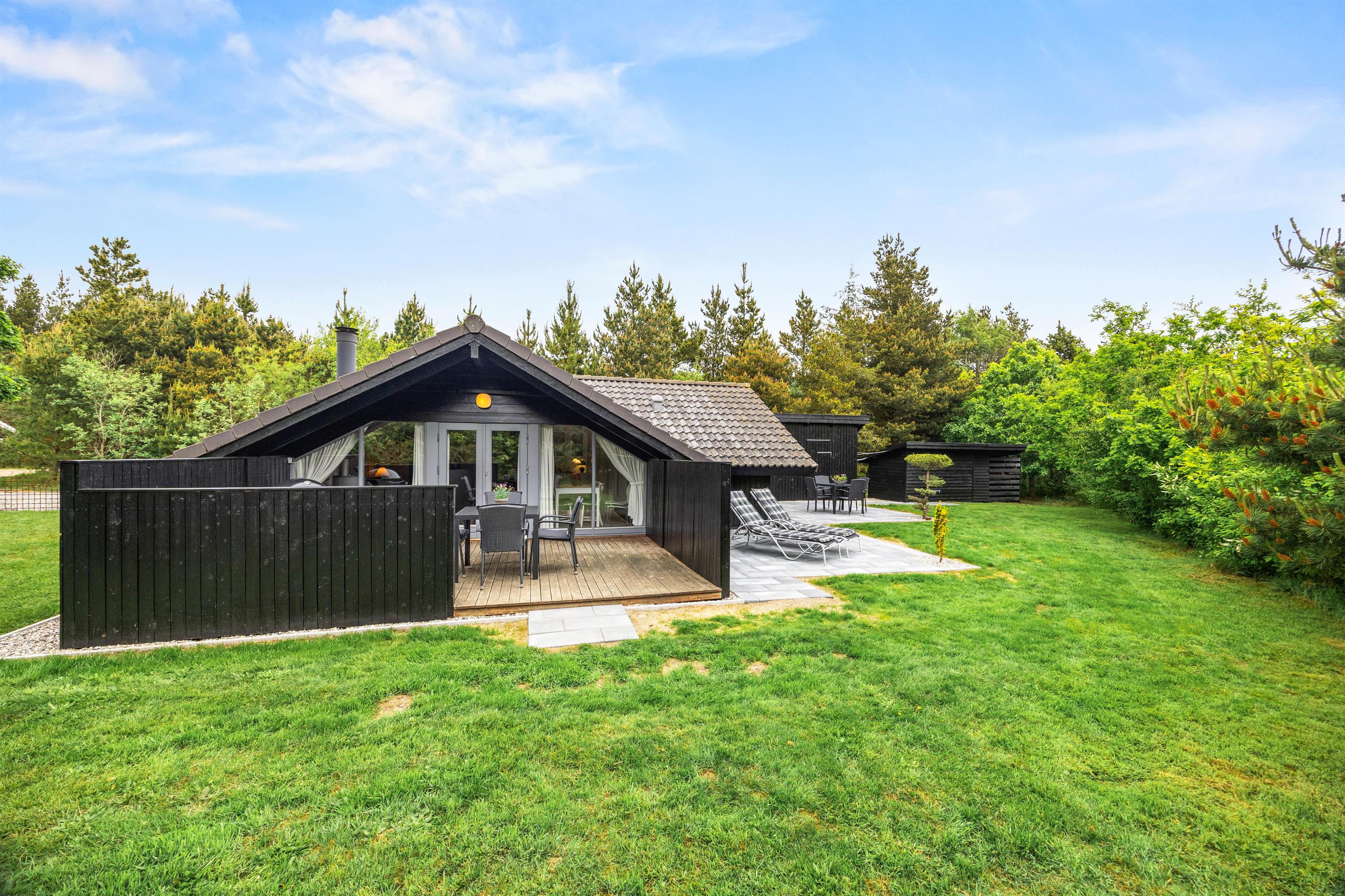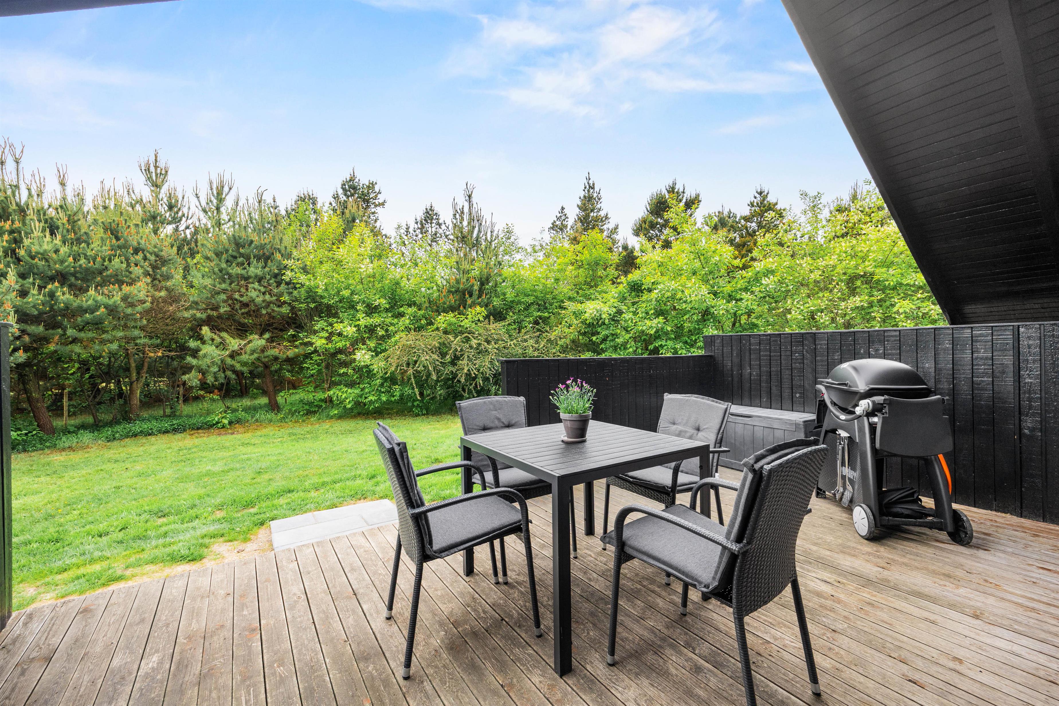 Your holiday home at Søndervang 107 sits on a beautiful natural plot surrounded by trees and shrubs. This natural boundary ensures plenty of privacy, allowing you to fully enjoy the peaceful atmosphere. In fine weather, the terrace is the perfect spot to enjoy the fresh air. It's partially screened, giving you nature's tranquillity all to yourself.