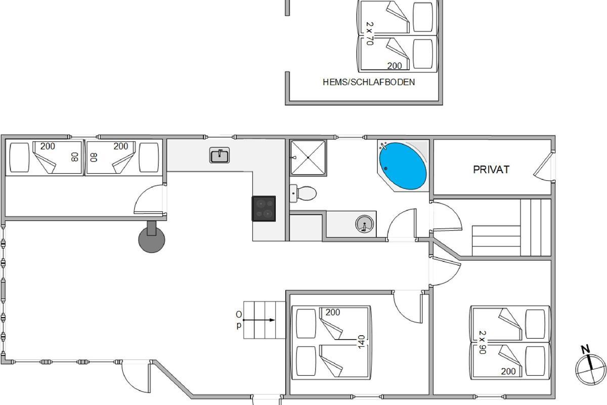 The holiday home features 3 bedrooms, furnished with 2 double beds and 2 single beds. 2 additional sleeping spaces are available in the loft, providing extra room for overnight guests. The bathroom, equipped with underfloor heating and a whirlpool, offers ideal conditions for unwinding from everyday stress. An additional sauna invites you to pamper body and mind and recharge your energy.