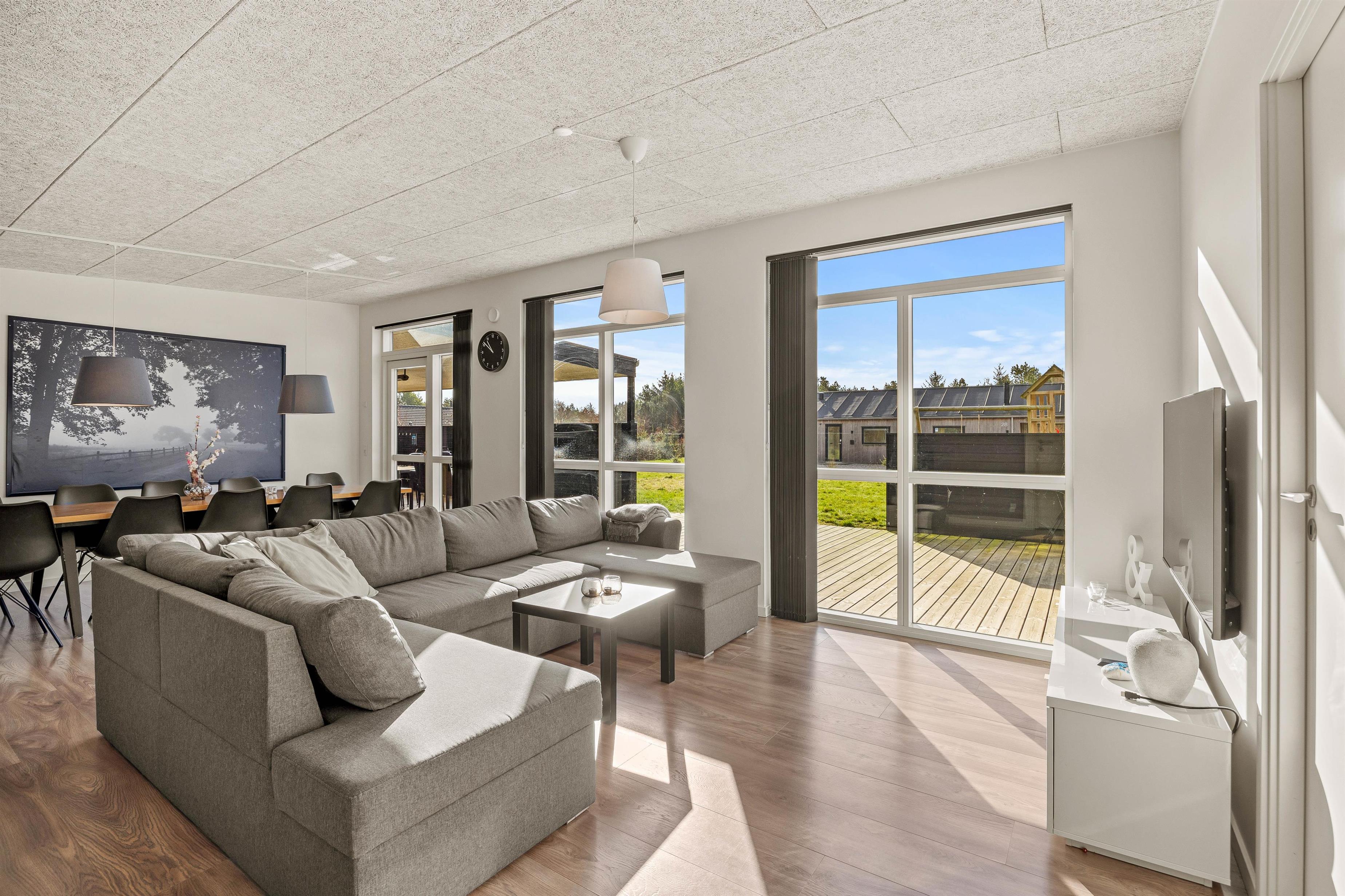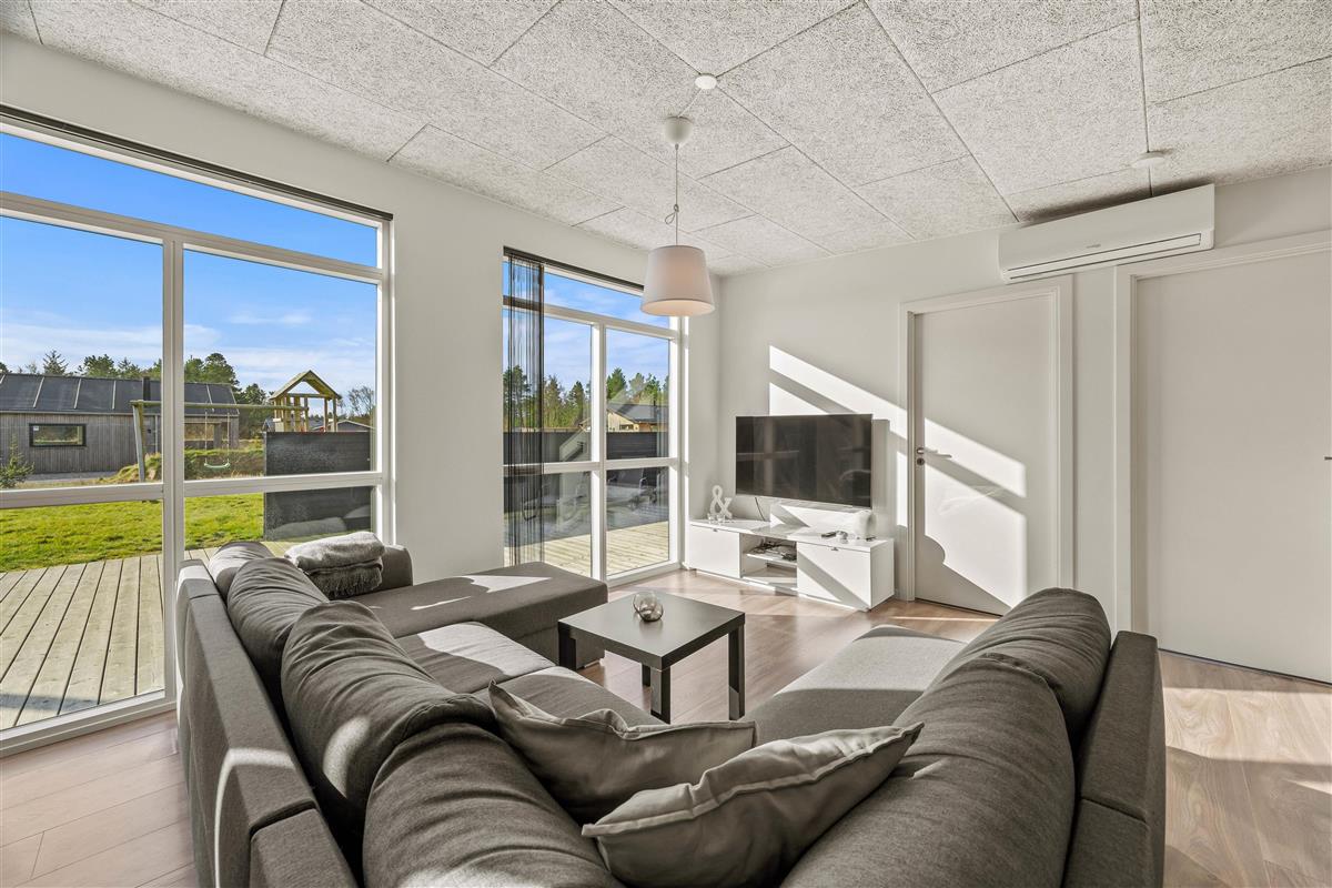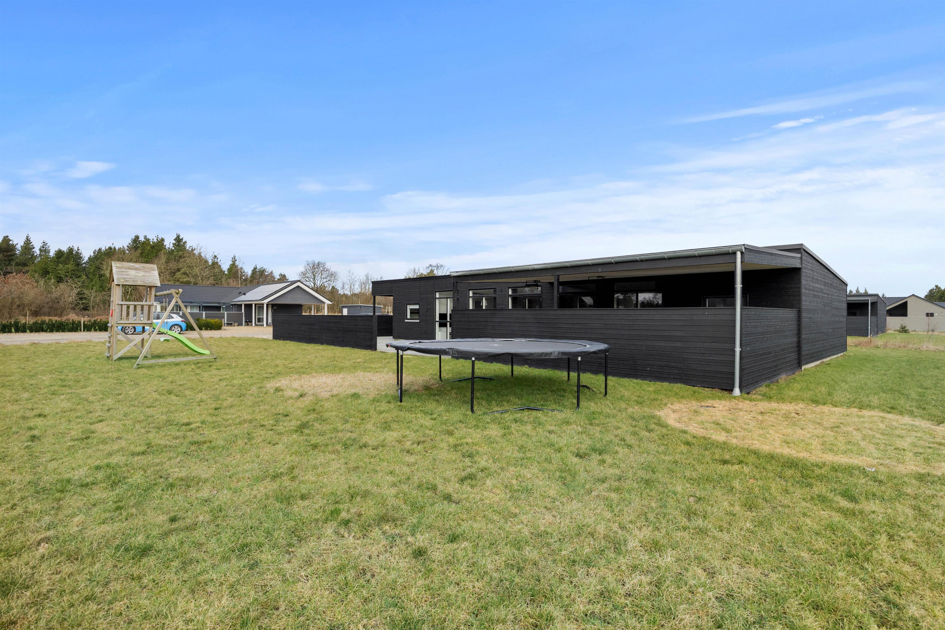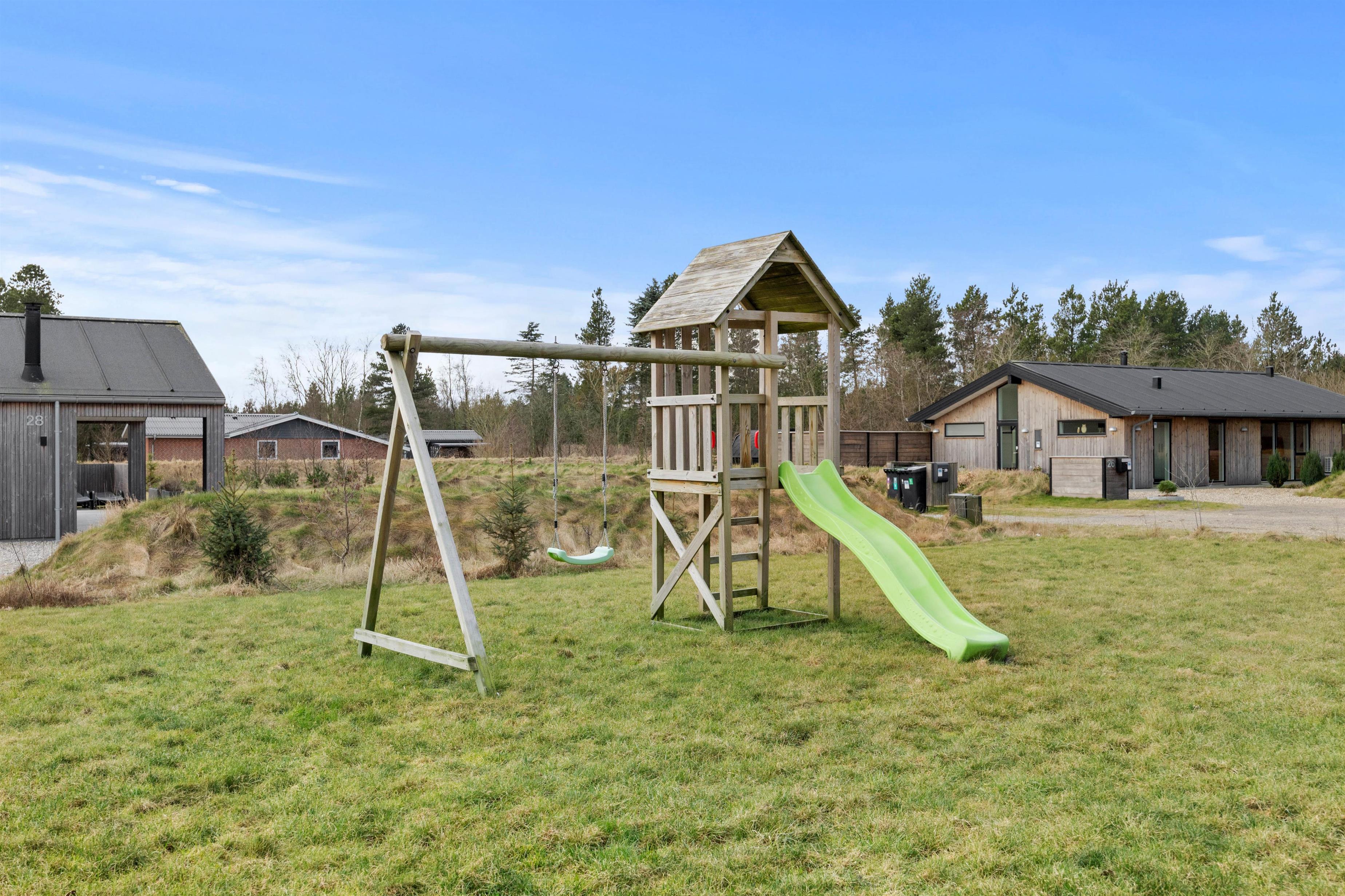 The open terrace is ideal for sociable barbecue evenings, while the sheltered terrace offers a quiet corner for reading or relaxation. Even in poor weather, you can enjoy nature from the covered terrace. Children will love the play facilities such as the climbing tower, swing and trampoline, and up to two dogs are also welcome. The large grounds at Solvang 30 offer space for play, relaxation or simply unwinding.
