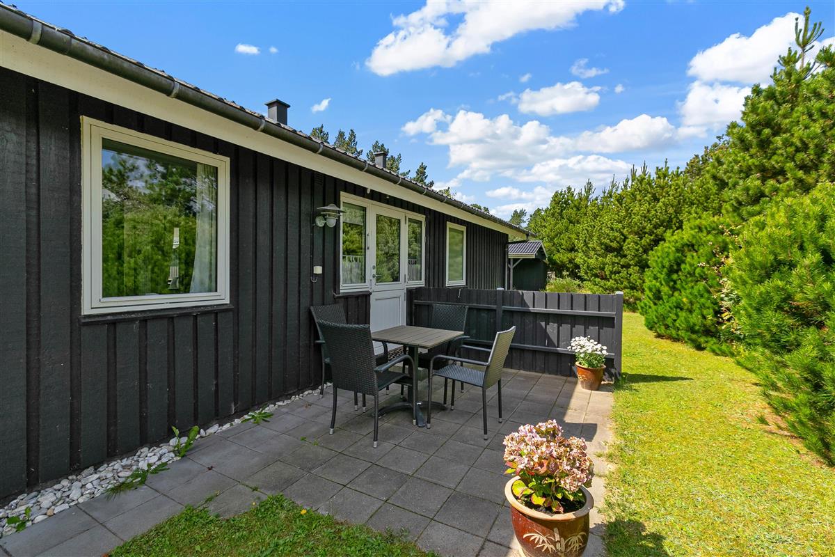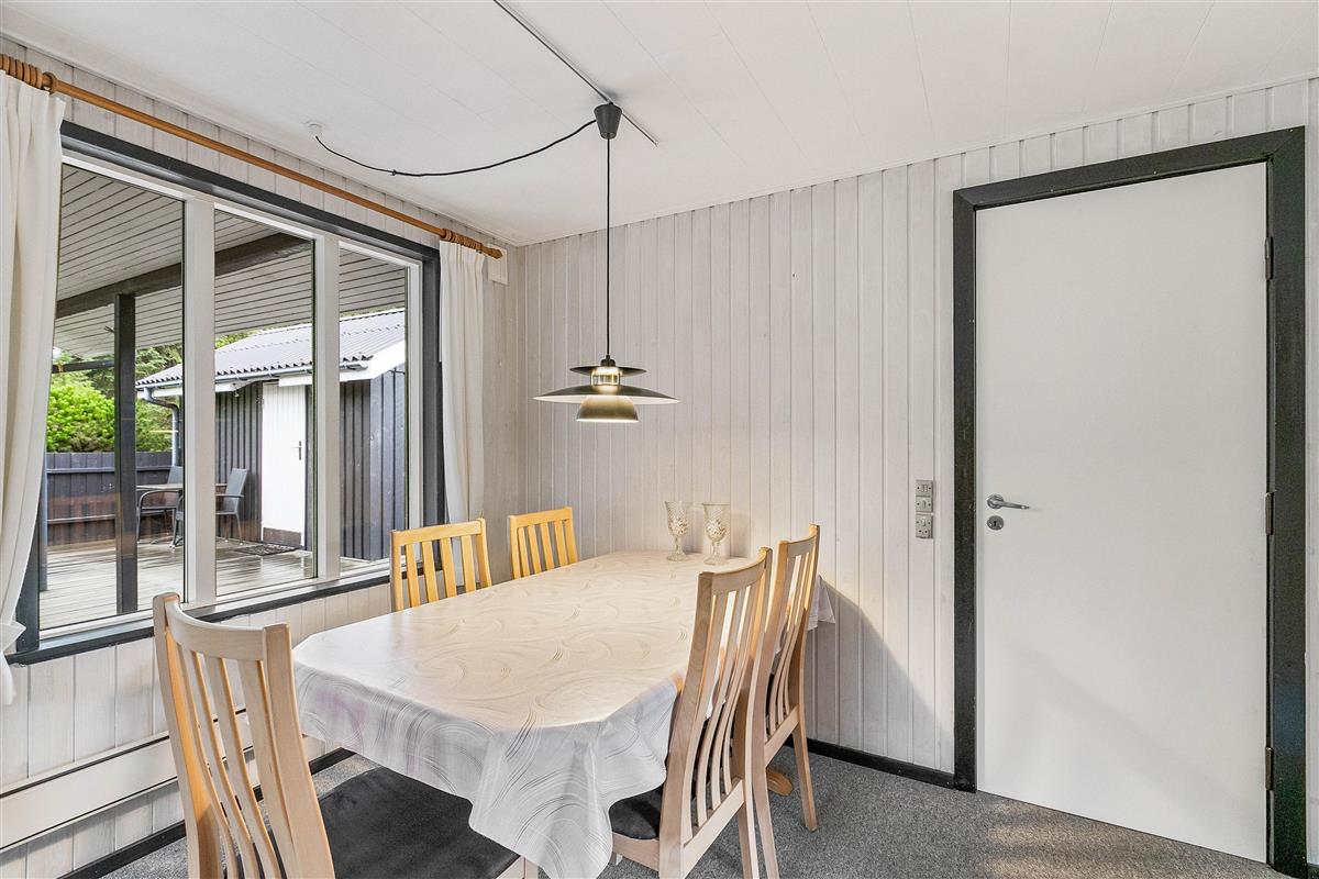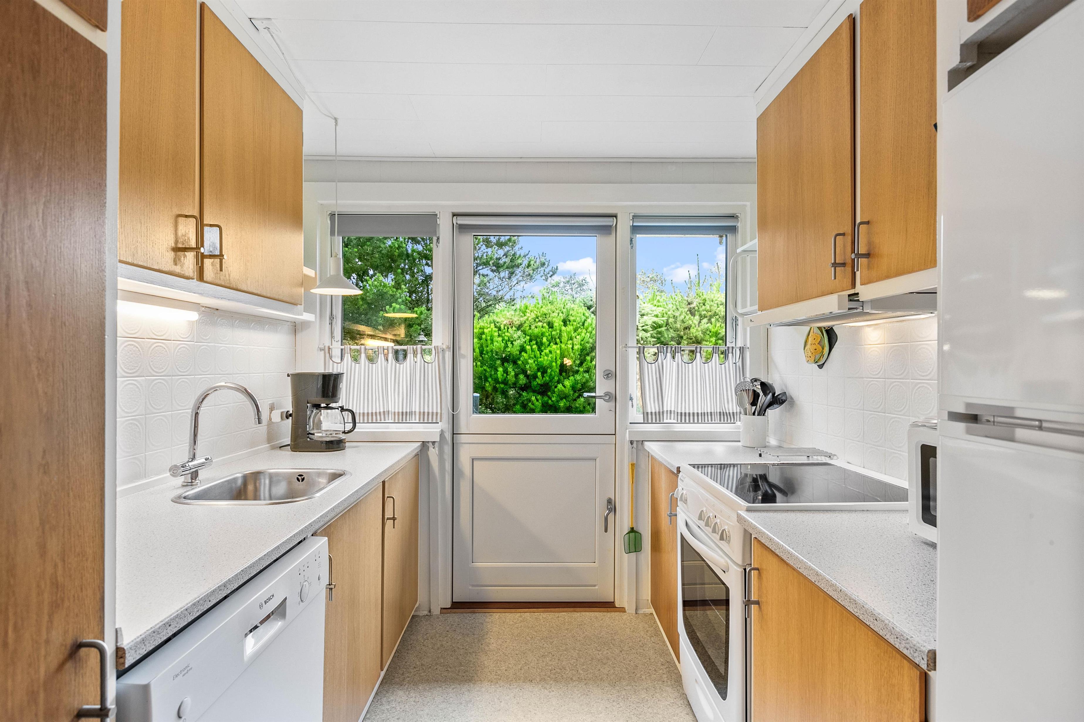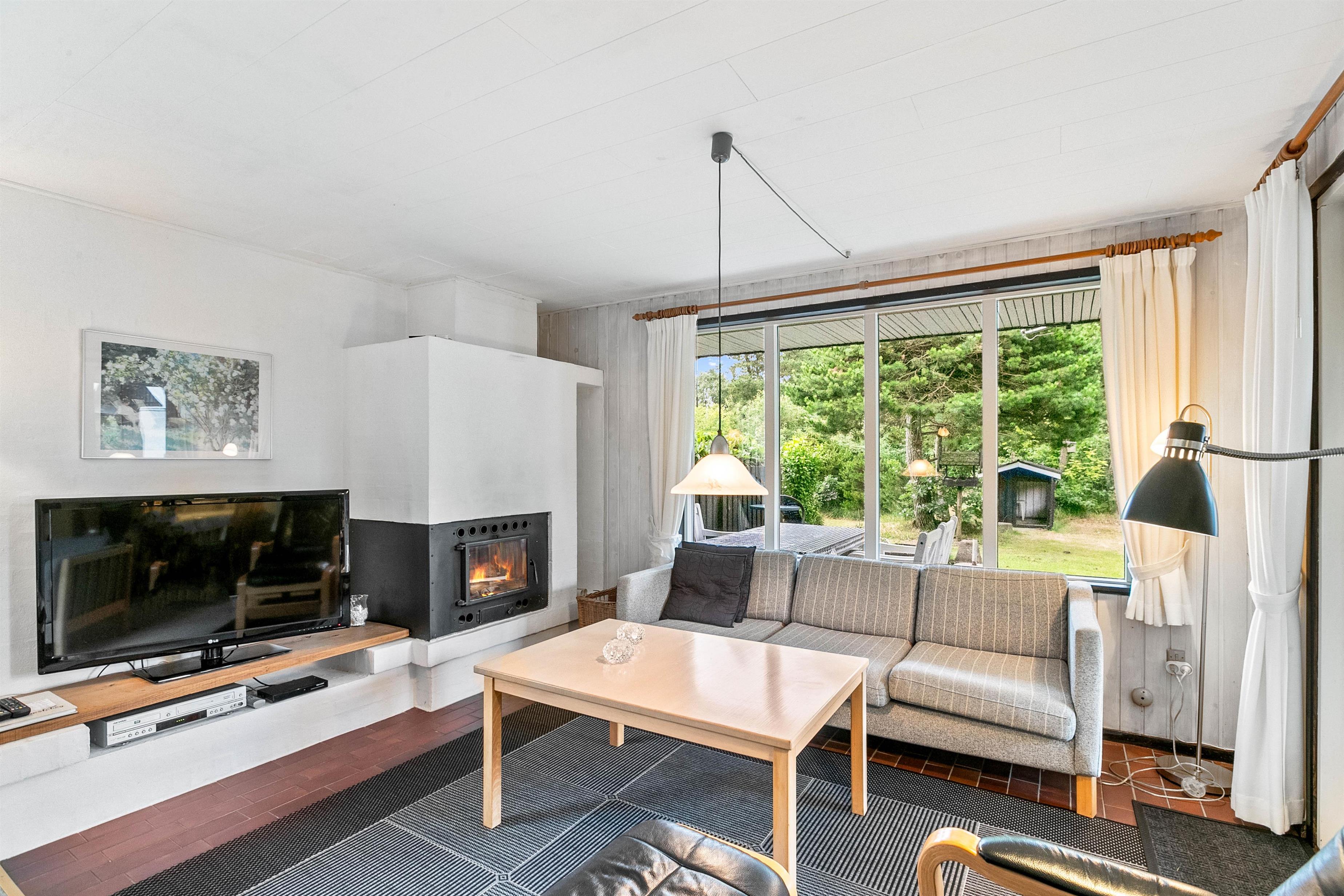 The living room of this Houstrup holiday home is a haven of comfort, perfect for relaxation. A wood-burning stove provides welcoming warmth and creates an inviting atmosphere on cooler days. Large windows allow plenty of natural light and offer pleasant views of the surrounding nature. The kitchen comes equipped with a dishwasher, making cleanup after shared meals considerably easier. The open-plan kitchen design allows you to cook while staying connected with loved ones in the living room or adjacent dining area.
