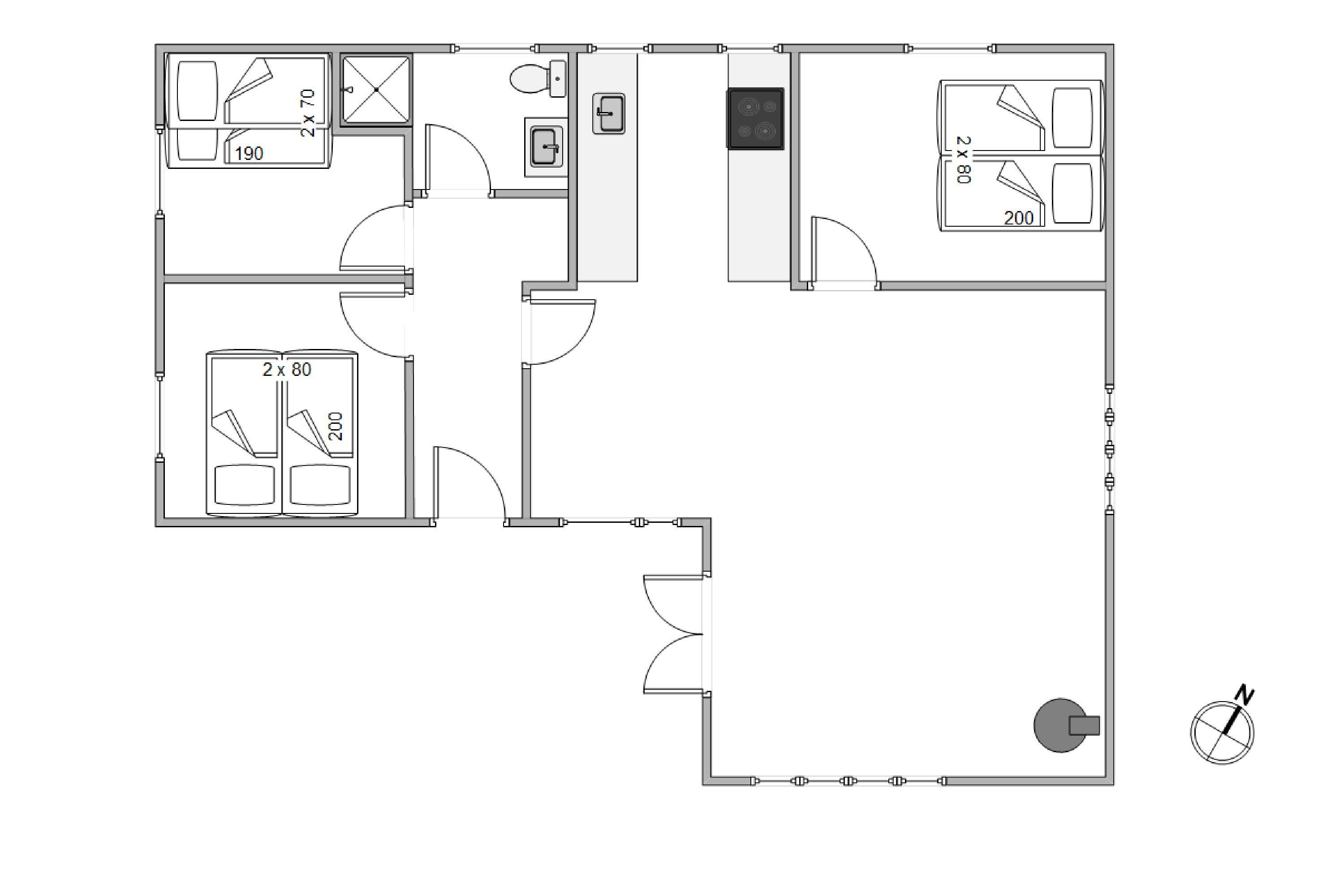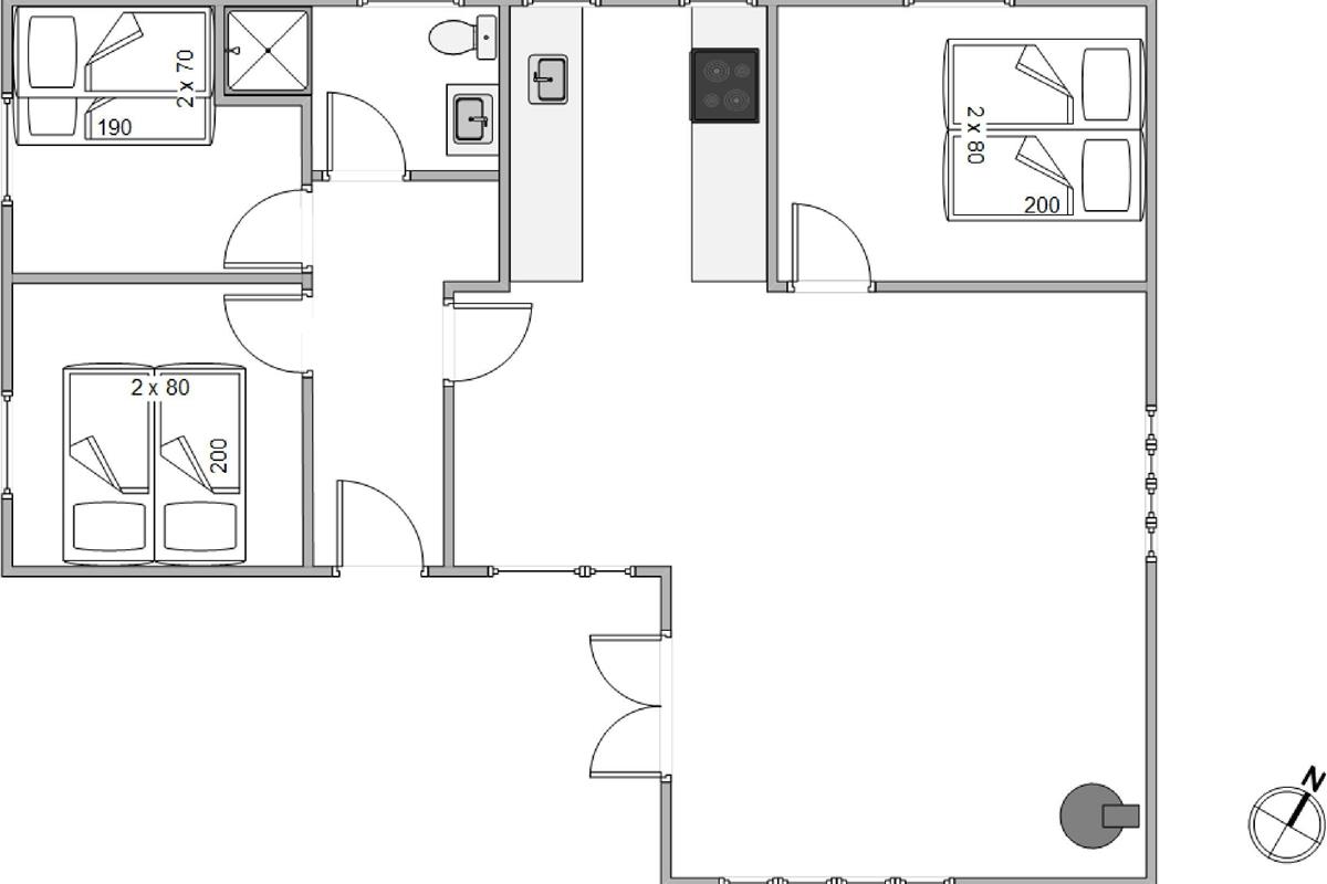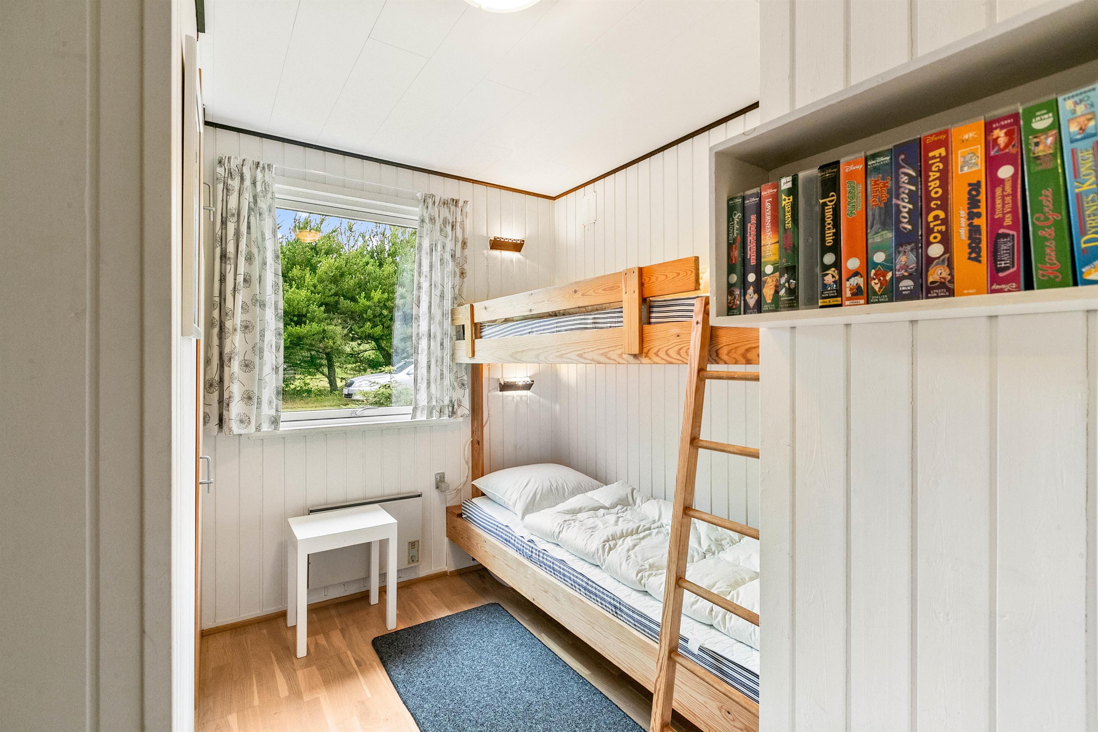 The holiday home at Engvejen 31 offers 3 comfortable bedrooms. There are 2 bedrooms with double beds and 1 additional bedroom with bunk beds, ideal for children or fellow travellers. The bathroom features a modern design with underfloor heating providing pleasant warmth – particularly welcome on cooler days or after visiting the beach.
