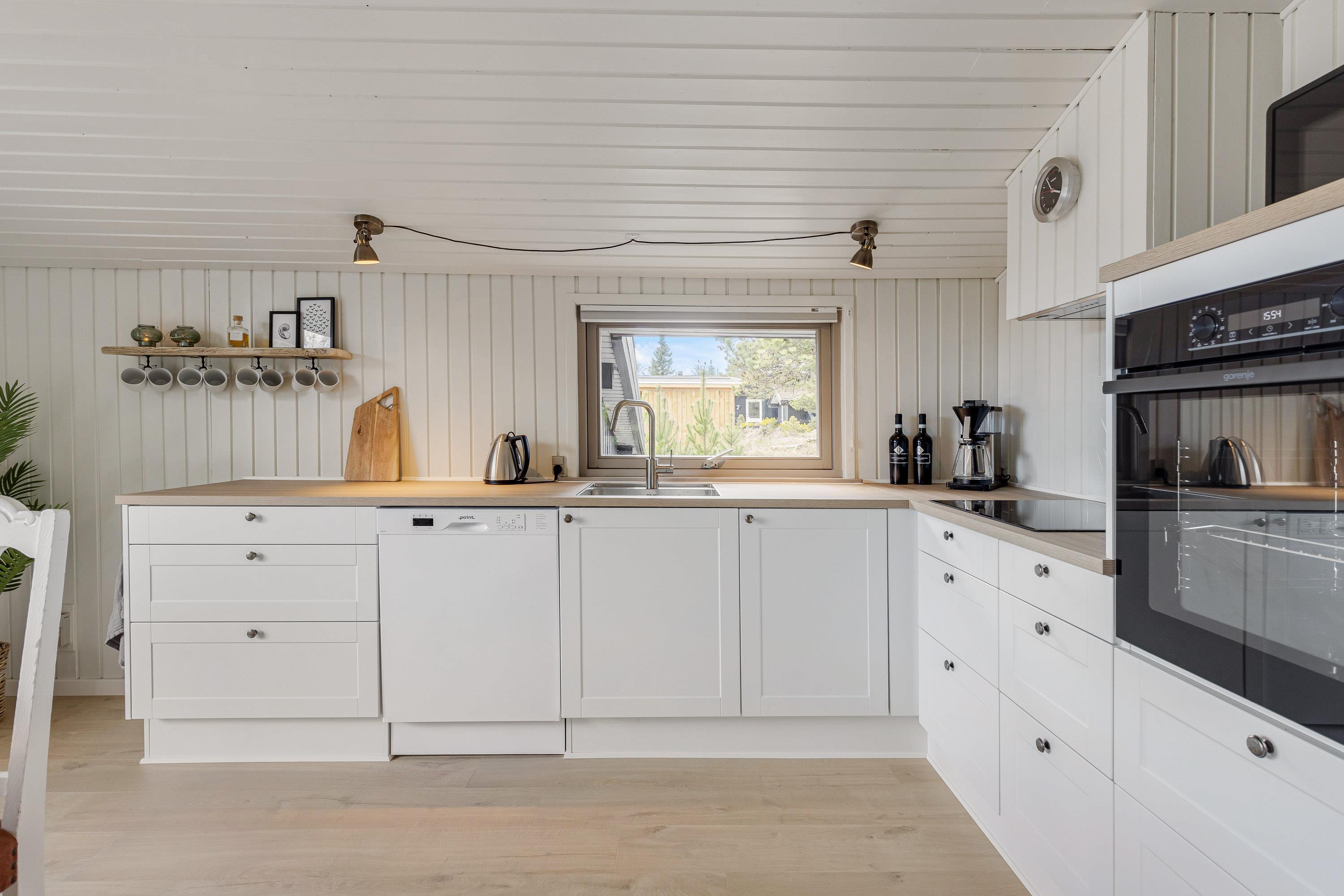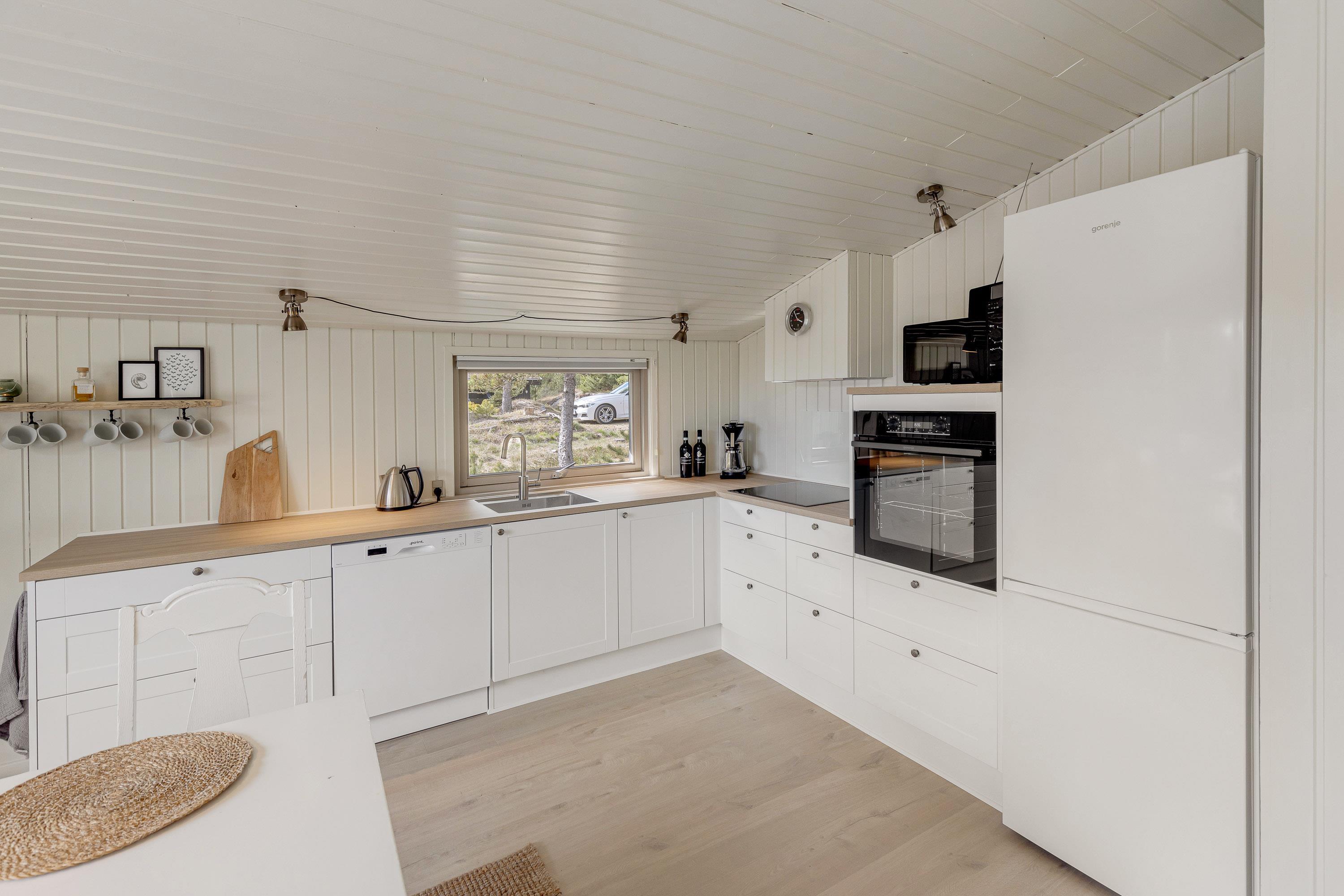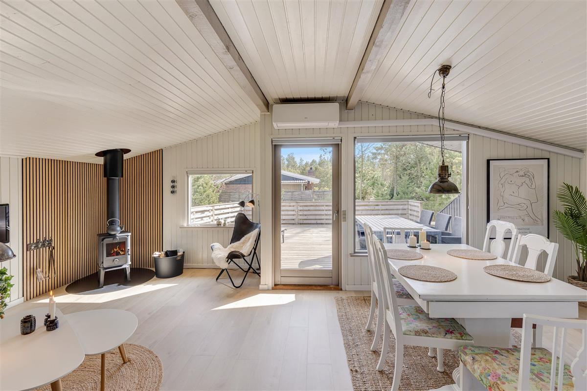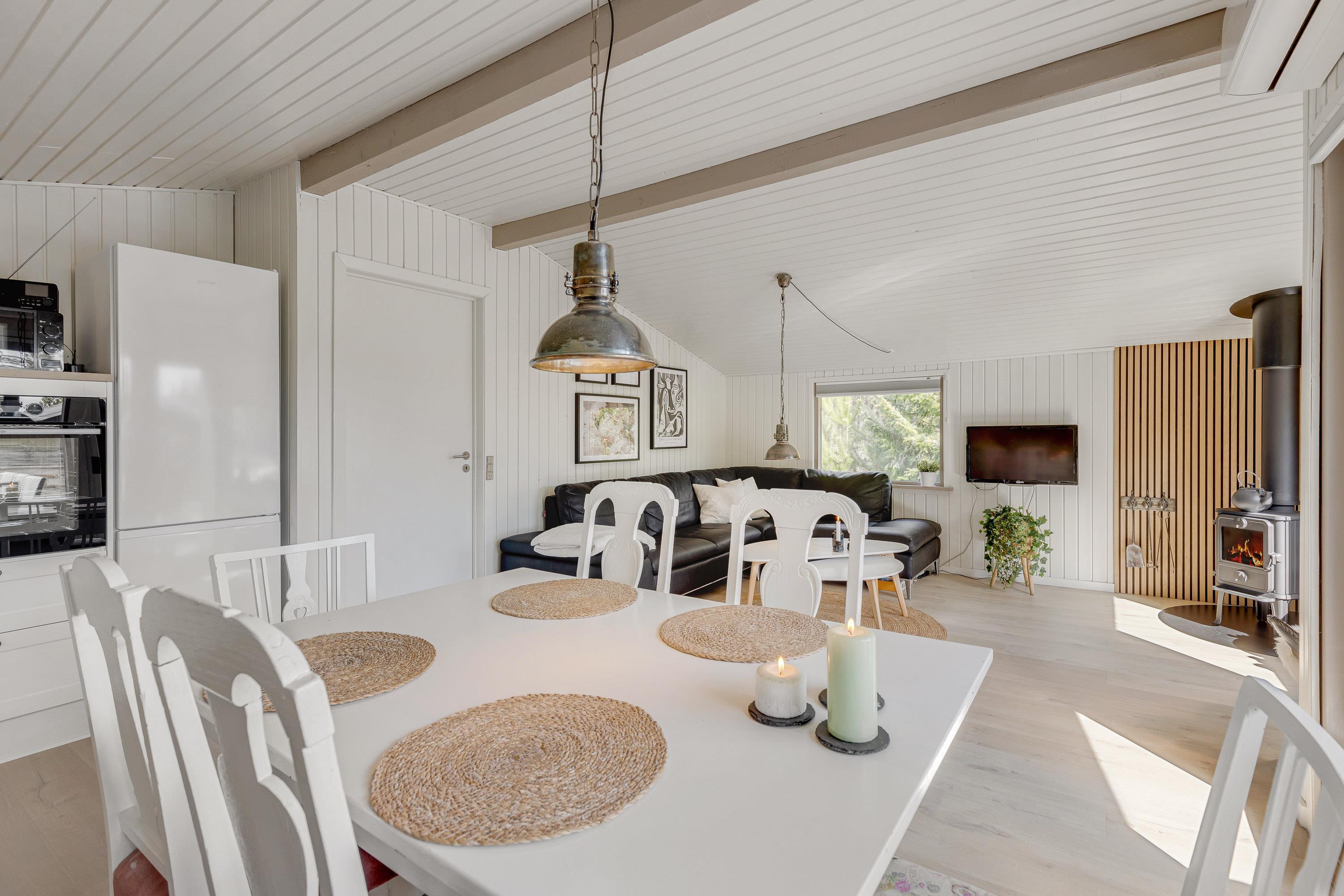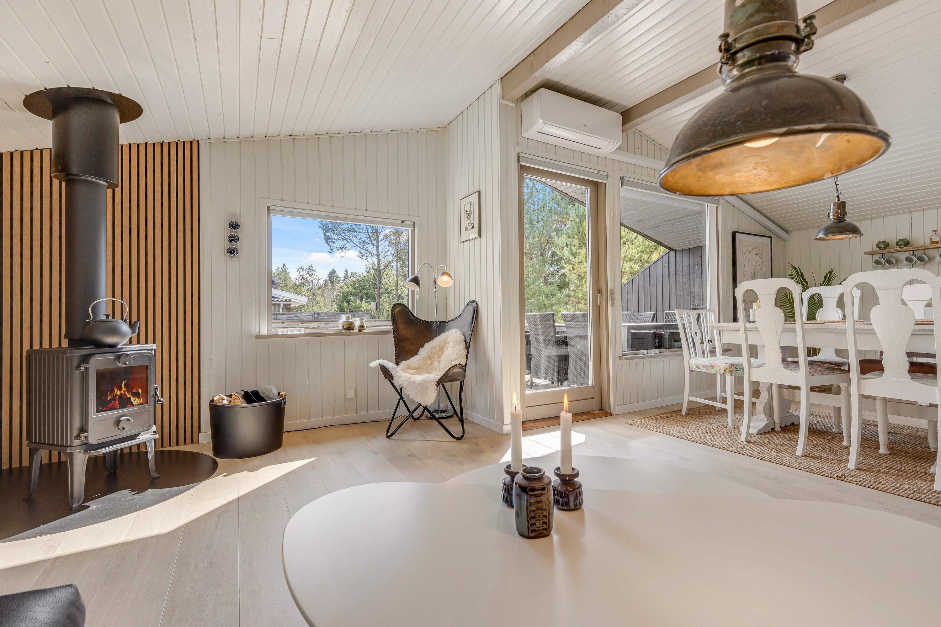 Upon entering the holiday home, you'll be welcomed by a warm, inviting atmosphere. The living area features a cosy wood-burning stove, providing comfortable warmth and a particularly relaxing ambiance on cooler days.