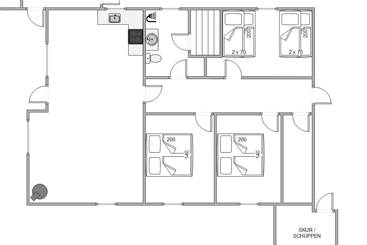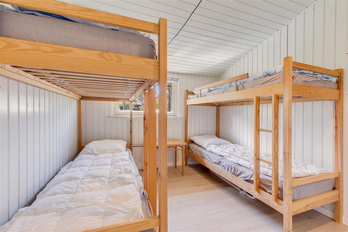 The holiday home's three bedrooms offer ideal retreats for restful sleep. Two bedrooms feature comfortable double beds, while the third bedroom is equipped with bunk beds, perfect for children or friends. This layout makes the holiday home ideal for families or a group of up to 6 people.