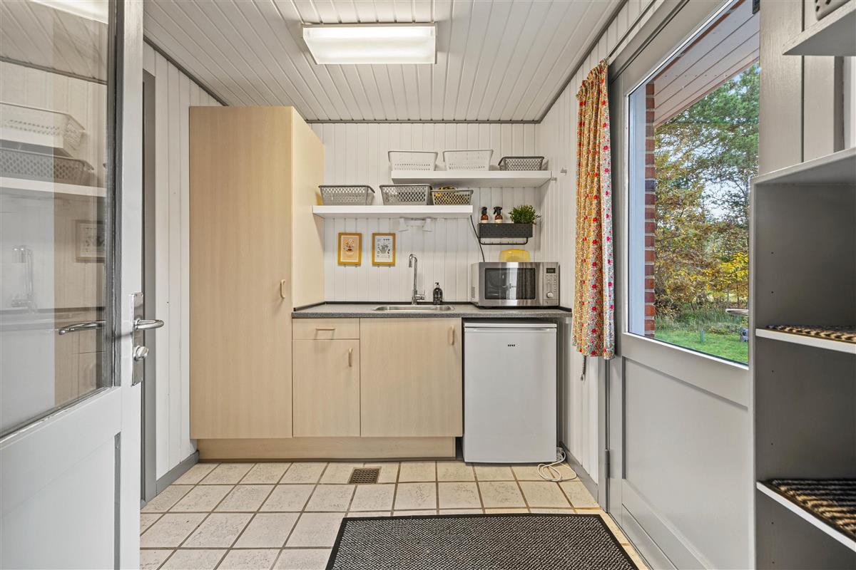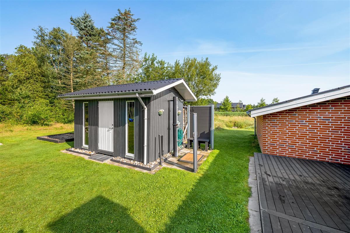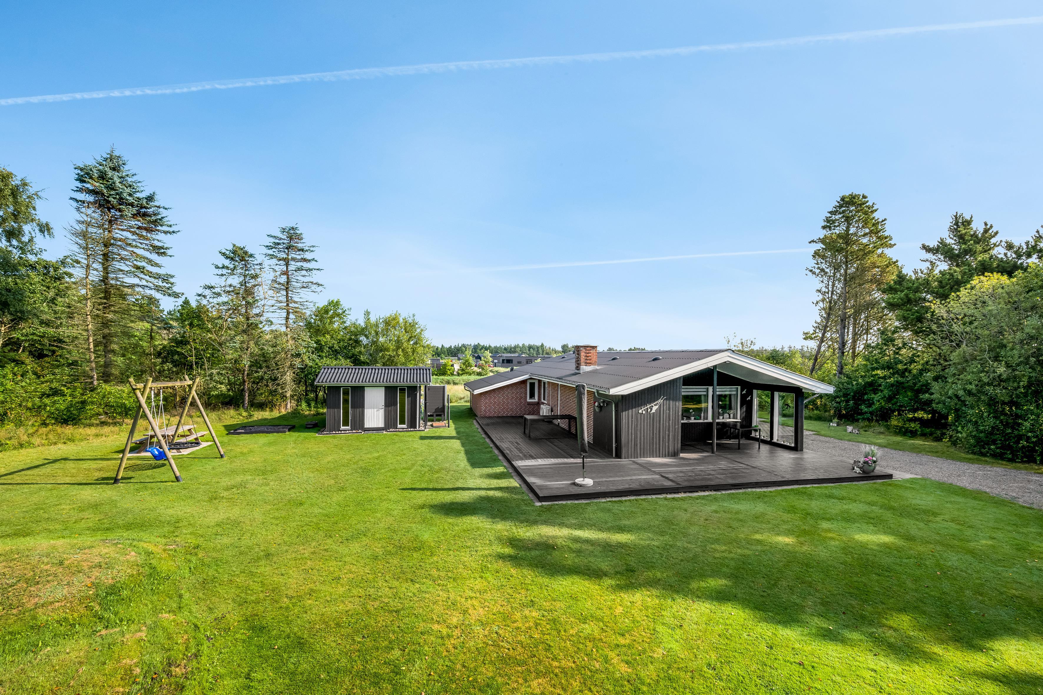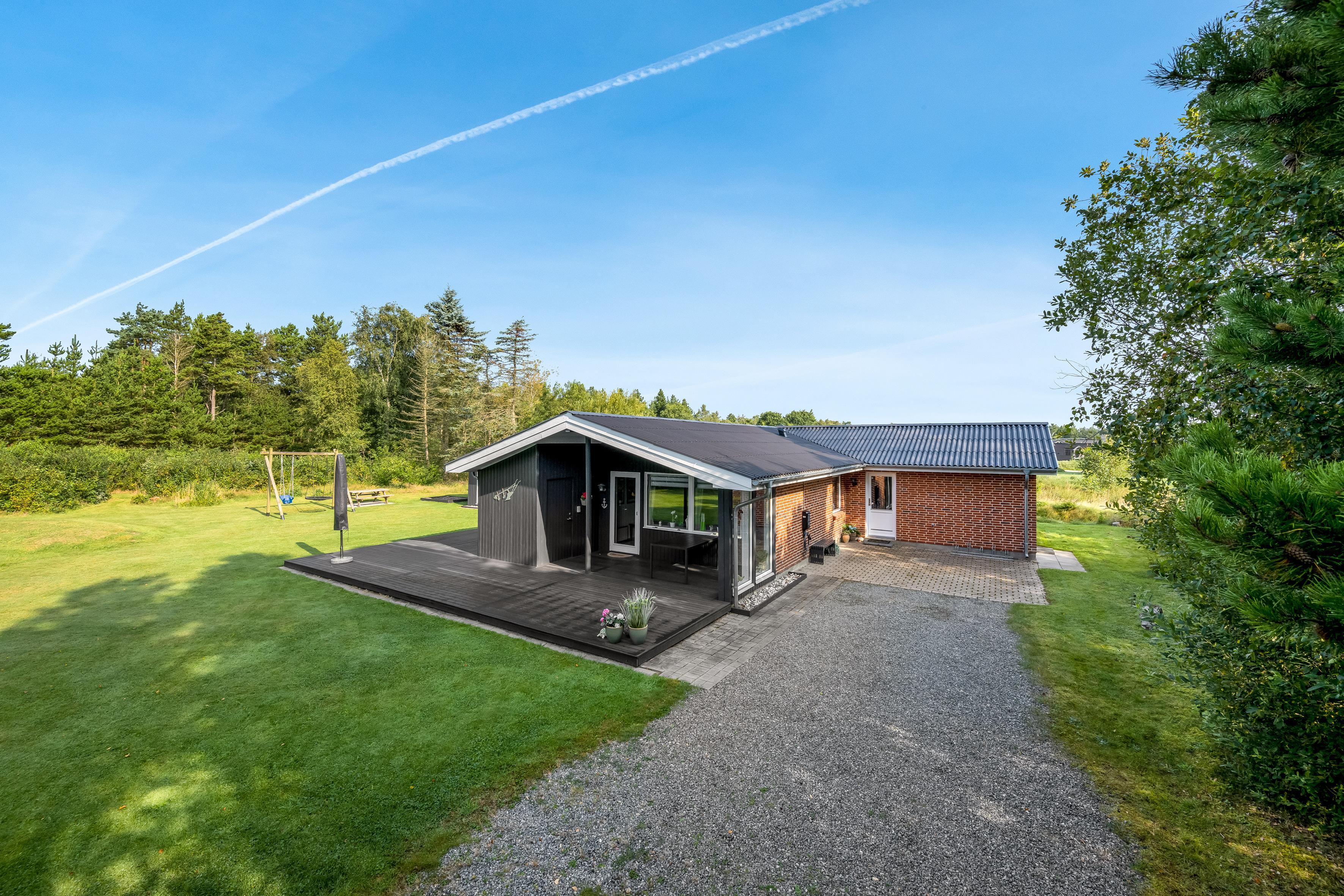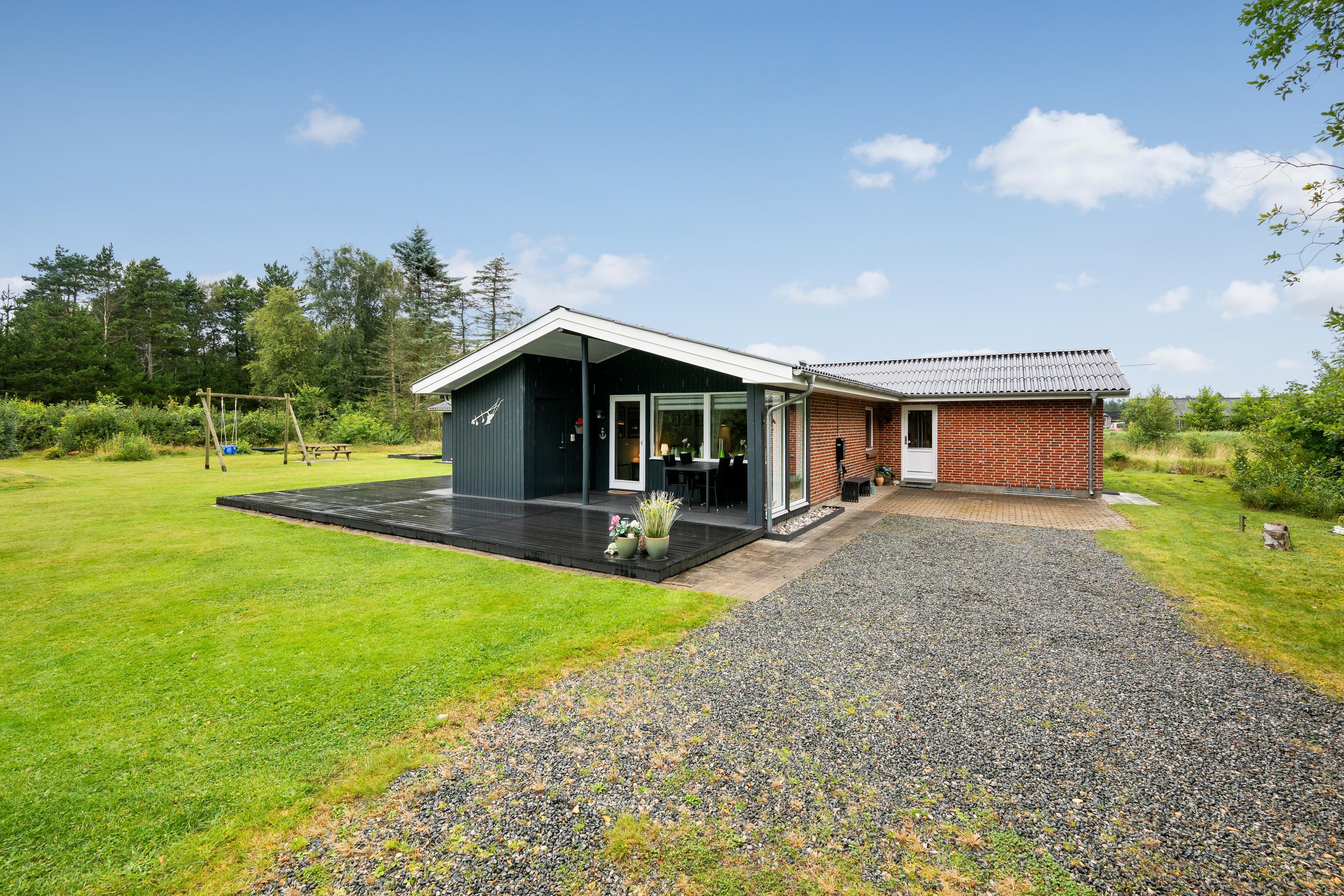 Das Ferienhaus erstreckt sich über ein 2098 qm großes Naturgrundstück. Hier könnt ihr die frische Luft und die Ruhe der dänischen Landschaft genießen. Auf den komfortablen Gartenmöbeln und Sonnenliegen auf der teils abgeschirmten und teils überdachten Terrasse könnt ihr euch entspannen, während ihr den Gasgrill für ein köstliches Barbecue nutzt.