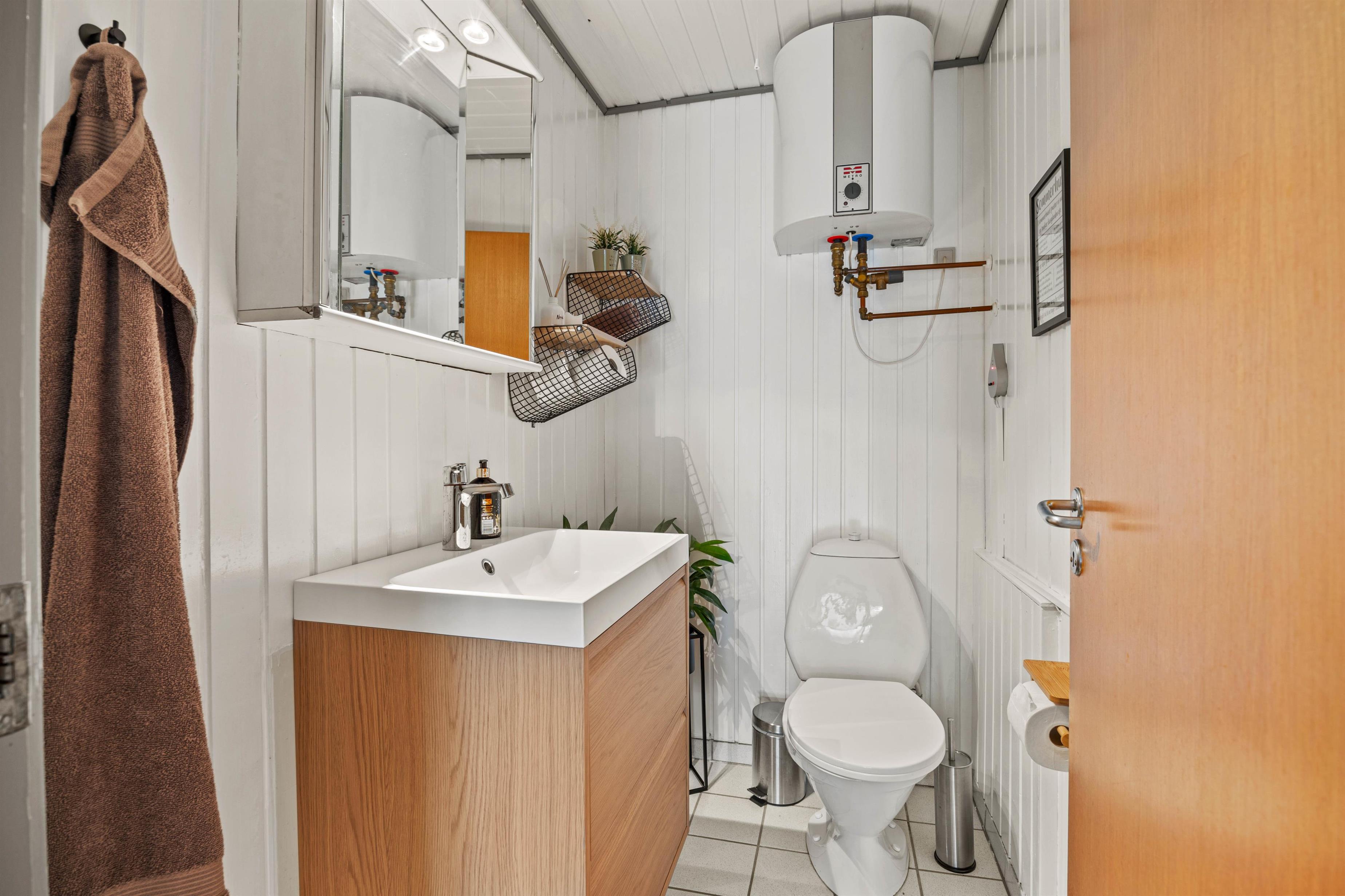 Das im Jahr 2025 renovierte Tageslichtbad bietet eine Fußbodenheizung und ist mit einer Waschmaschine und einem Trockner ausgestattet. Ein zusätzliches Gäste-WC sorgt für einen entspannteren Tagesablauf. Die Sauna des Ferienhauses lädt zu ausgiebigen Saunagängen ein. Von April bis November steht euch außerdem eine Außendusche zur Verfügung, unter der ihr euch nach einem Saunagang erfrischen könnt.