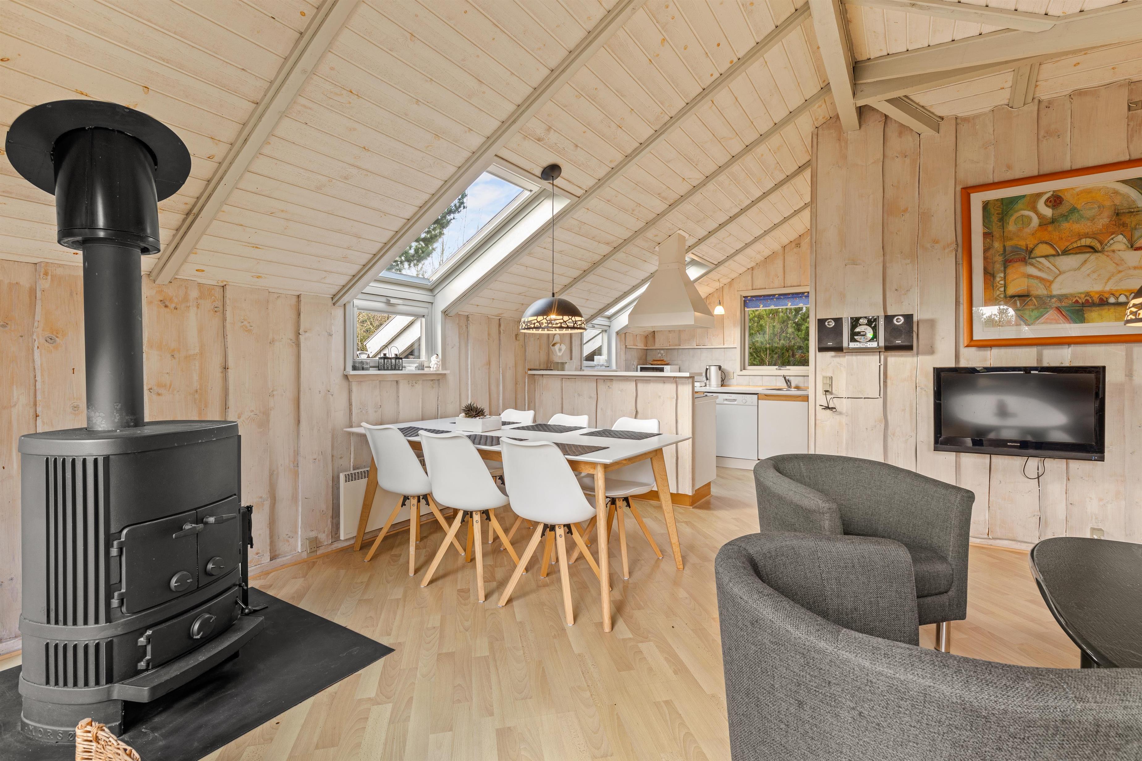 Located at Skovvang 96, you'll find this beautiful traditional wooden holiday home. With four bedrooms in total - 2 double rooms and 2 single rooms - the house comfortably accommodates up to 6 guests and 2 dogs. The room layout makes this house perfect for families, friends, or couples seeking a peaceful getaway. You'll just need to decide whether the spacious terrace or the open-plan living area becomes your favourite spot.