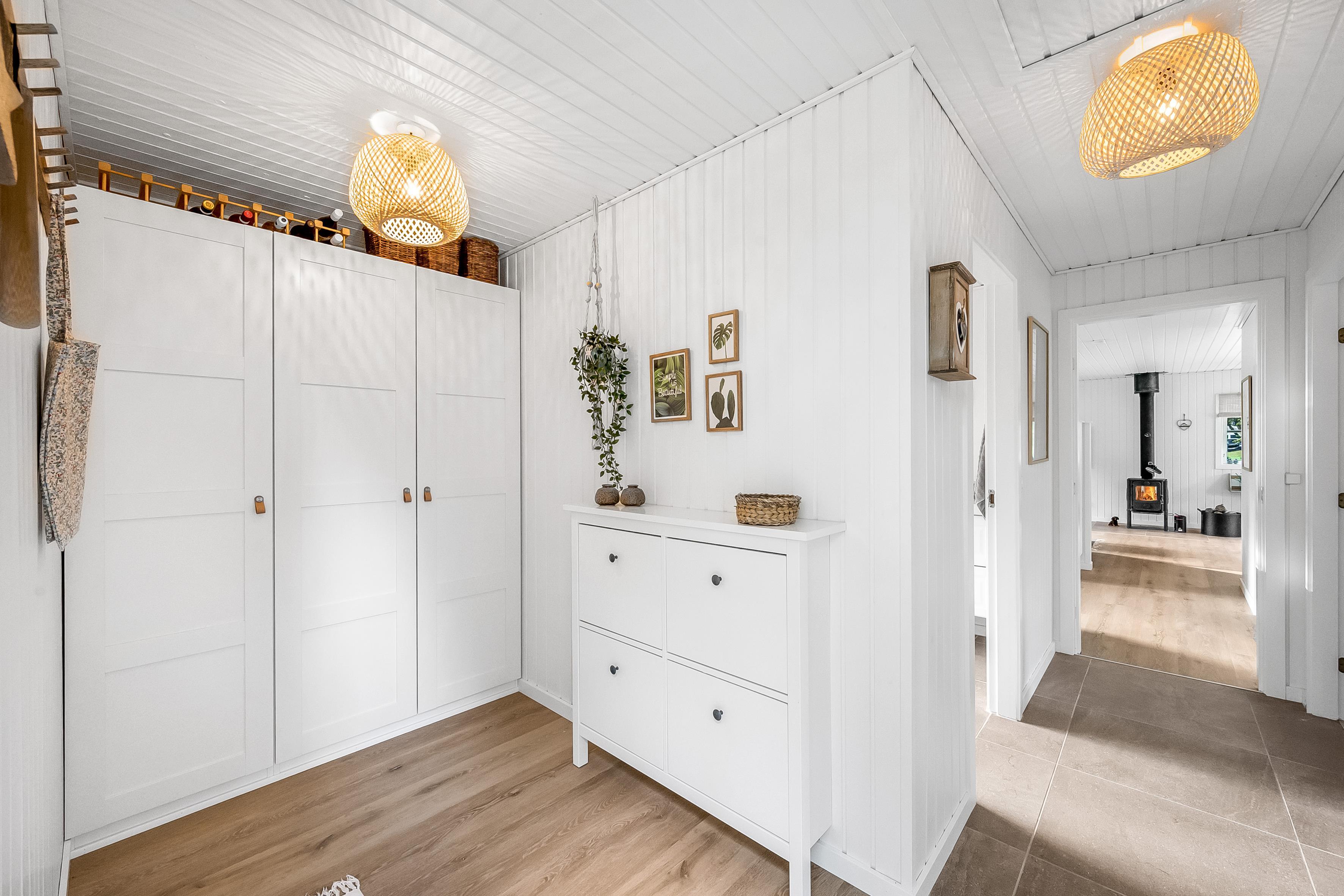 Relax outdoors on the partially covered terrace and enjoy the fresh air and picturesque surroundings of Houstrup. Whether you're finally getting around to reading that book, sharing a freshly brewed coffee, or simply enjoying the peace and nature around you, the covered terrace provides the ideal spot.