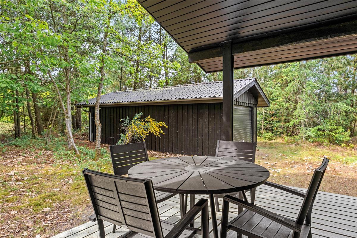 The open terrace at Jeppesvej 34 is an inviting space to experience morning sunshine or mild summer evenings outdoors. Here you can enjoy your meals in the open air or simply end the day with a good book. For those moments when you need some weather protection, the covered terrace offers a charming alternative, allowing you to stay close to nature even during light rain. A barbecue invites you to create delicious meals and enjoy sociable evening gatherings with family or friends.