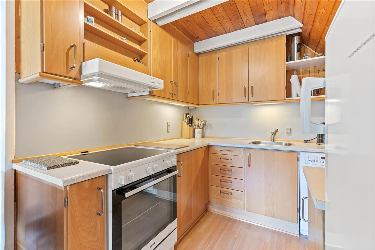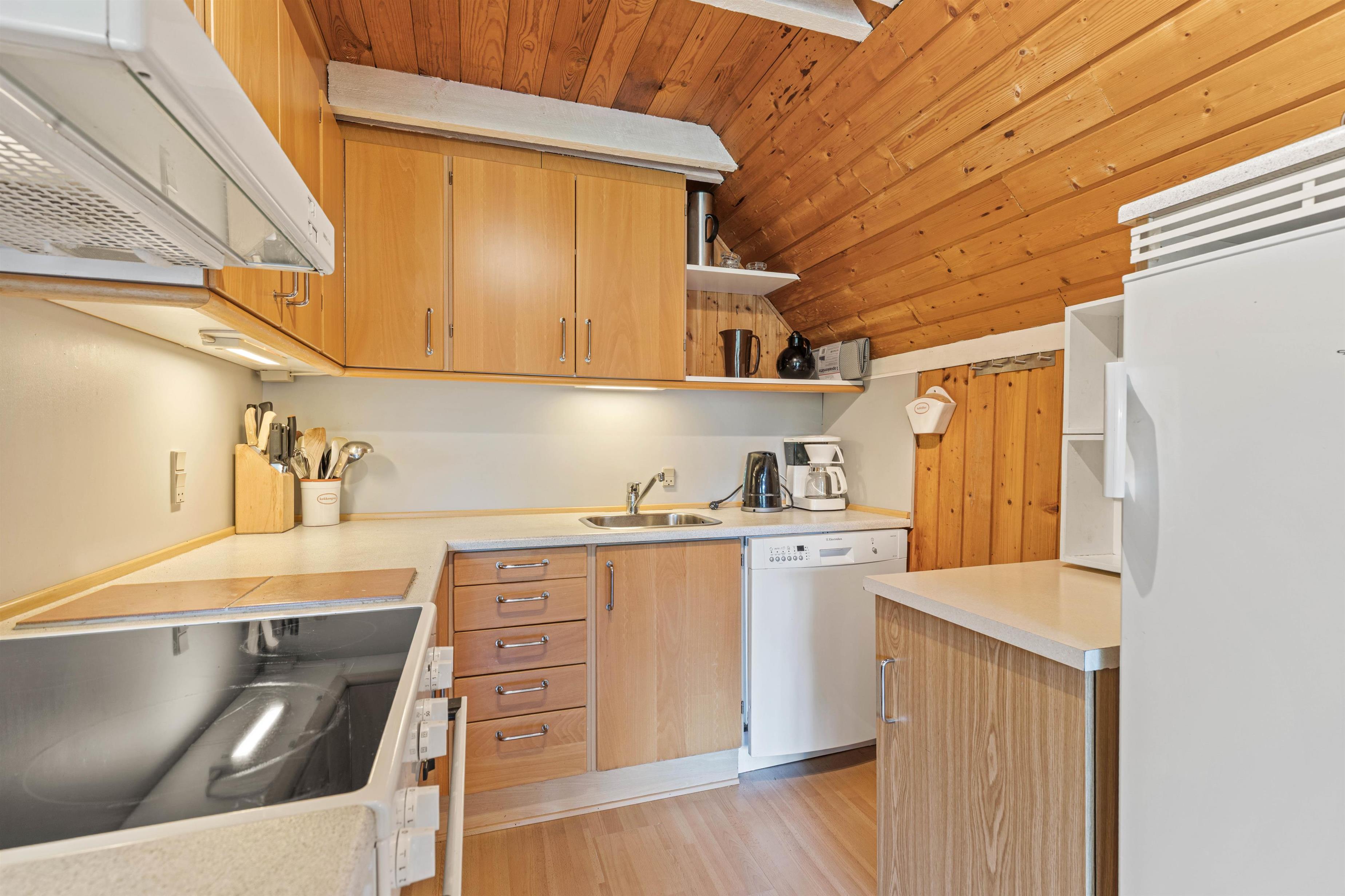 Though compact, the kitchen is equipped with all essentials. These include a coffee maker, kettle, fridge-freezer and dishwasher.