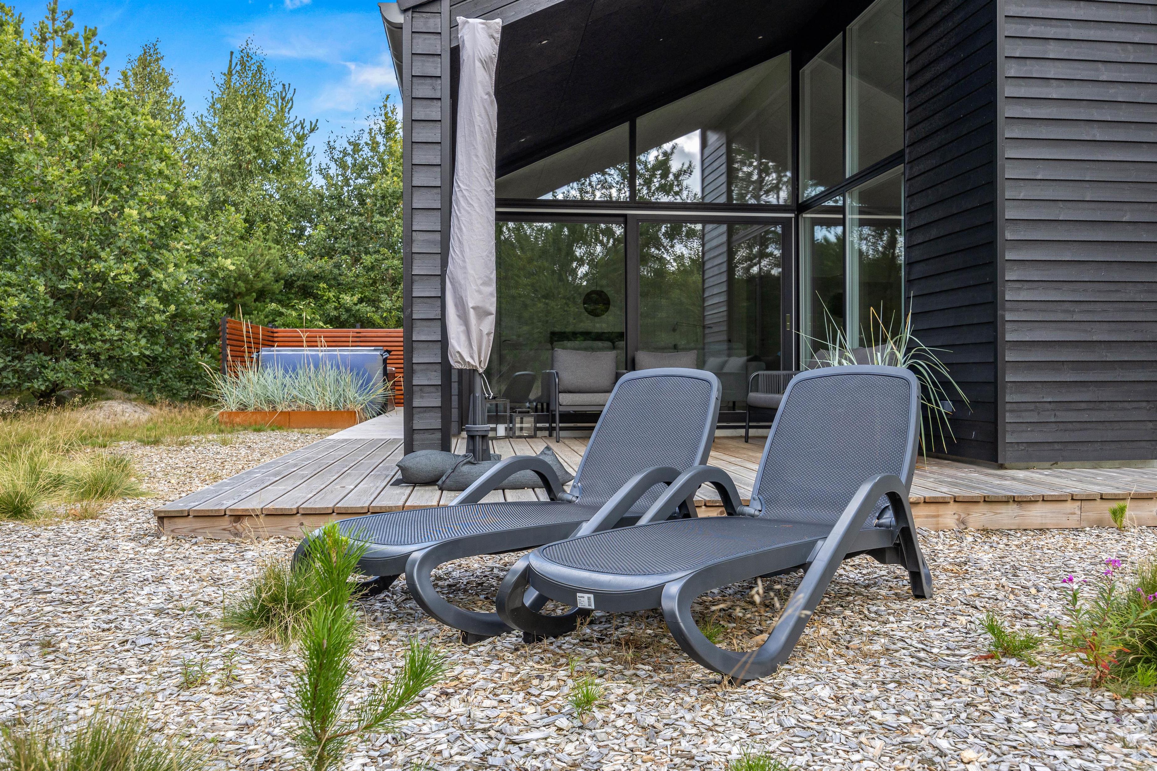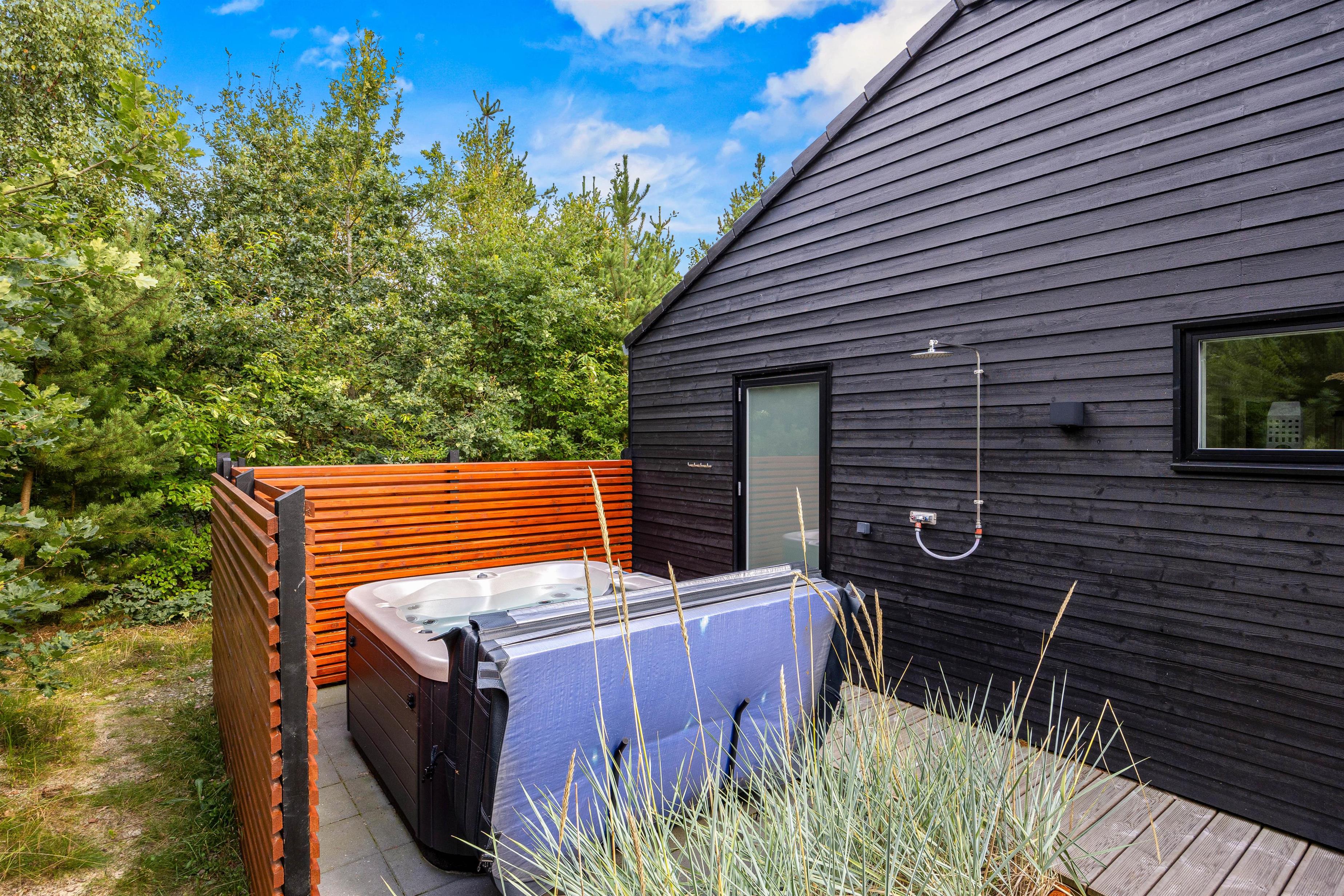 The sheltered and partially covered terrace, equipped with comfortable garden furniture and sun loungers, is ideal for cosy barbecue evenings. What could be better than preparing and enjoying a delicious meal outdoors on the grill? Afterwards, you can spend the evening in the outdoor hot tub under the starry sky and refresh yourself under the outdoor shower. Please note that the outdoor shower is available from April to November.