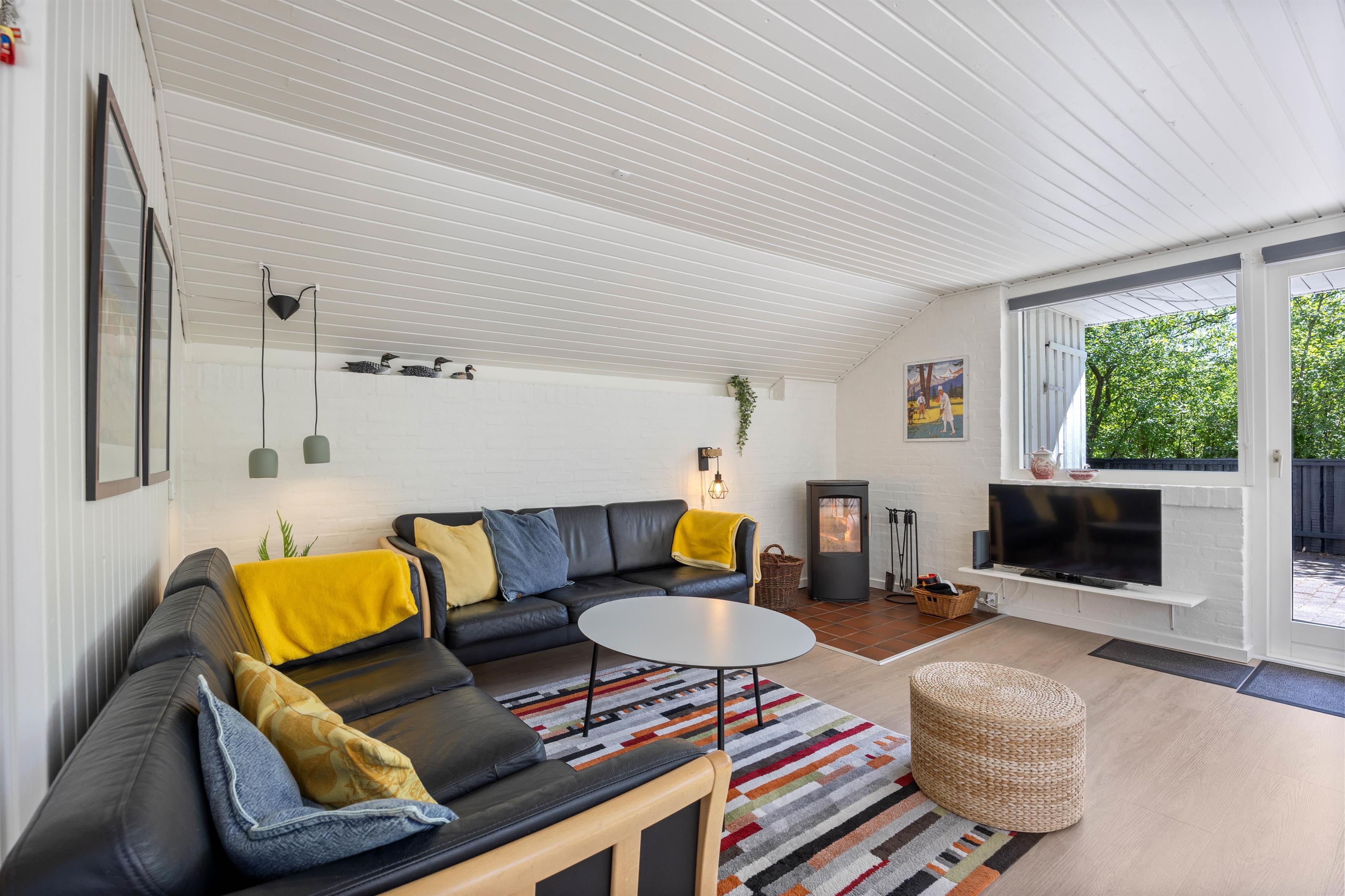 Discover this sunny, bright holiday home in Houstrup accommodating up to 5 people and one dog. Welcome to Hedevang 76, where this inviting holiday home awaits you. Perfect for families or groups of friends, it combines comfort with excellent amenities including a sauna, wood-burning stove, heat pump, washing machine, tumble dryer and dishwasher. The entire plot is secured with a 2-foot (60cm) fence - ideal for families with children and dogs. The proximity to the forest playground is an additional highlight for your family holiday.